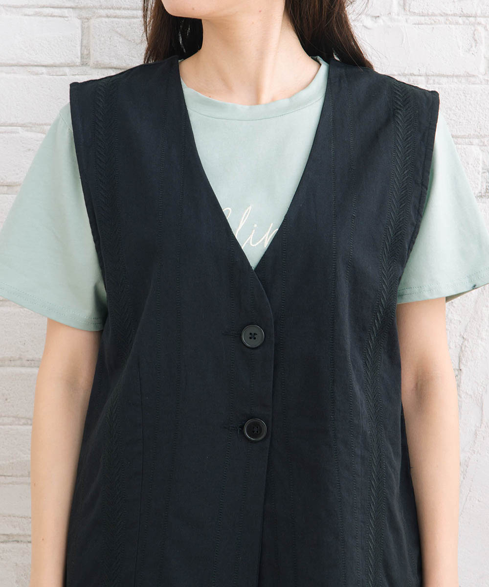 コットンリネン素材に、縦に刺繍の入った生地を使用しています。