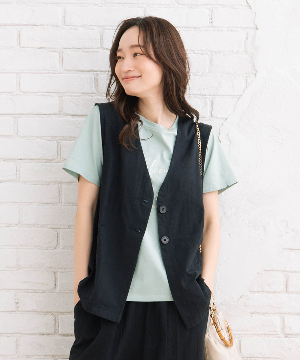Tシャツやワンピースに重ねるだけで、旬のレイヤードスタイルが完成します。