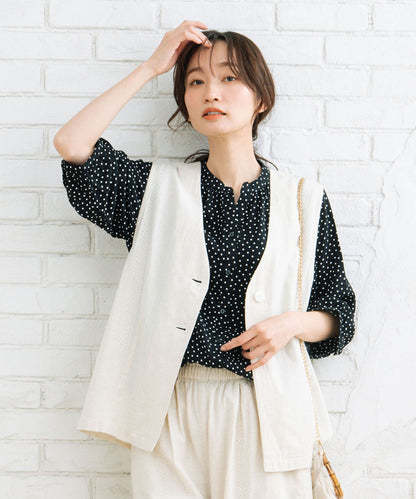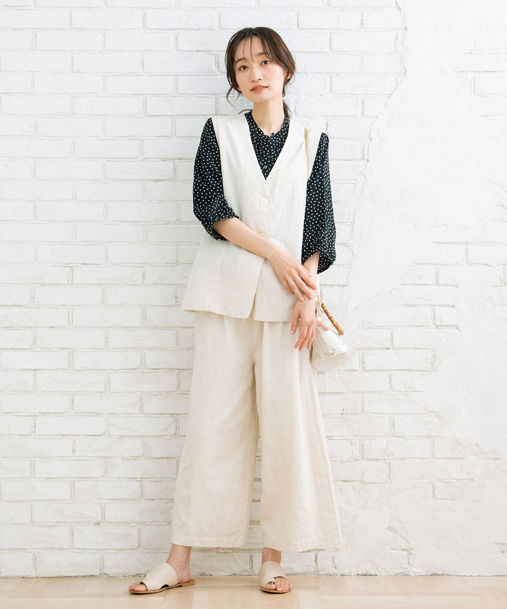 コットンリネン素材に、縦に刺繍の入った生地を使用しています。