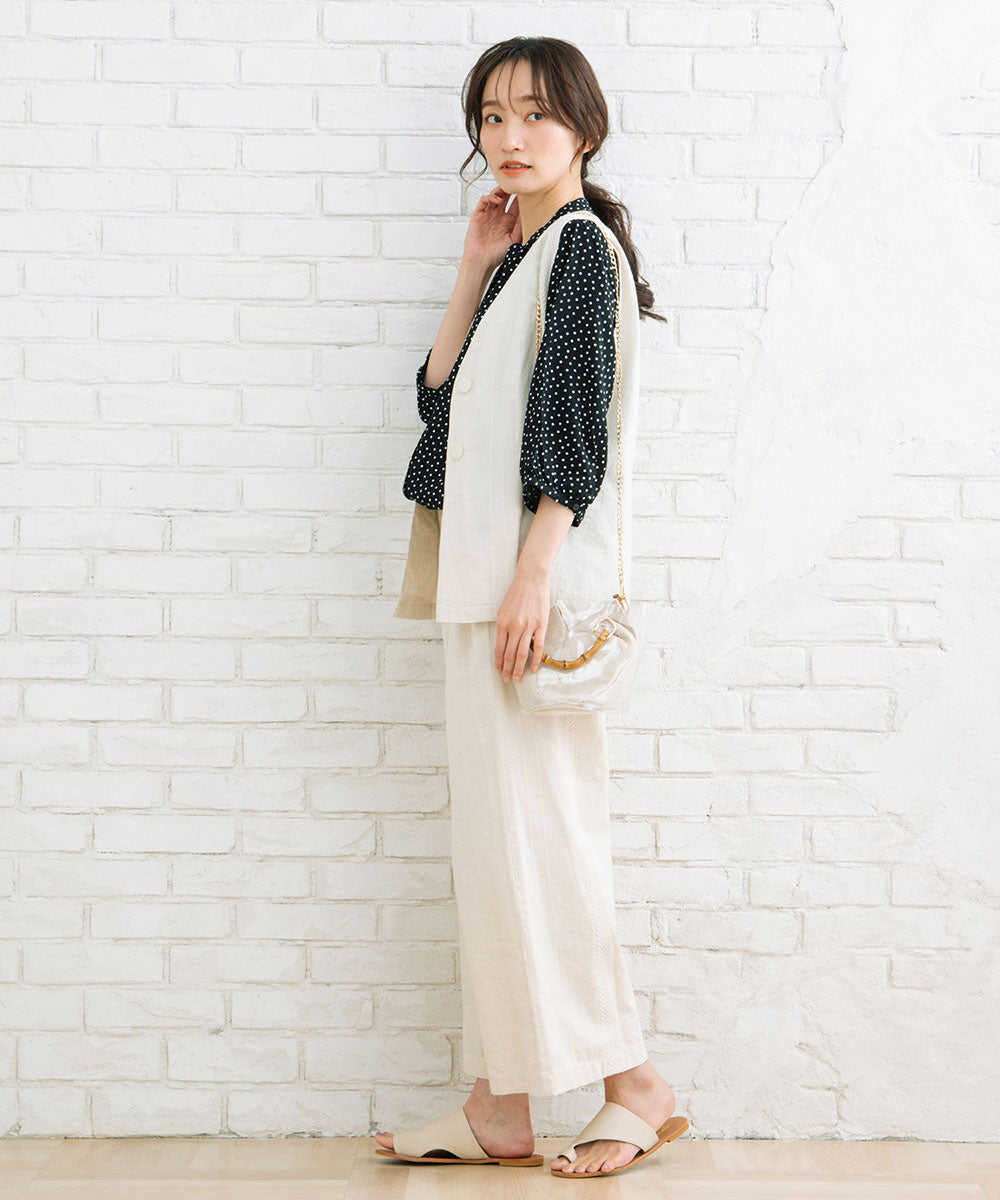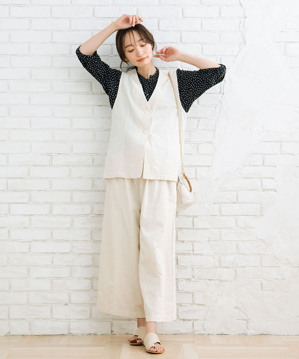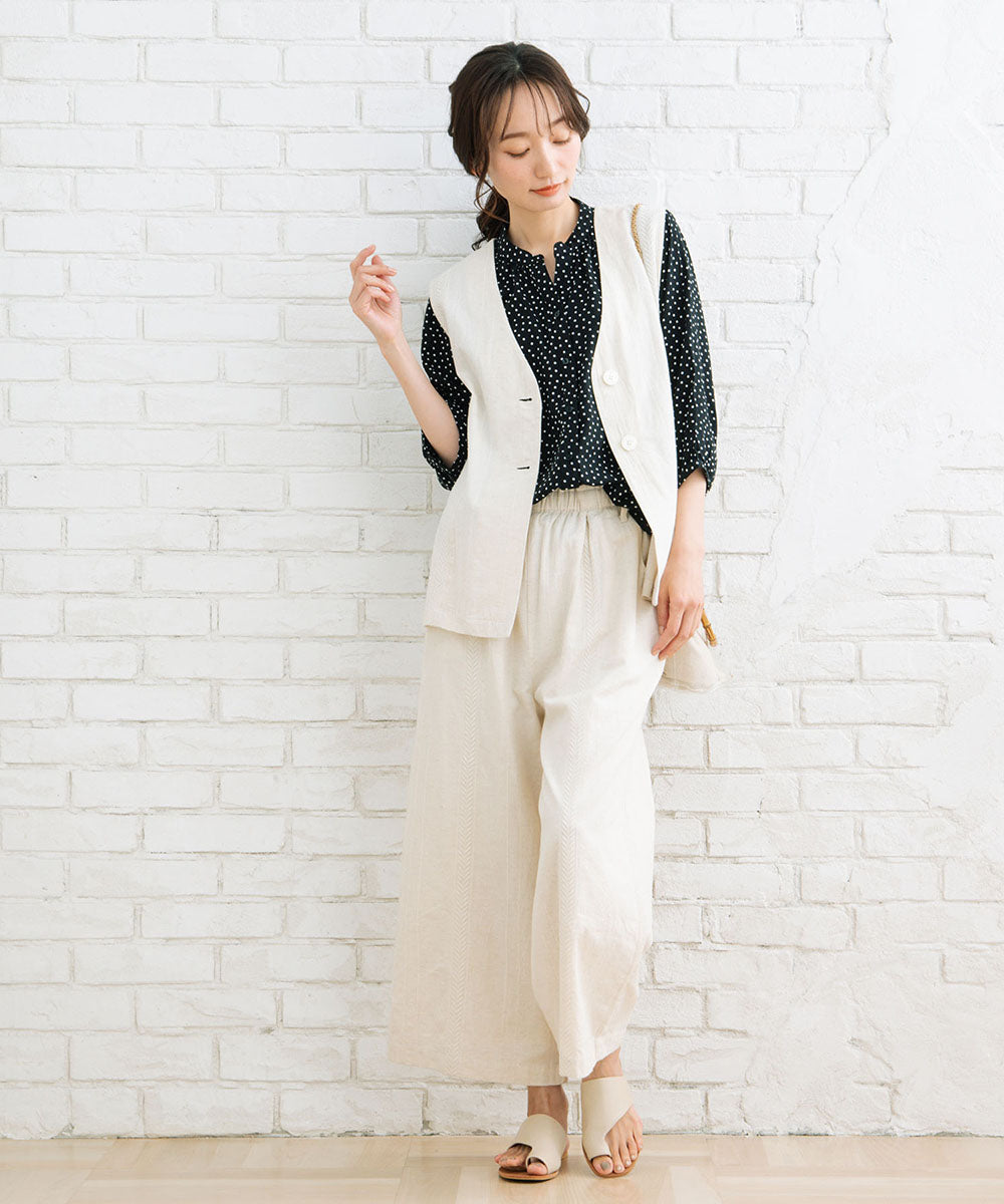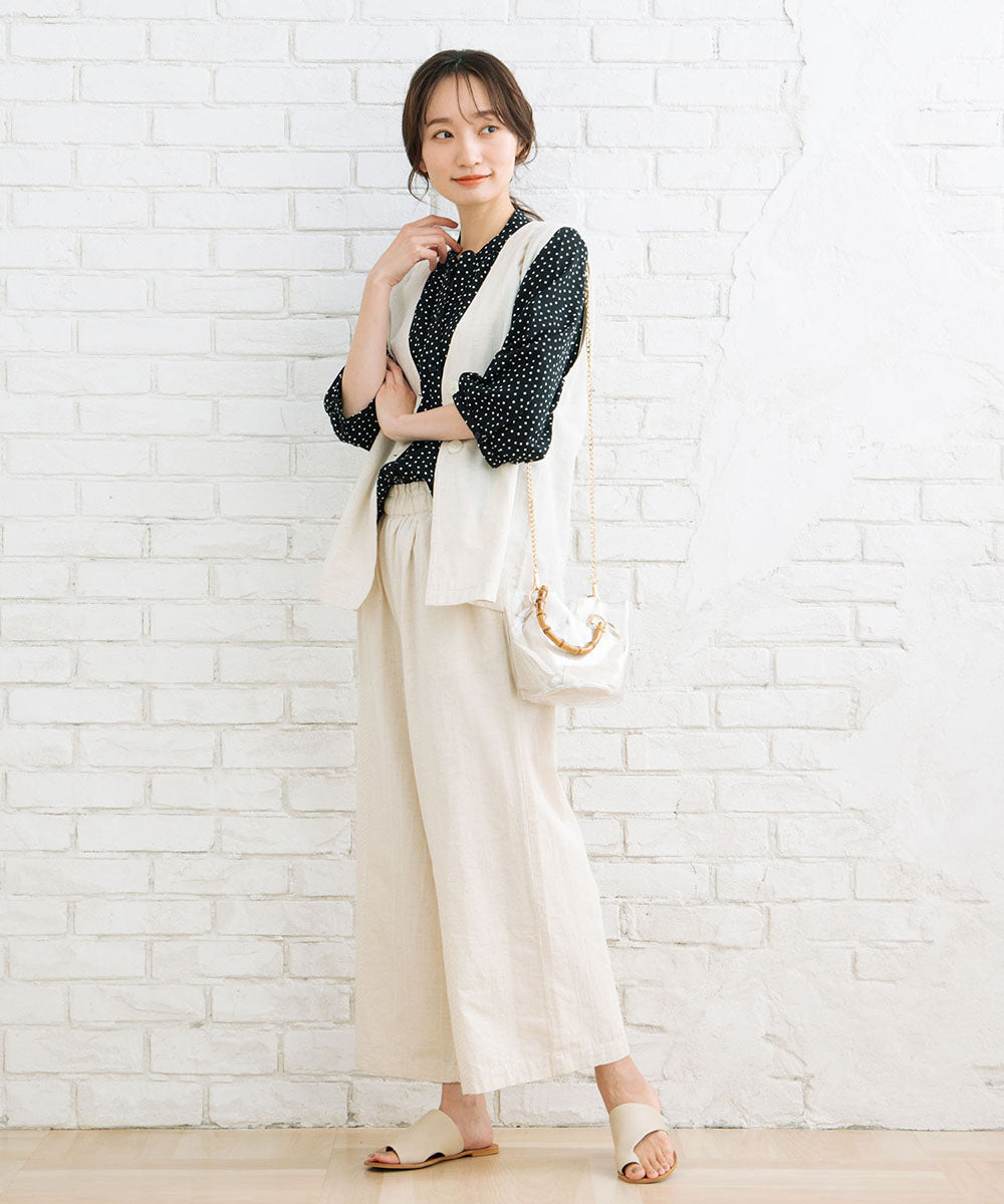 同じ素材を使用したブラウス(商品番号:33016616)とワイドパンツ(商品番号:33121537)がございます。