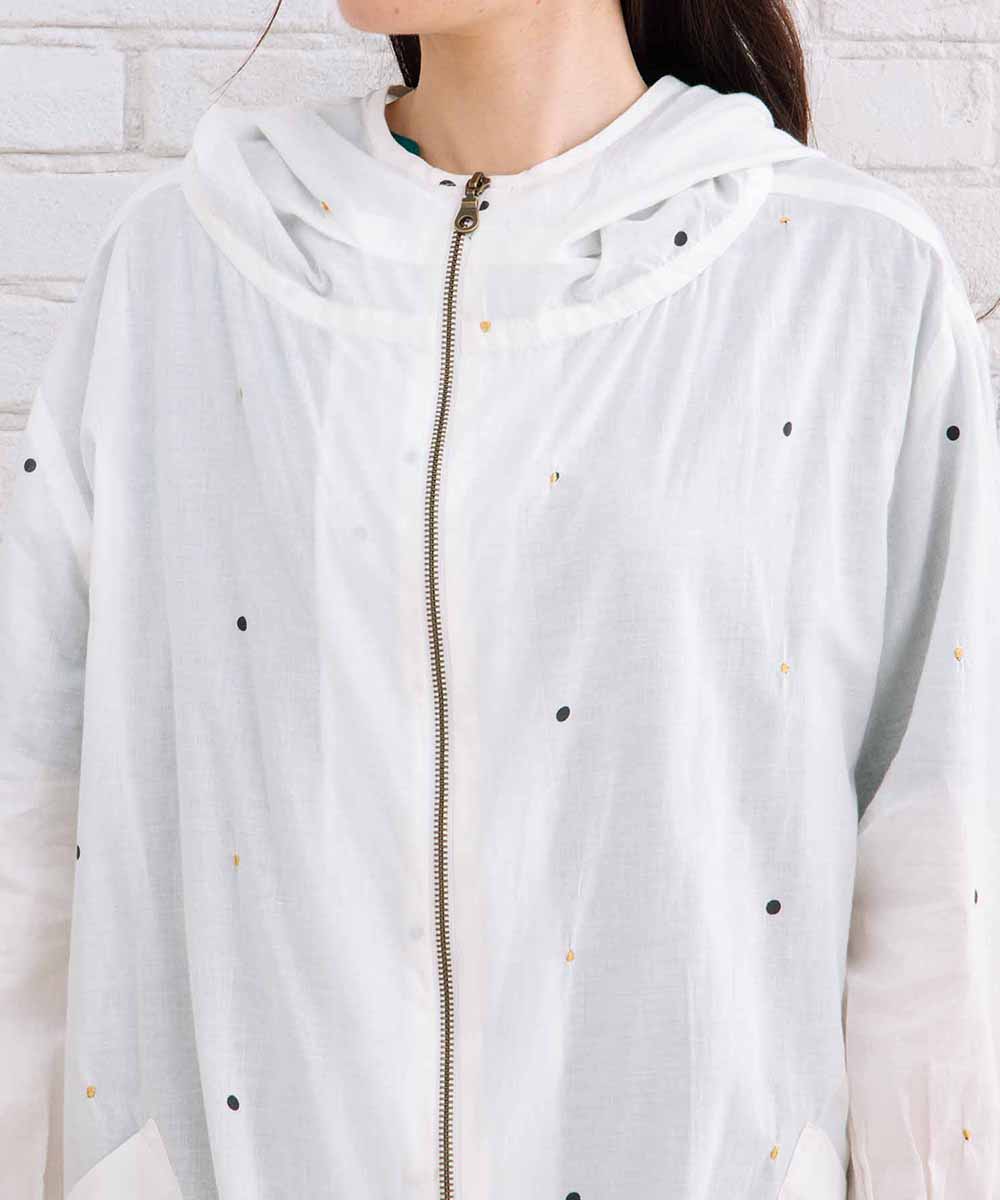 インドコットンの風合いと、遊び心のあるドット柄が魅力的なブルゾン。