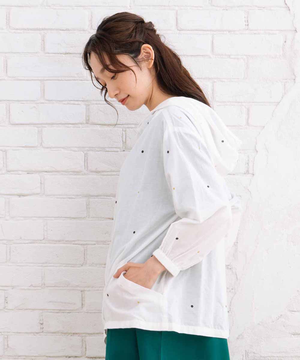 プリントと刺繍で表現されたドット柄が、シンプルな中に個性をプラスします。