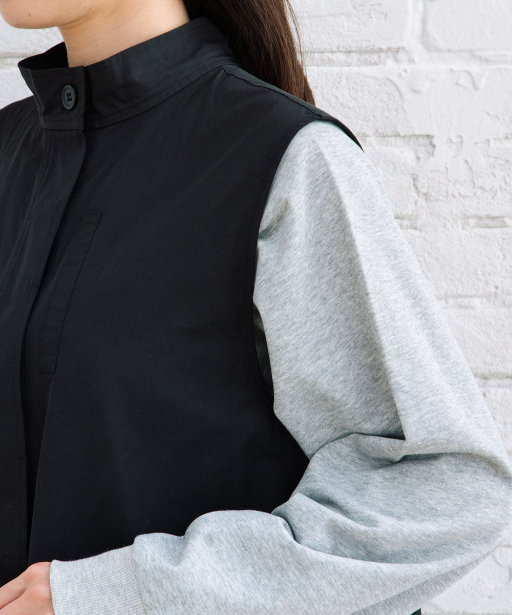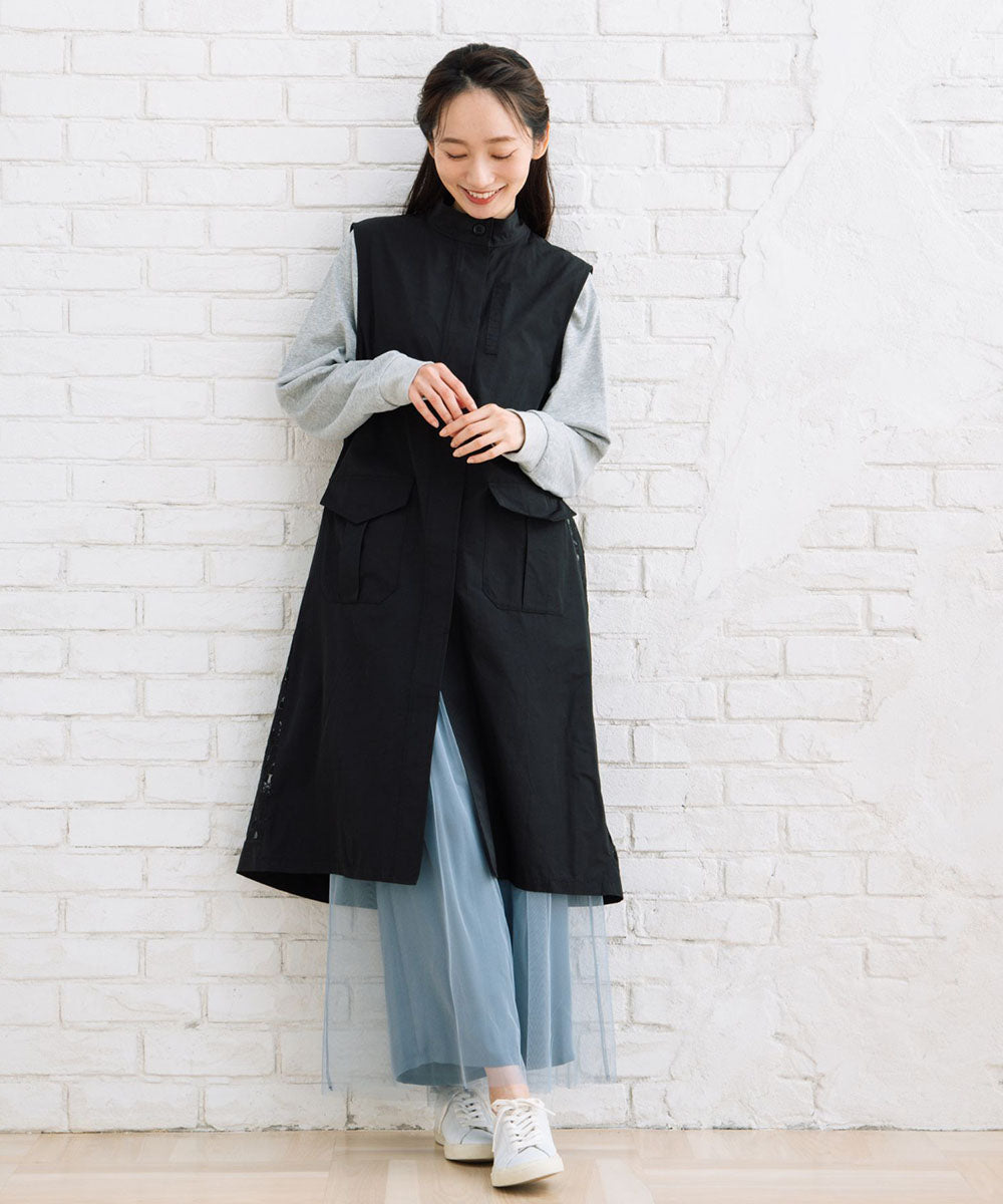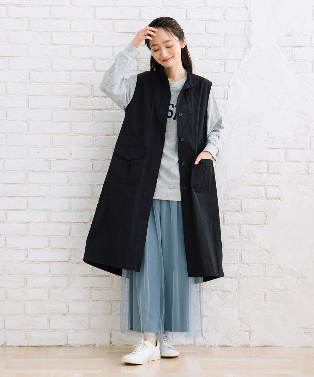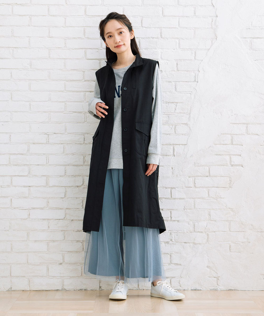 レイヤードスタイルに活躍するスタイリッシュなロングジレ。