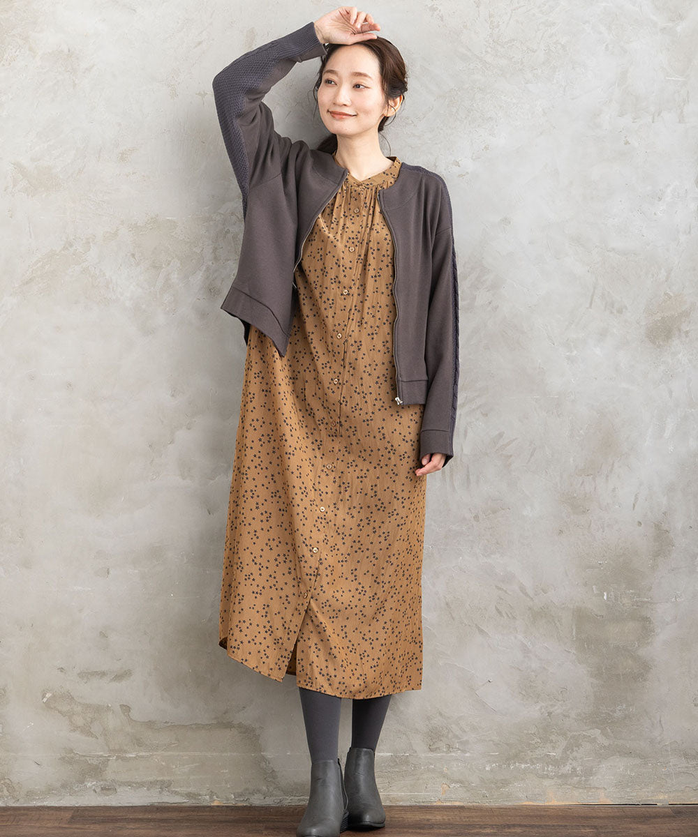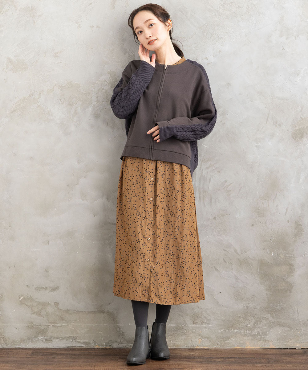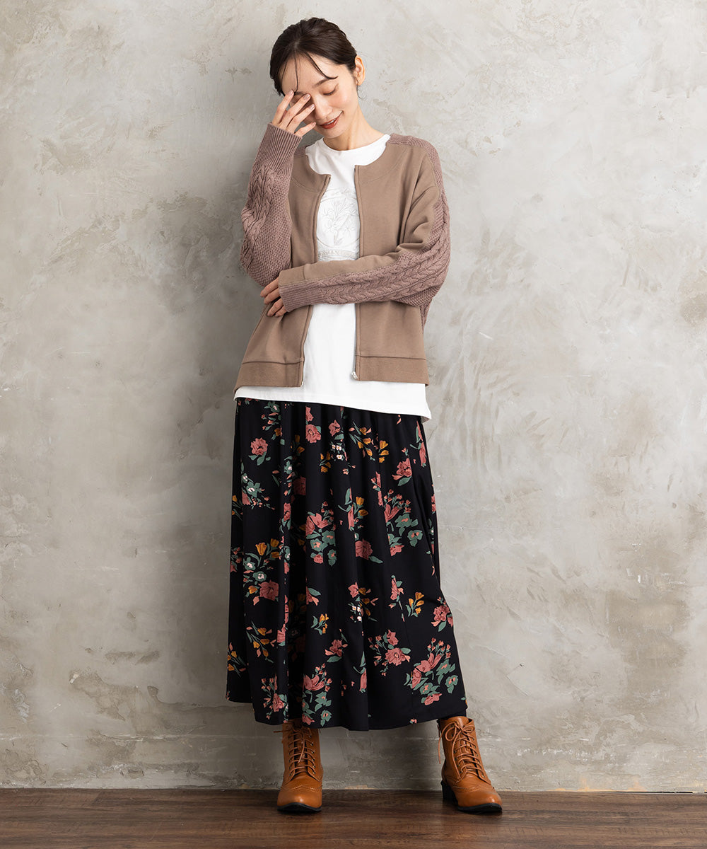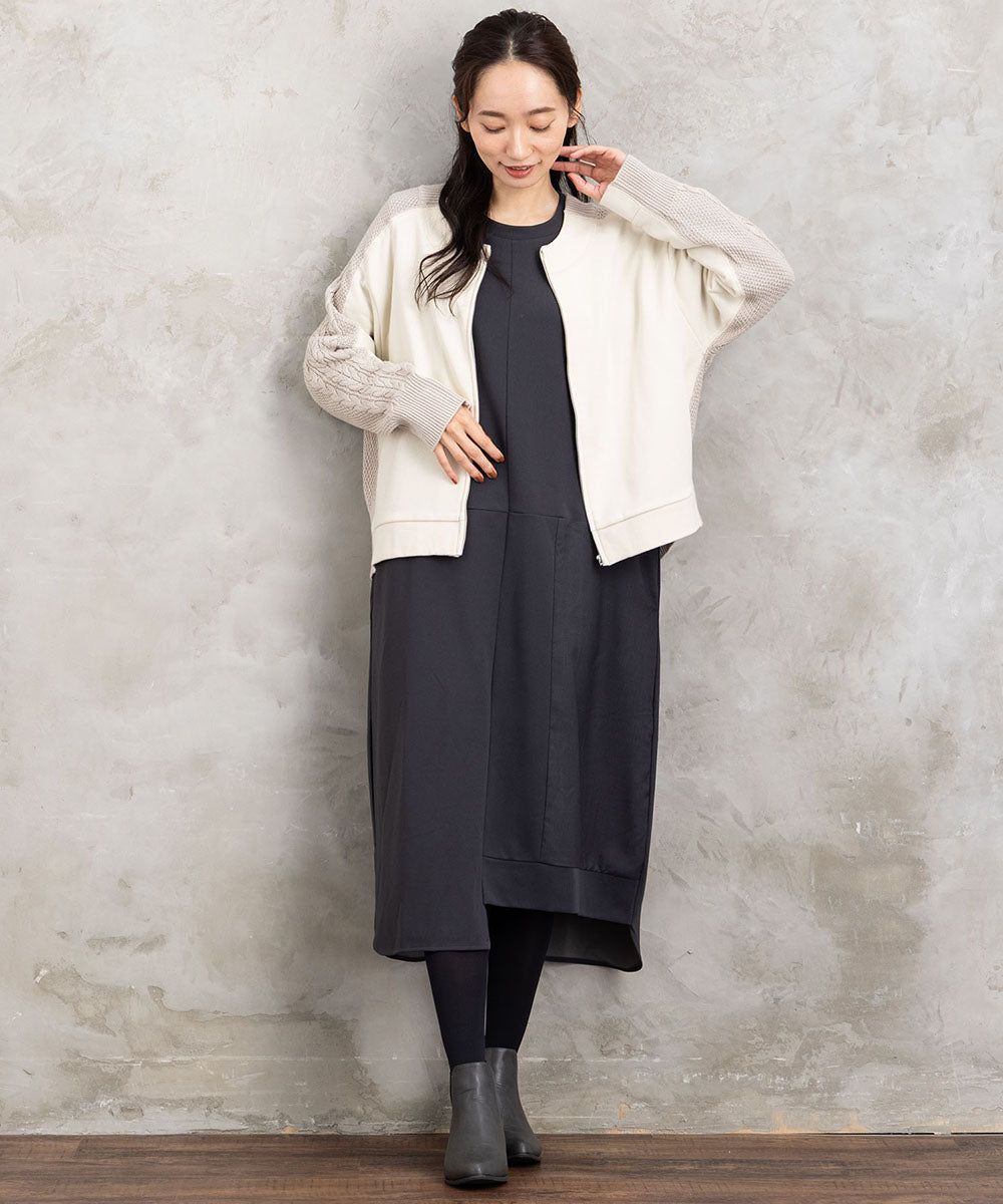 【異素材ミックスで魅せる、裏毛×ケーブルコンビブルゾン】