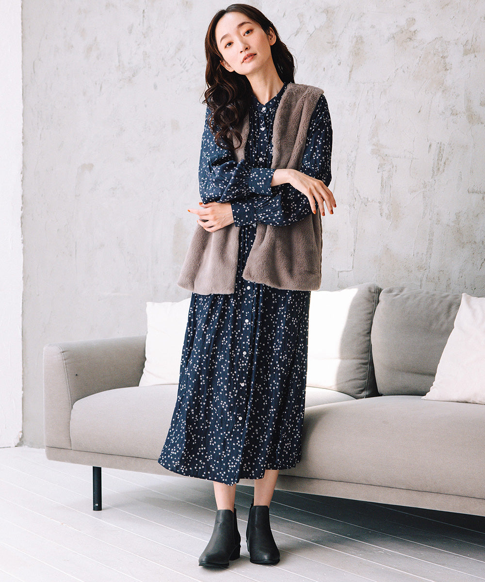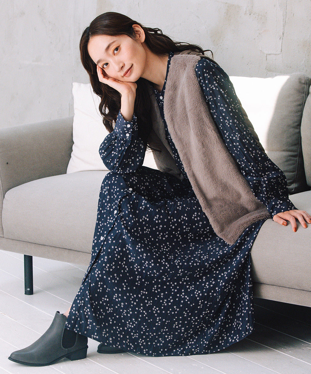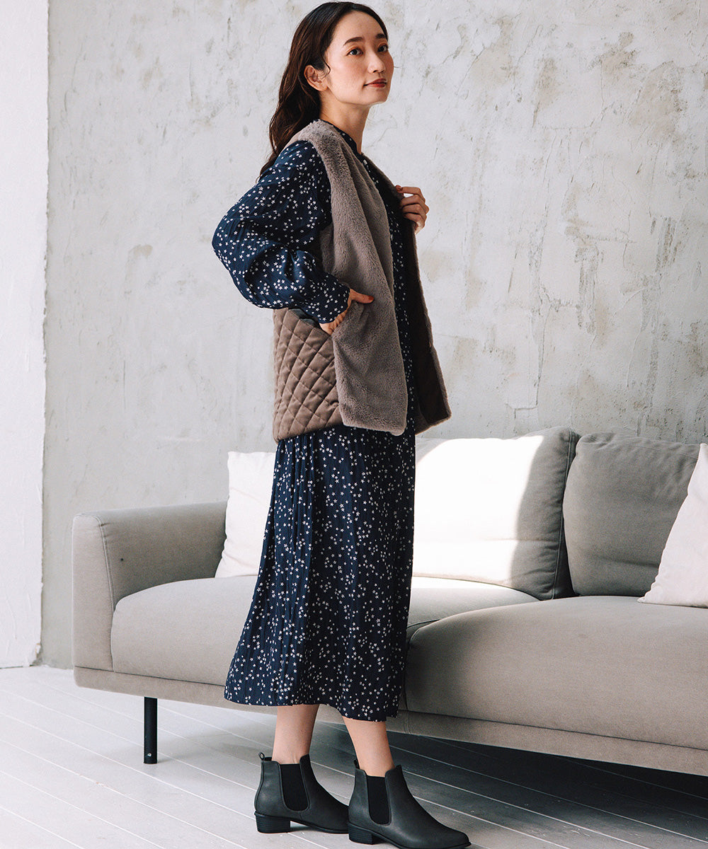 前面はなめらかな肌触りのフェイクファー、背面はステッチの効いたキルティングで、後ろ姿まで抜かりないデザインに。