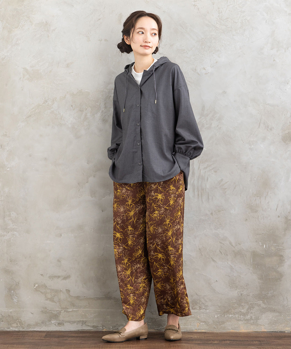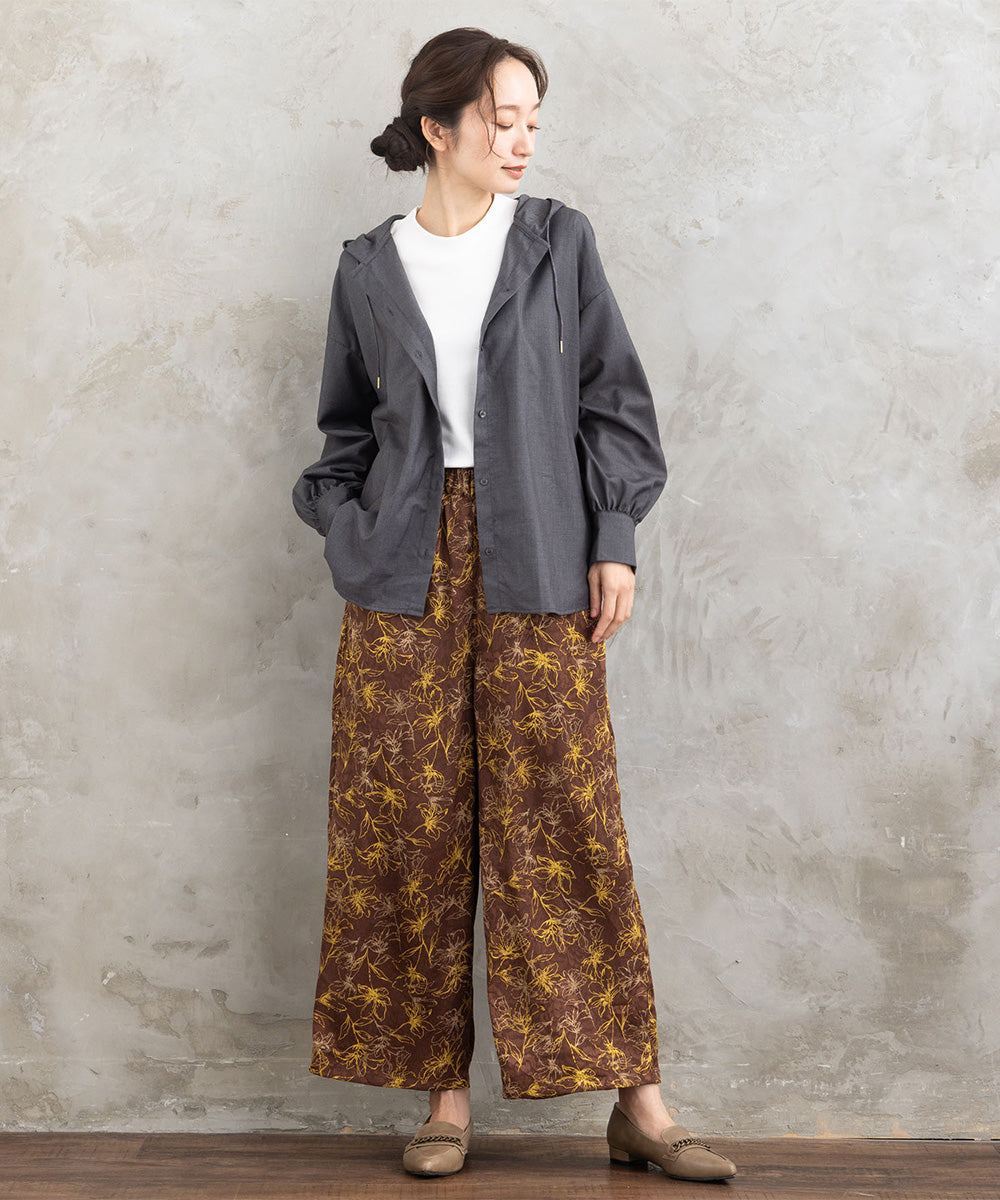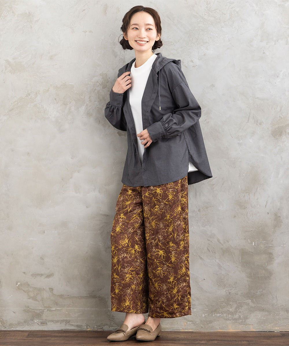 ワイドパンツと合わせて抜け感あるリラックスコーデに。