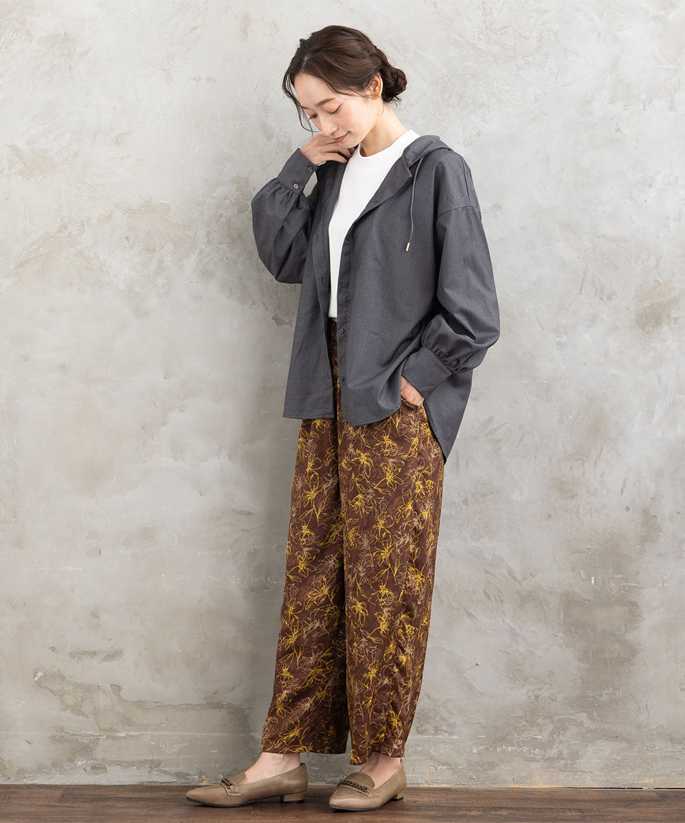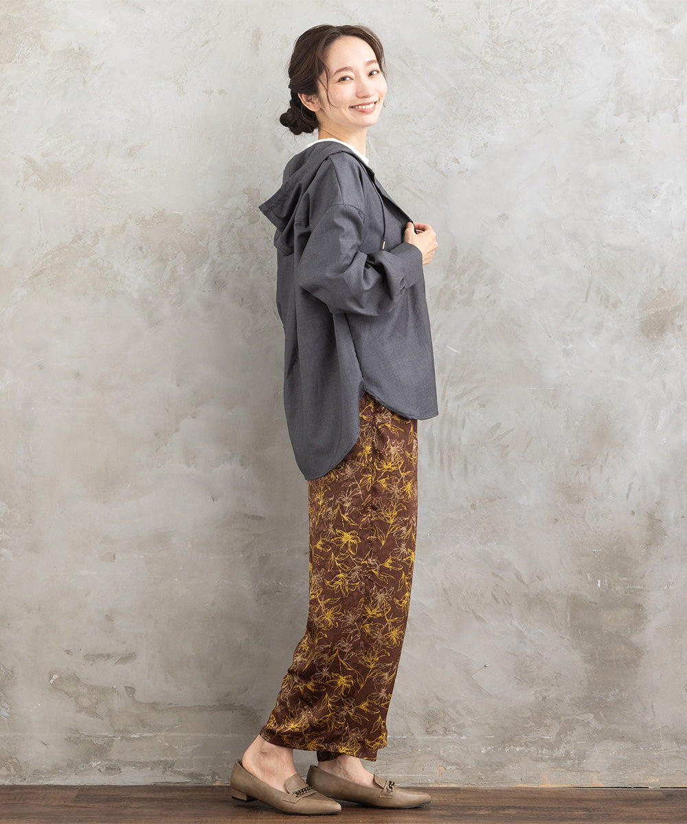 程よい光沢感と落ち感があり、カジュアルなデザインながらも大人らしい印象に。