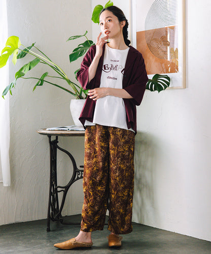 ハーフスリーブで軽やかな印象を与え、パンツにもスカートにもバランス良く合わせられます。