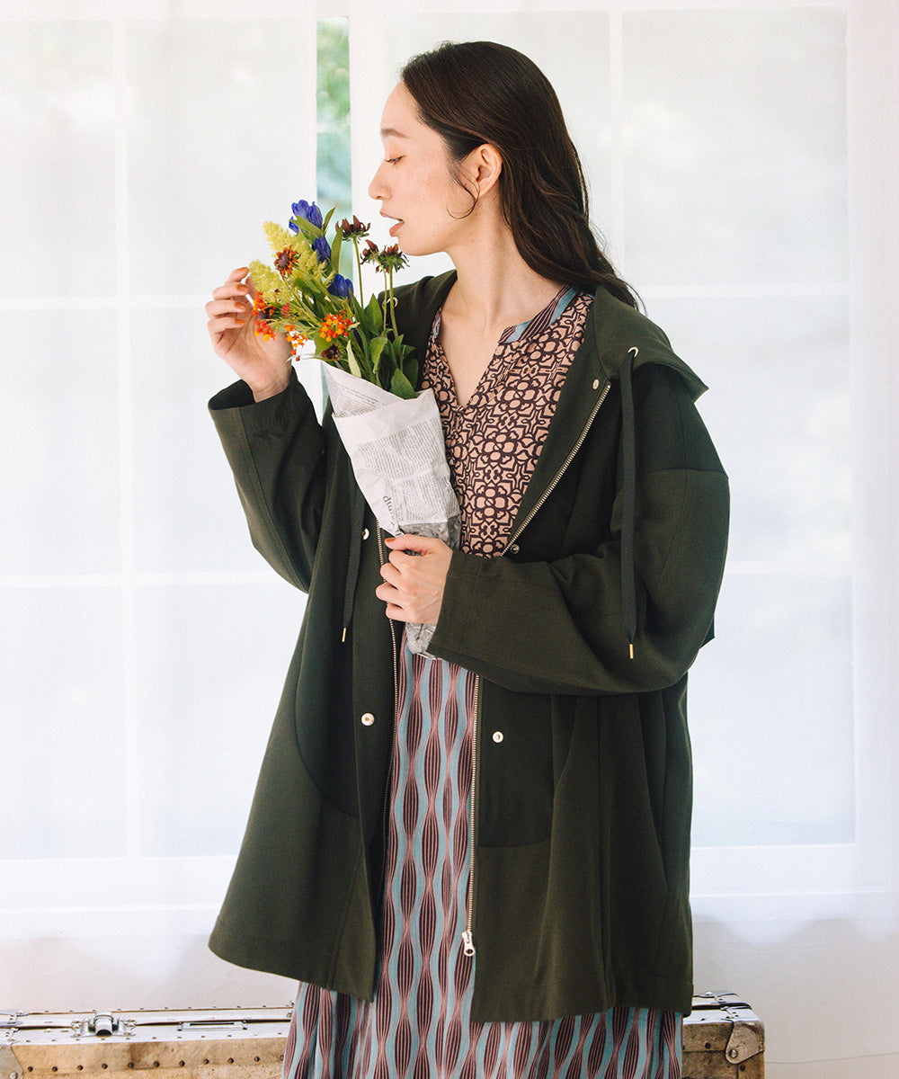 【異素材の魅力が映える、布帛コンビマウンテンパーカー】