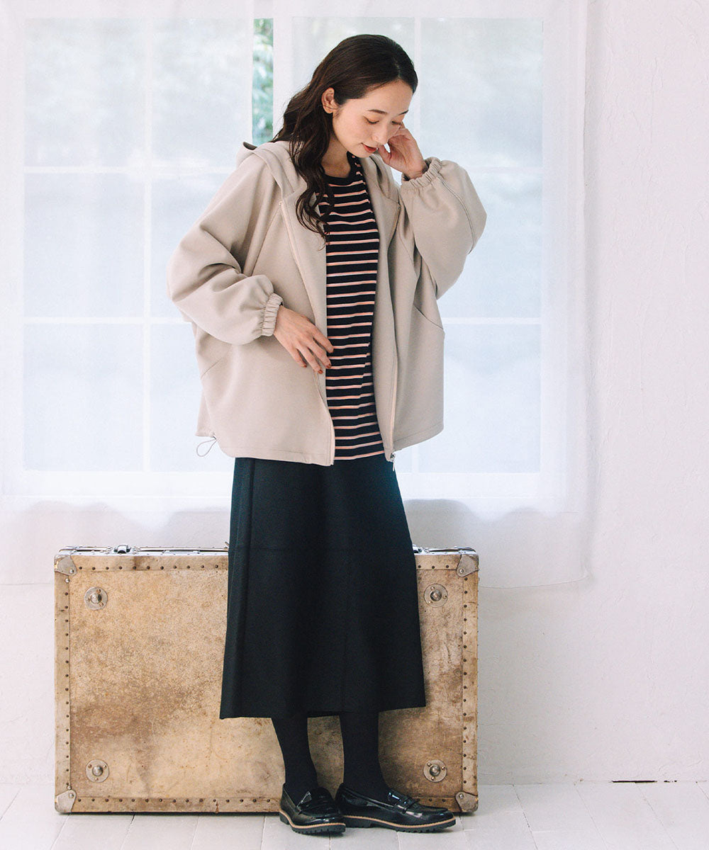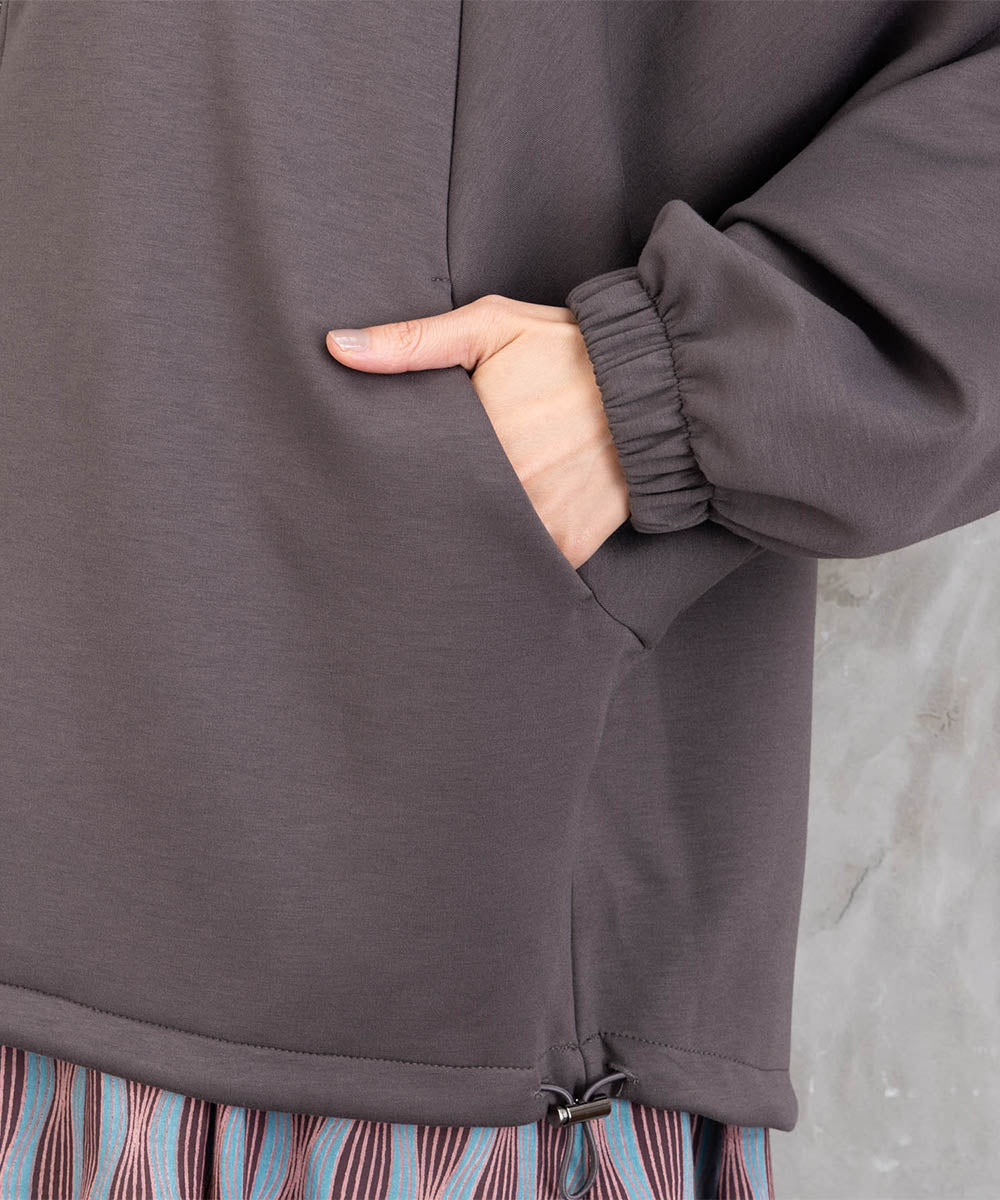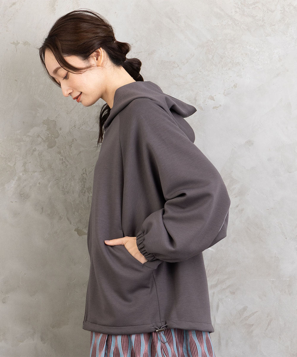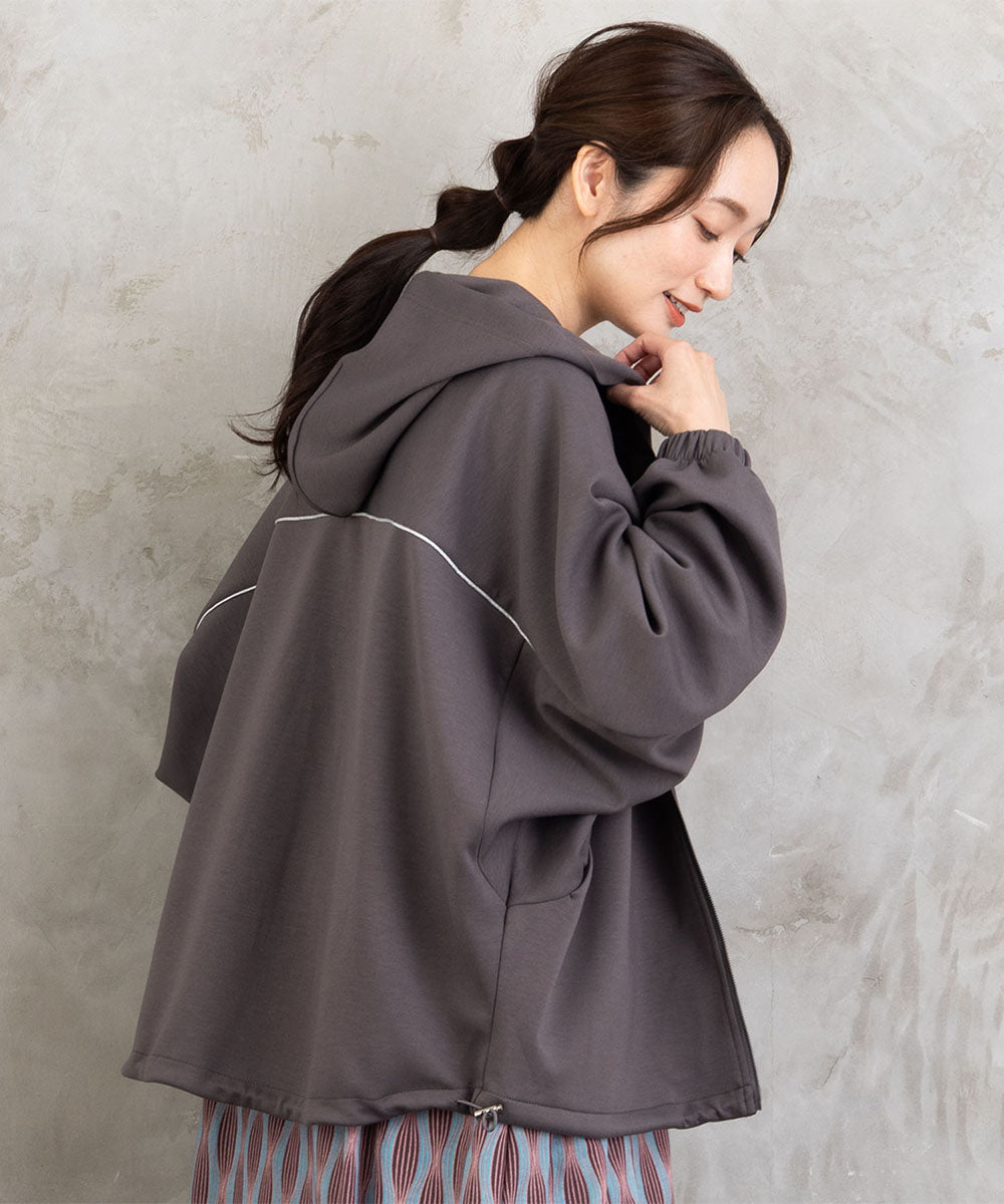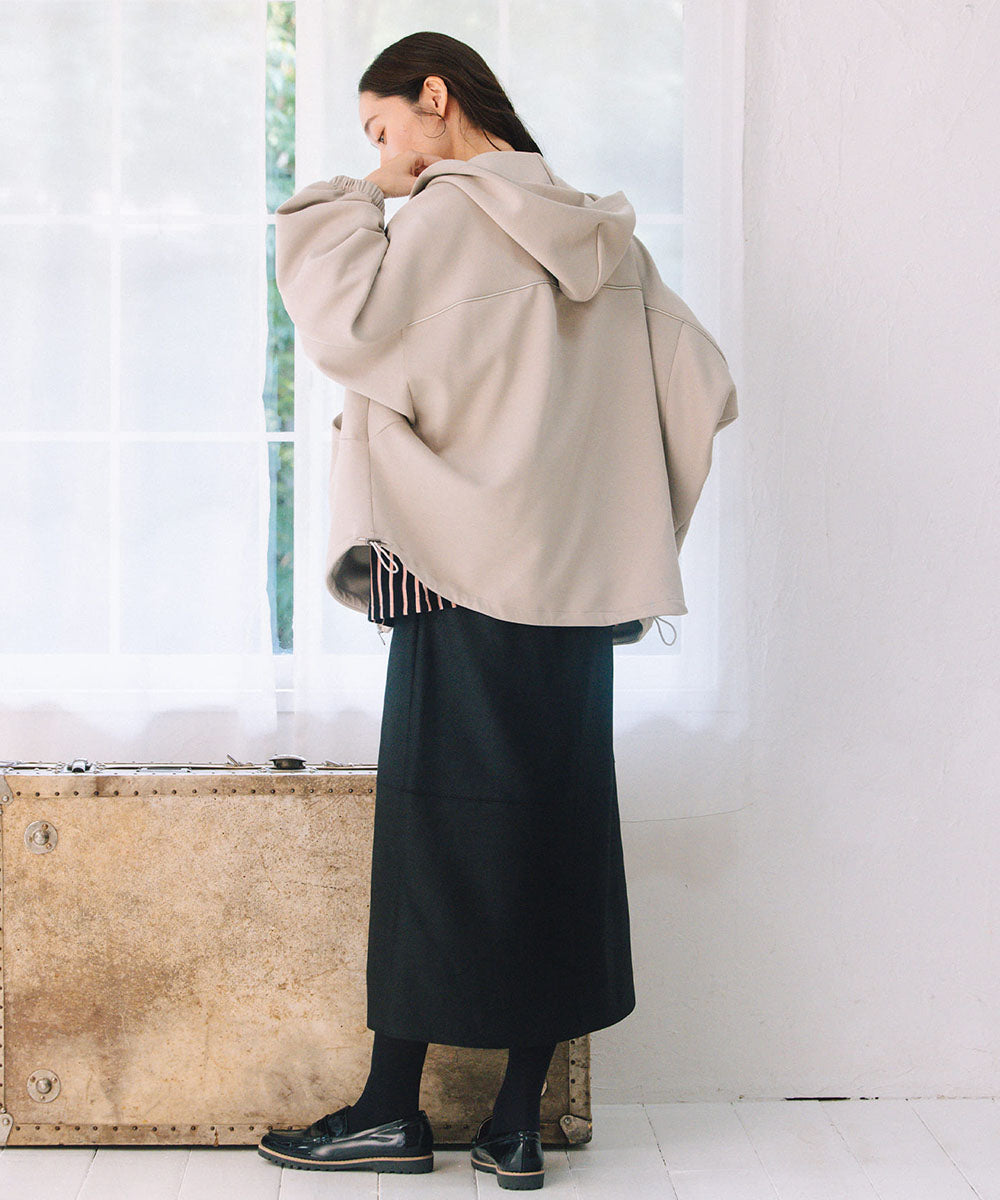 裾のドロストを絞ってシルエットアレンジも楽しめます。