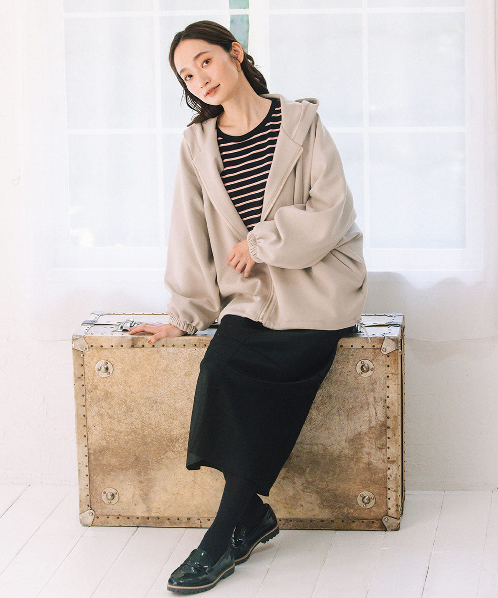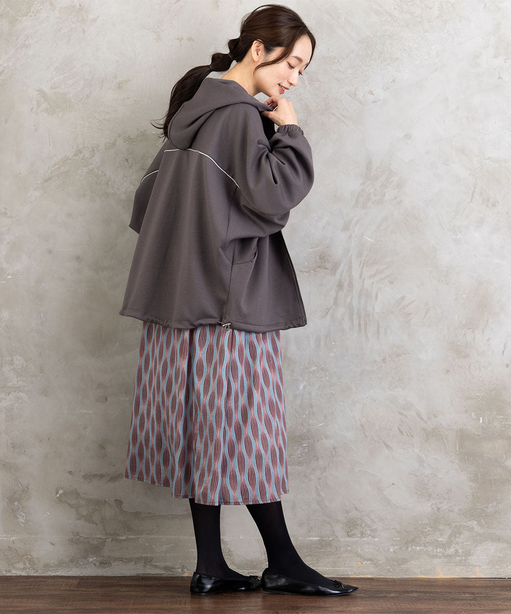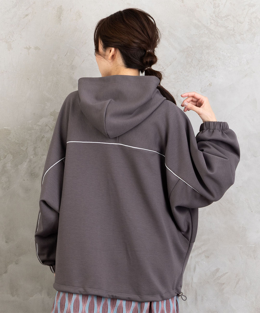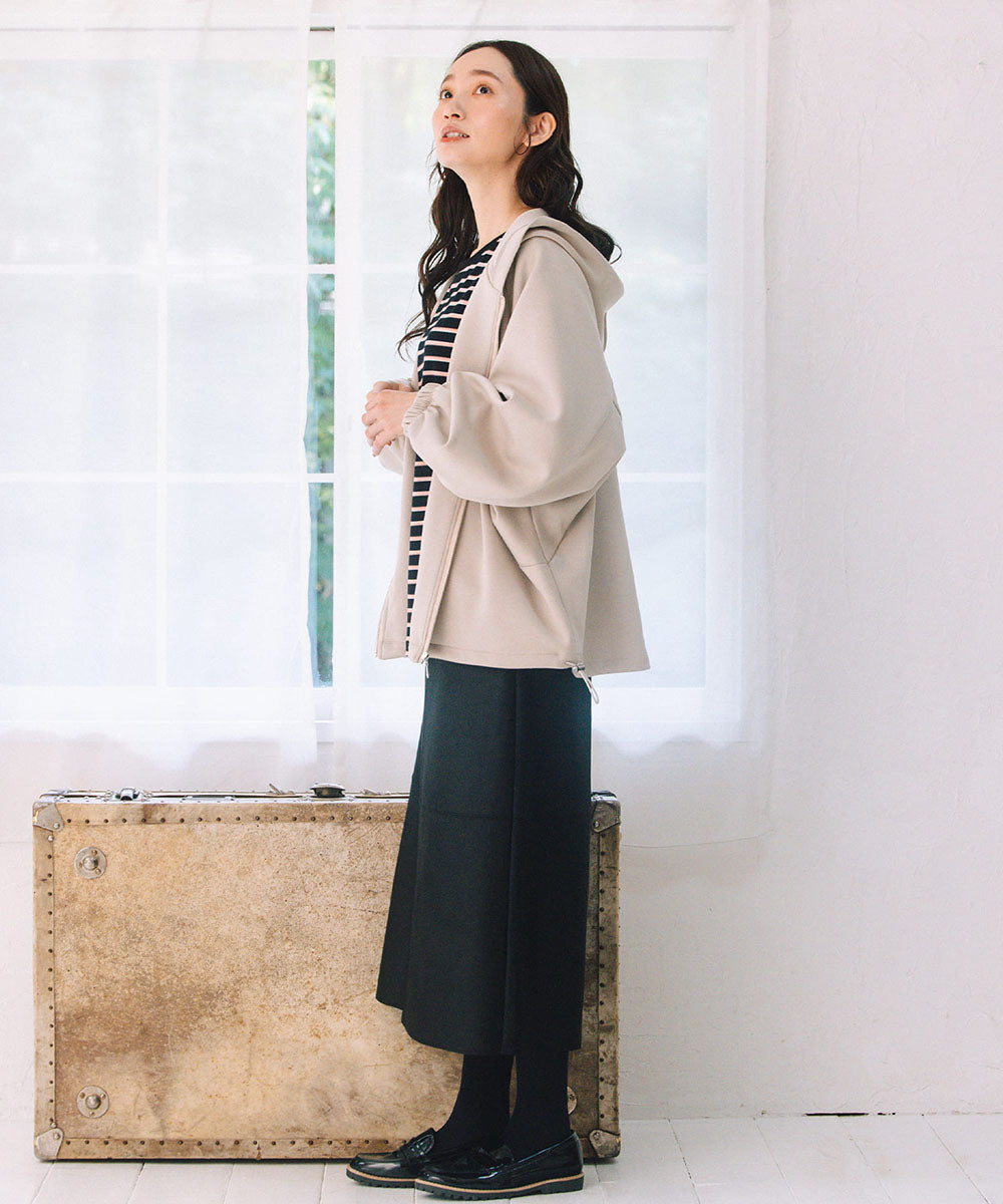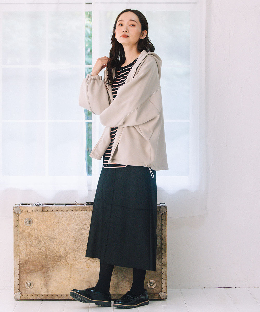 裾のドロストを絞ってシルエットアレンジも楽しめます。