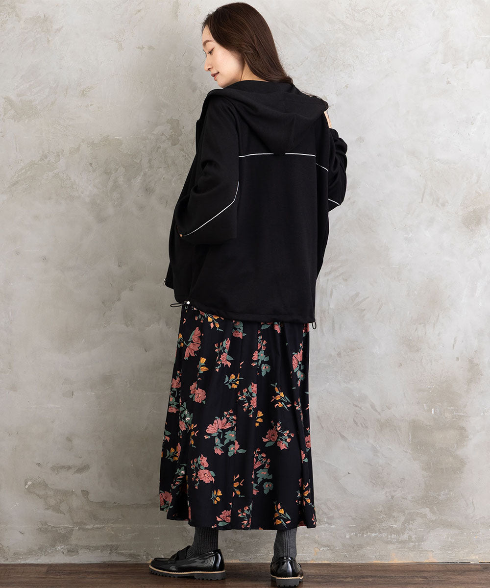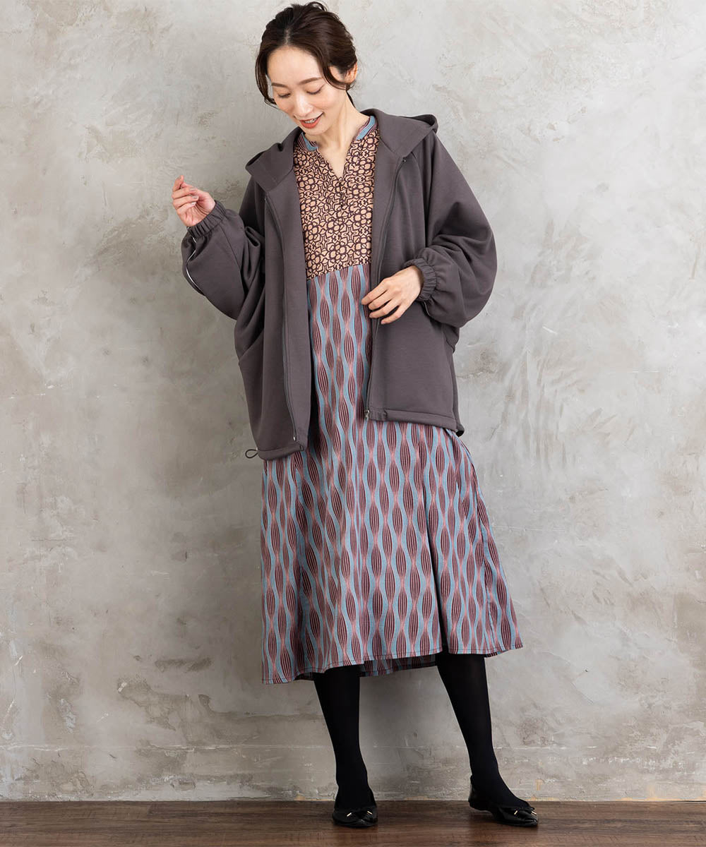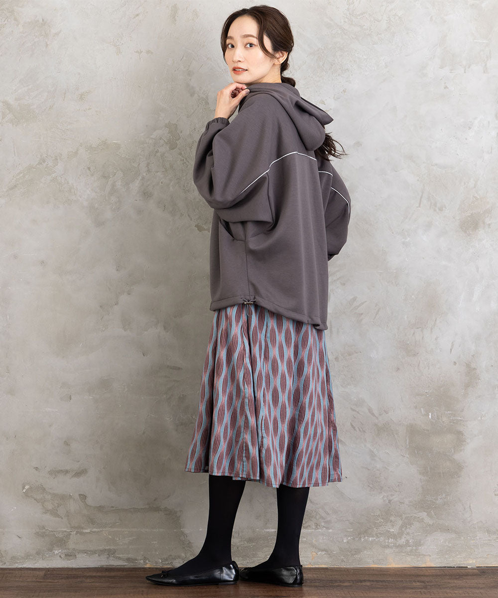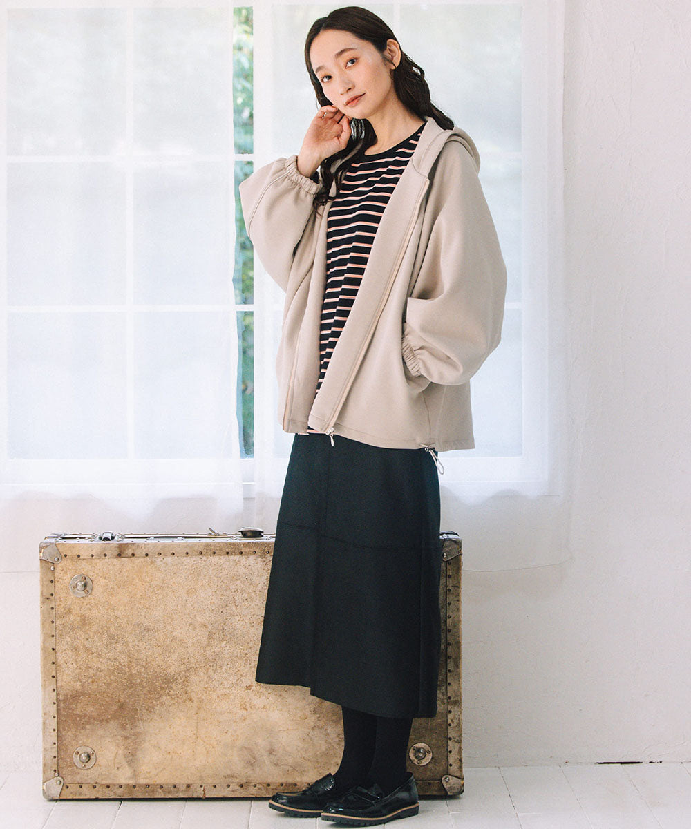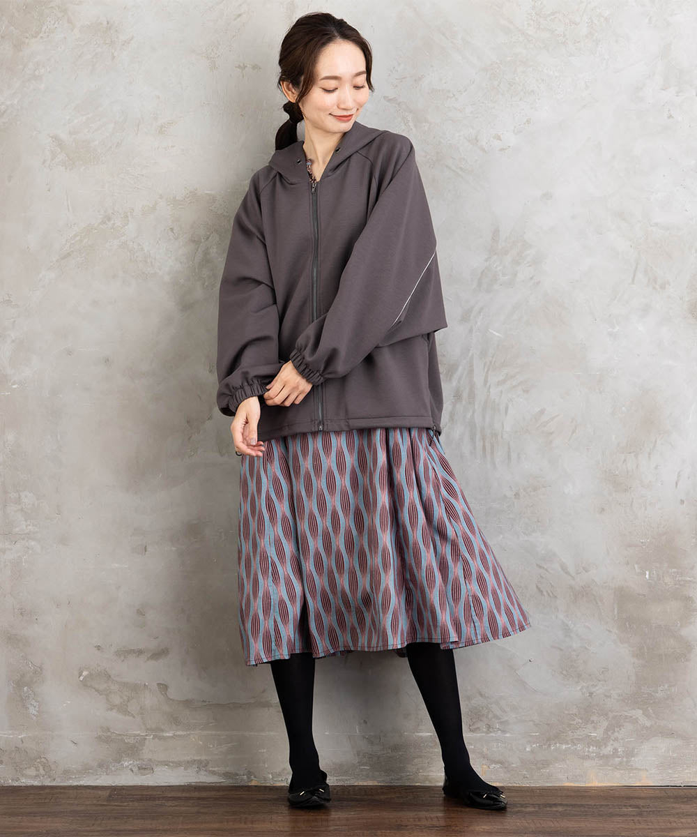 裾のドロストを絞ってシルエットアレンジも楽しめます。