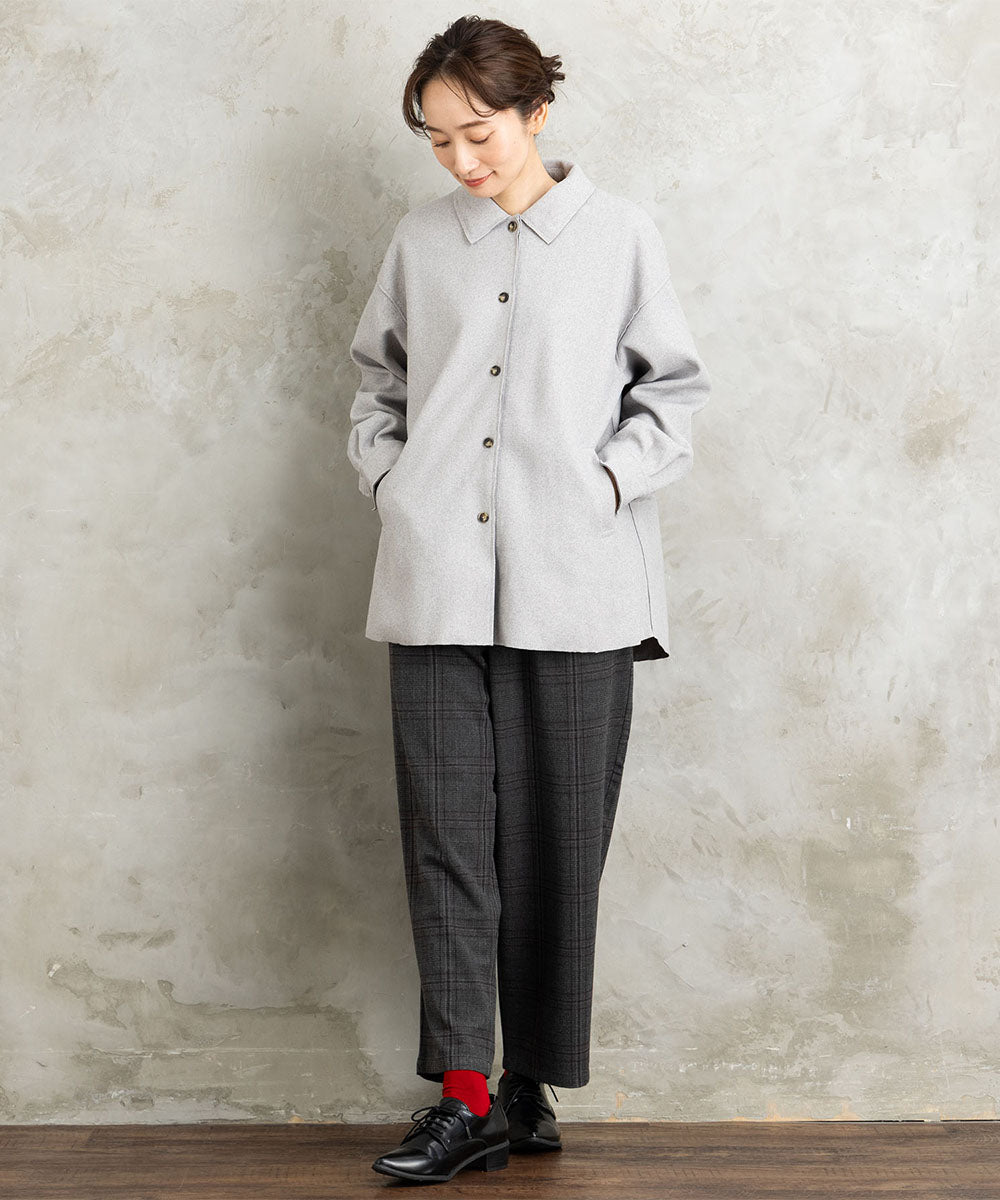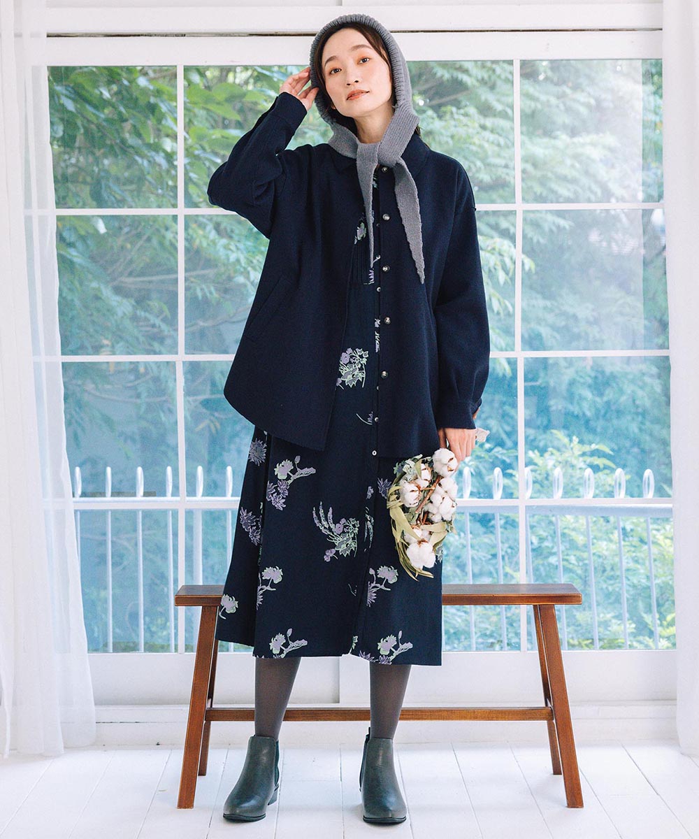 ウール調のライトメルトン素材で仕立てた、上品な温もりを感じる一枚。