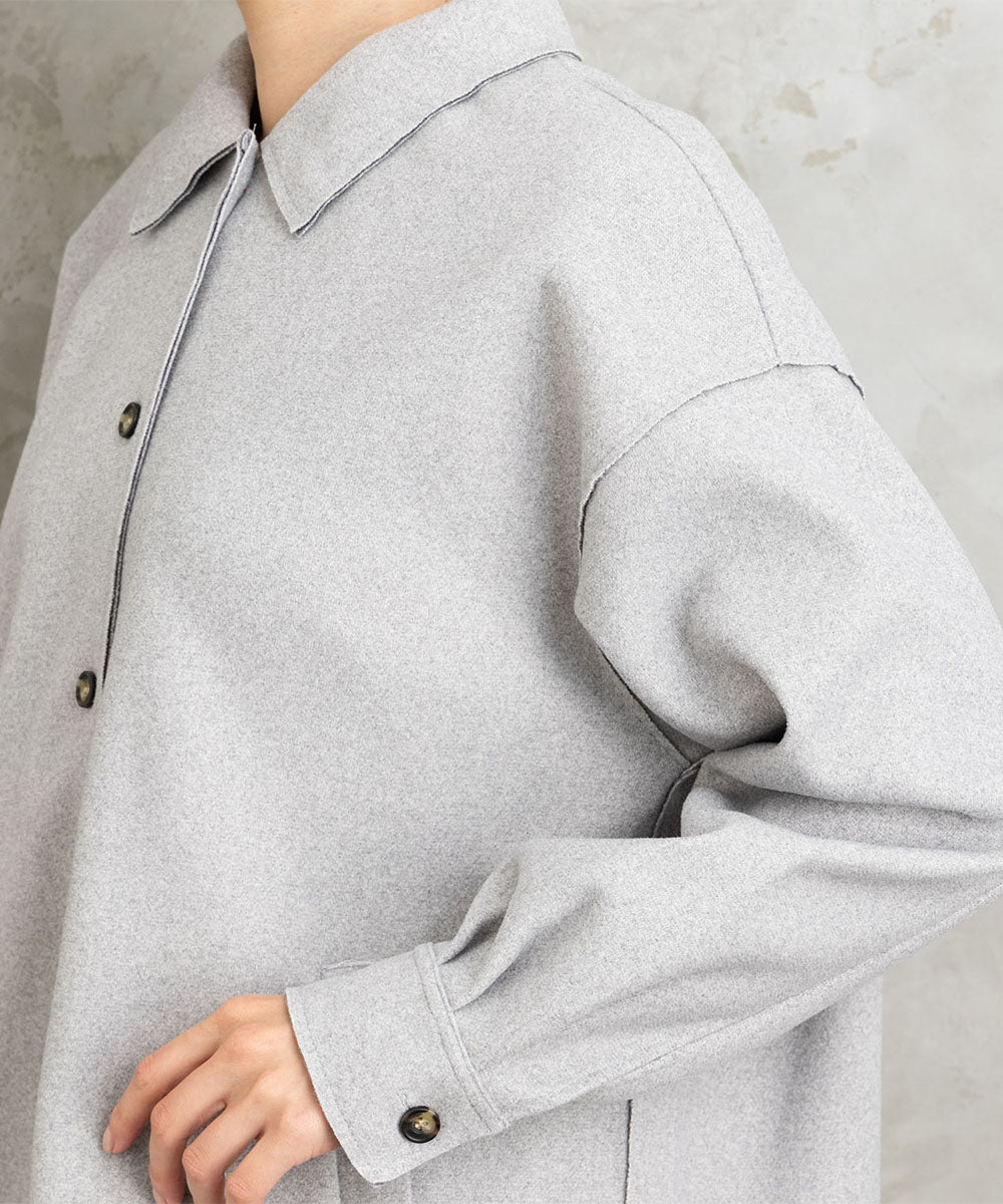 ボタンを閉じてトップス風にも、開けて軽いアウターとしても活躍します。