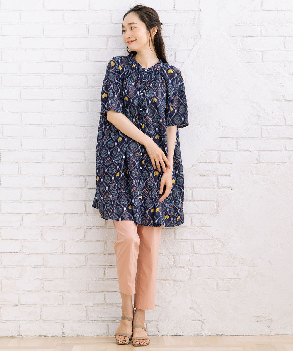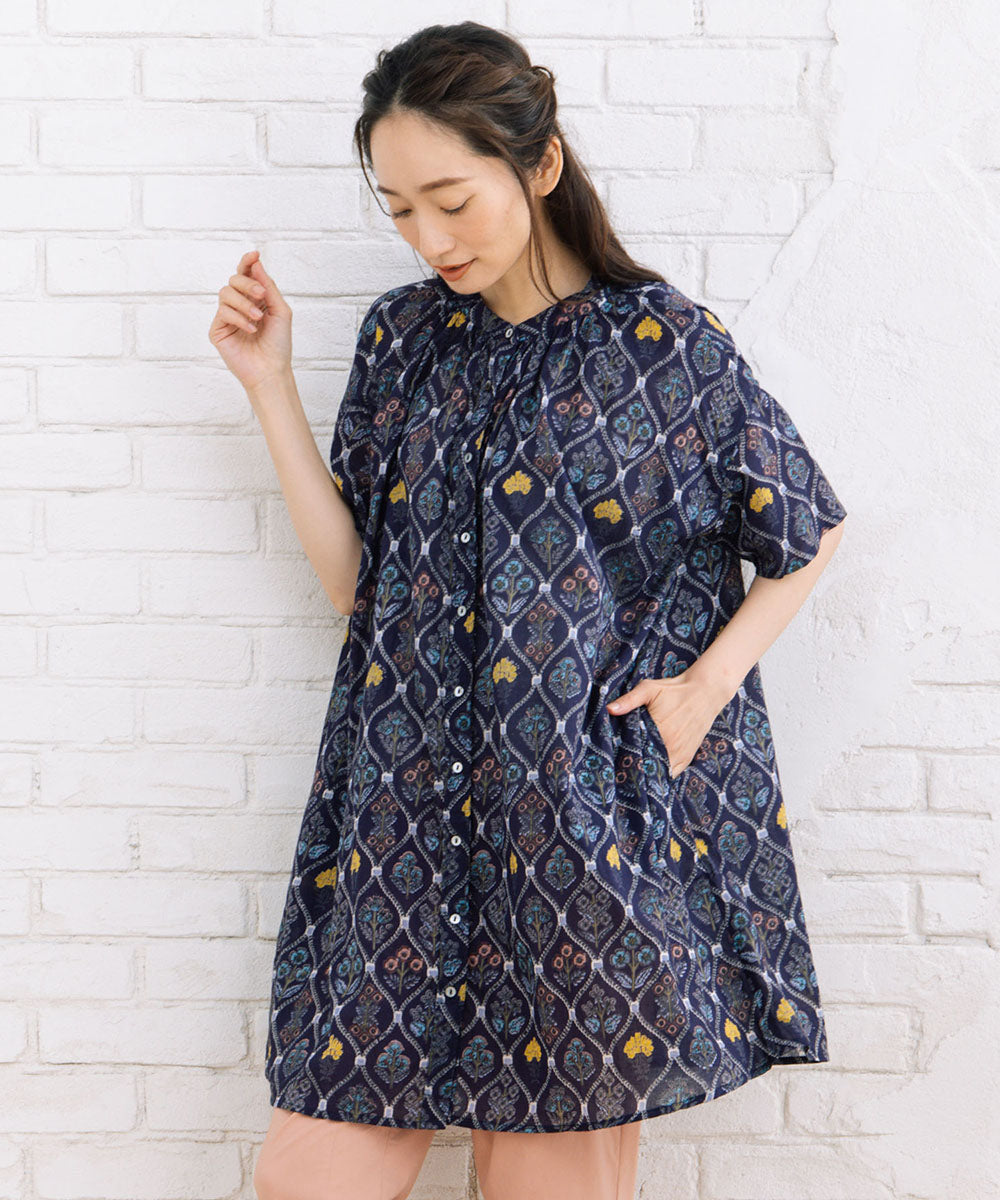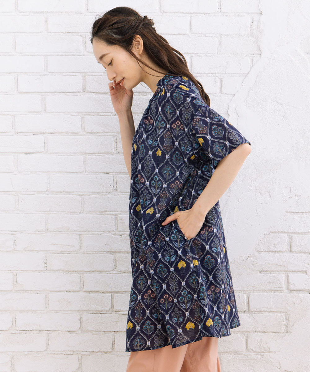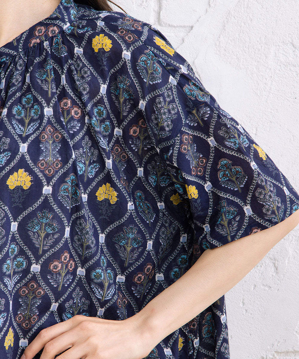 エキゾチックなフラワータイルプリントが印象的なチュニック。