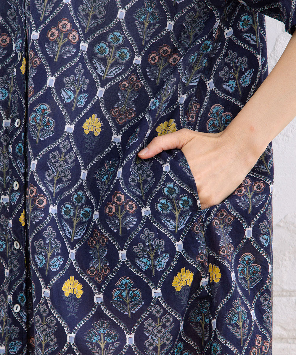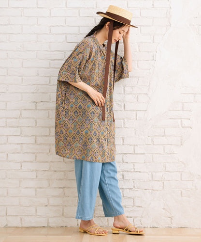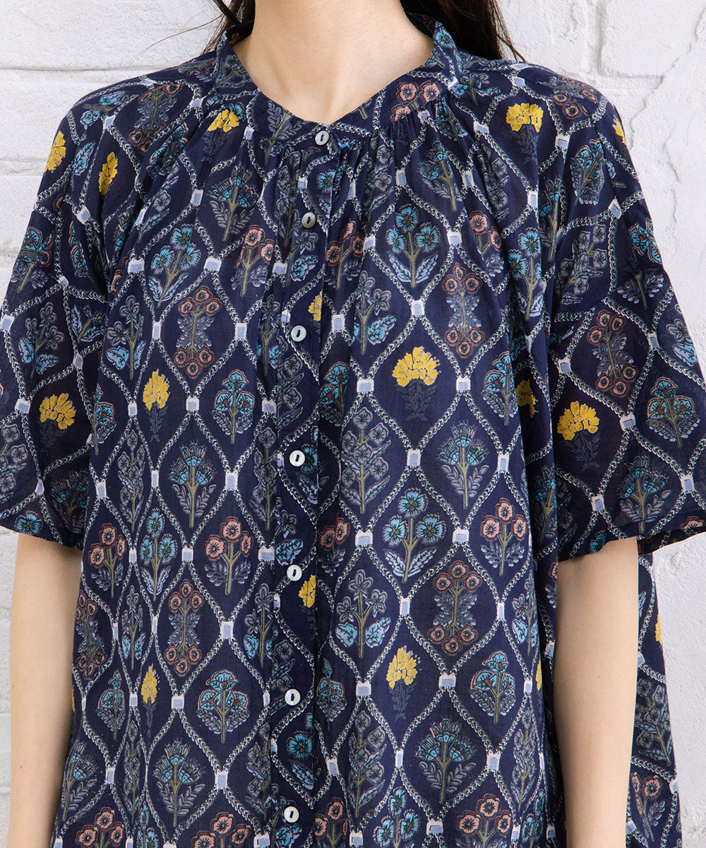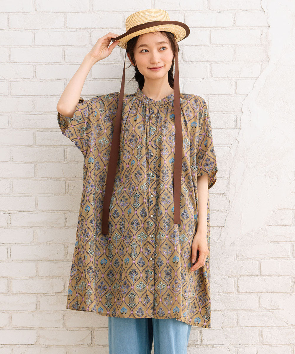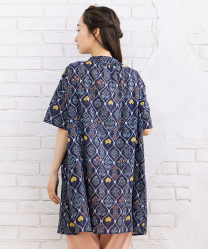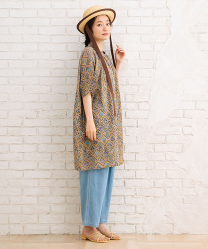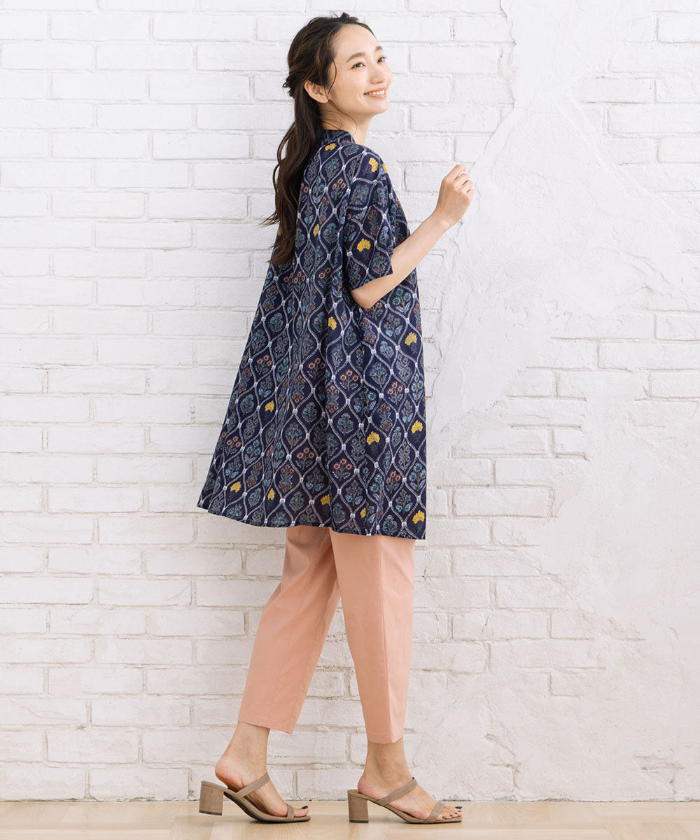 エキゾチックなフラワータイルプリントが印象的なチュニック。