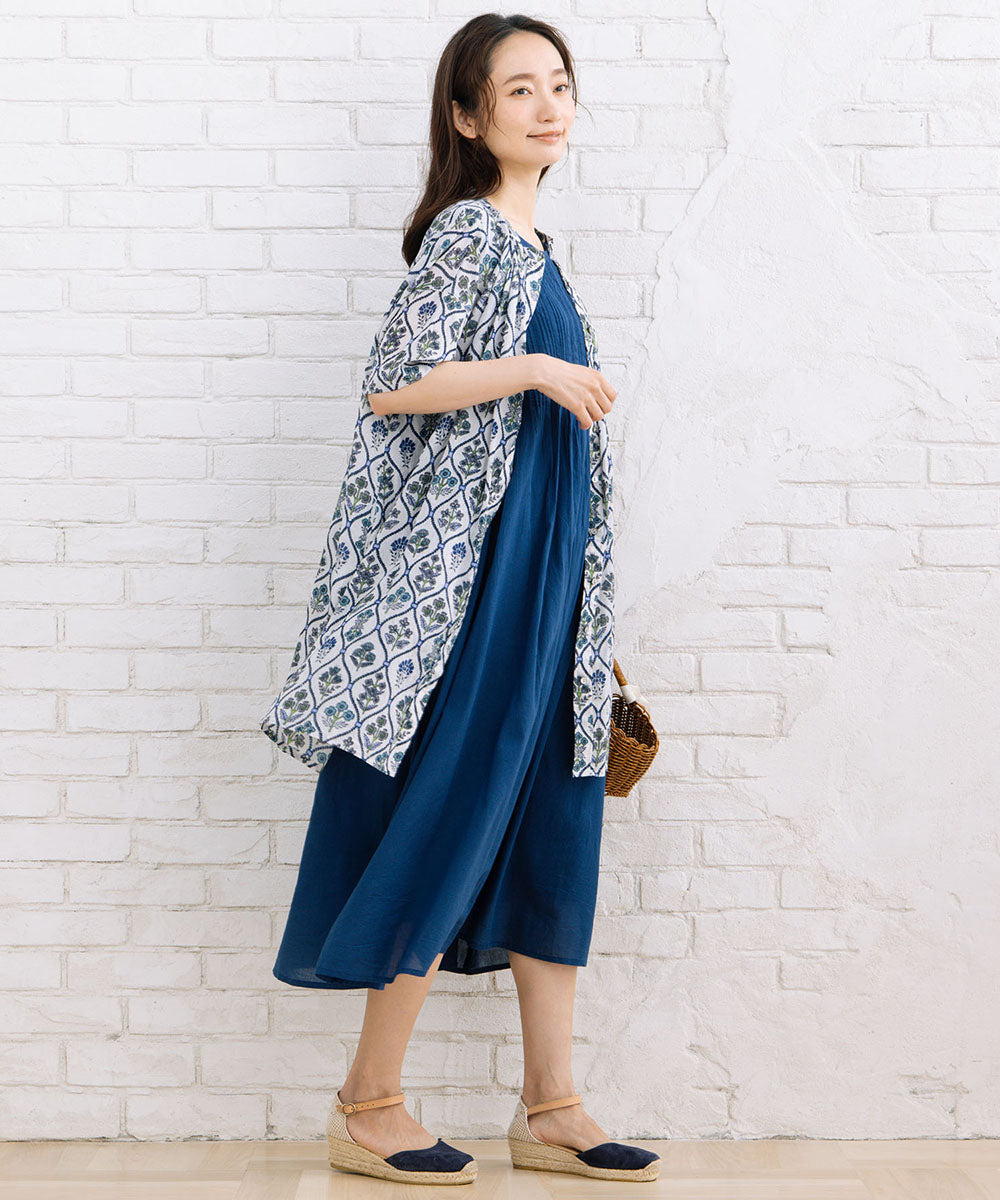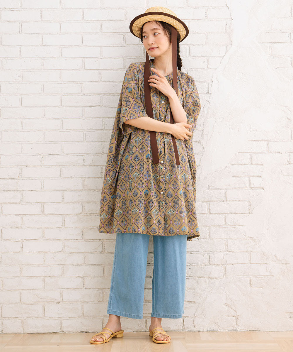細身のパンツと合わせてチュニックとして、またはワイドパンツやスカートにタックインしてブラウス風にと、ボタンを開けて羽織りとしても活用でき、着こなしの幅が広がります。