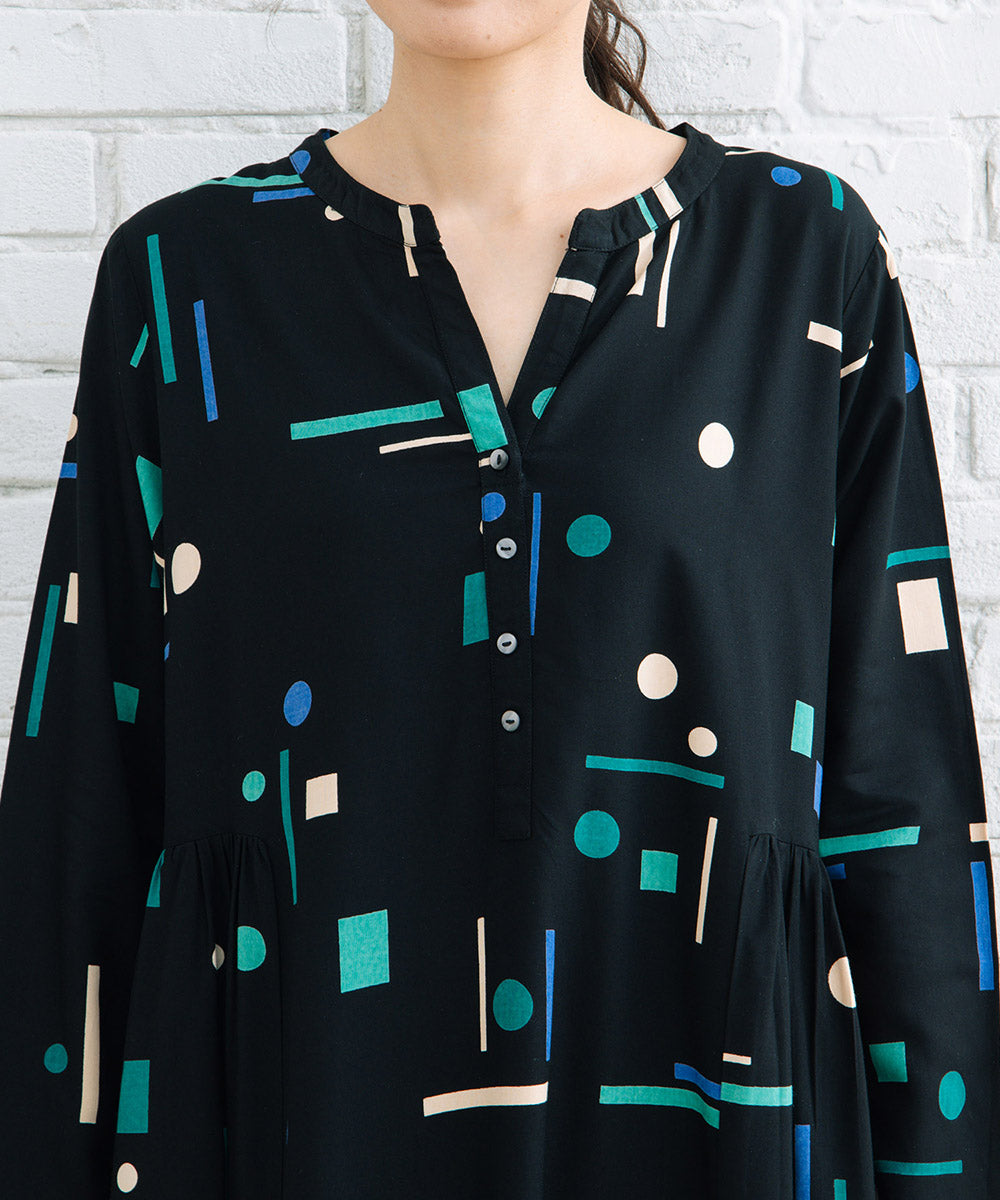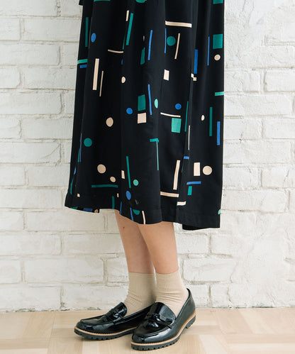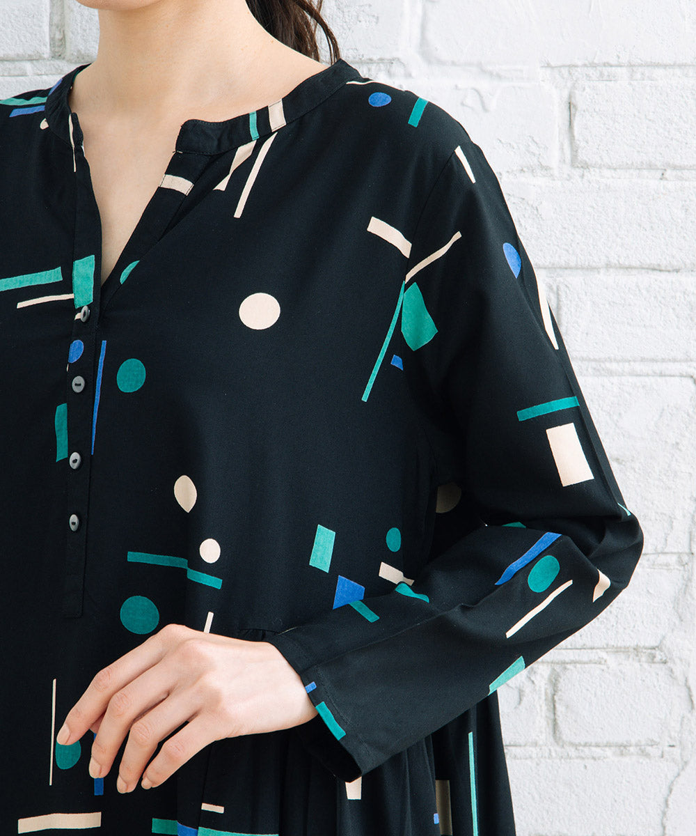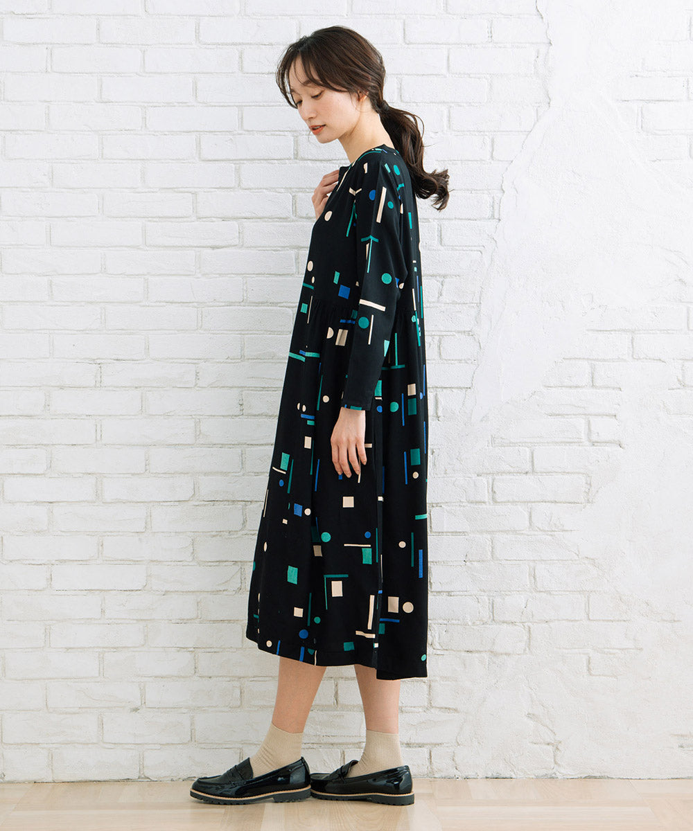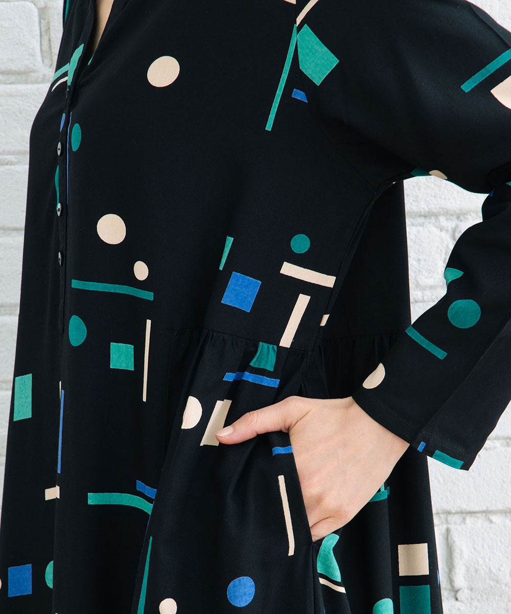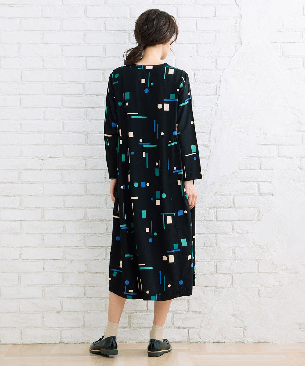 1枚で華やかなカラフルなジオメトリックワンピース。