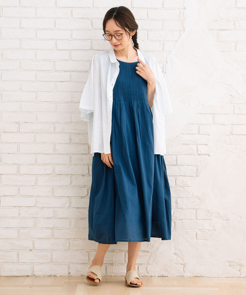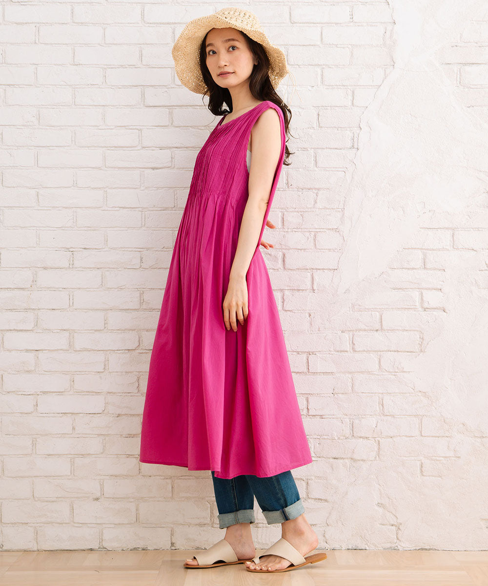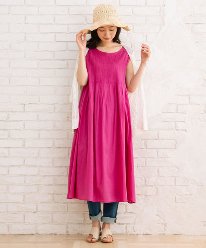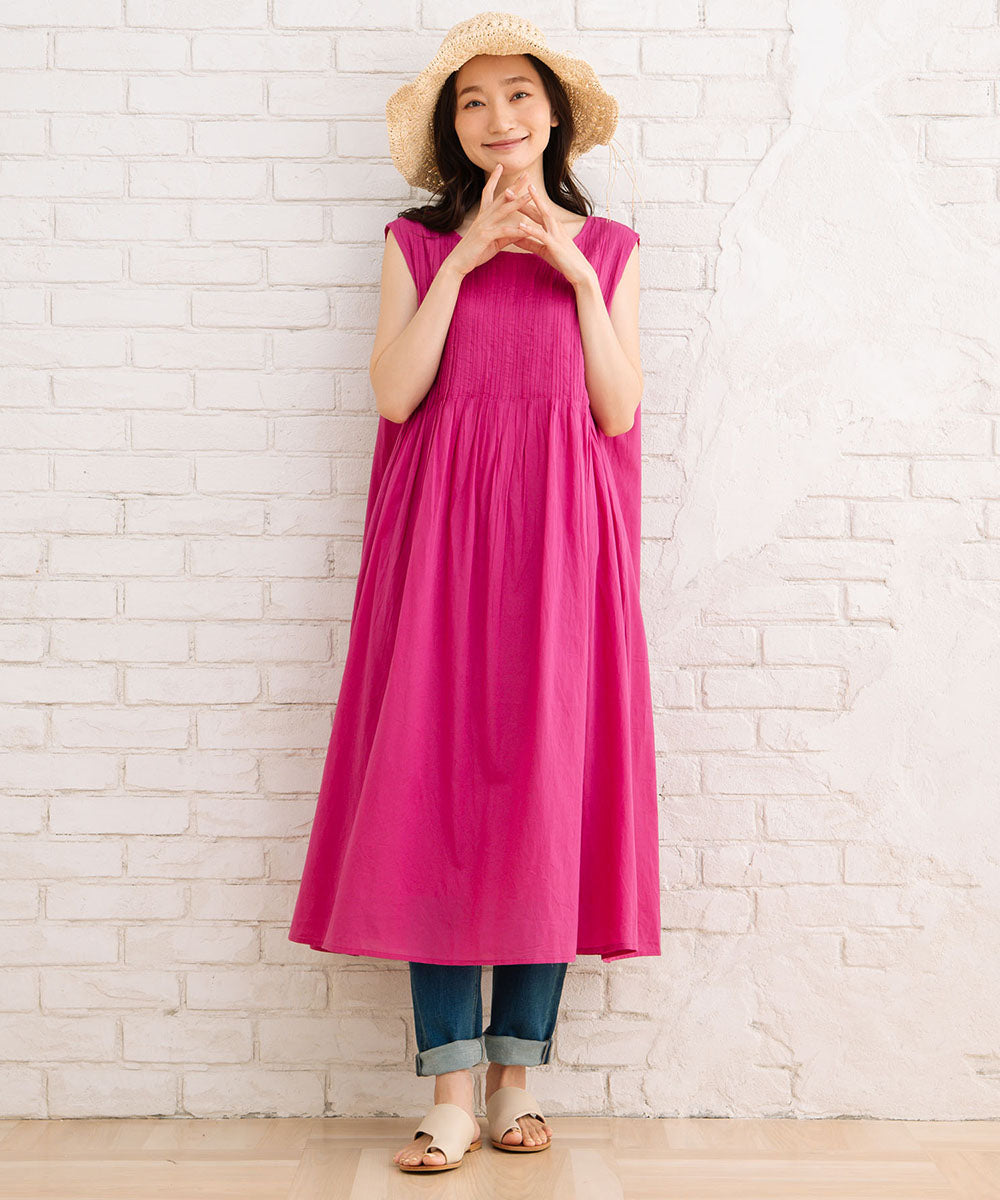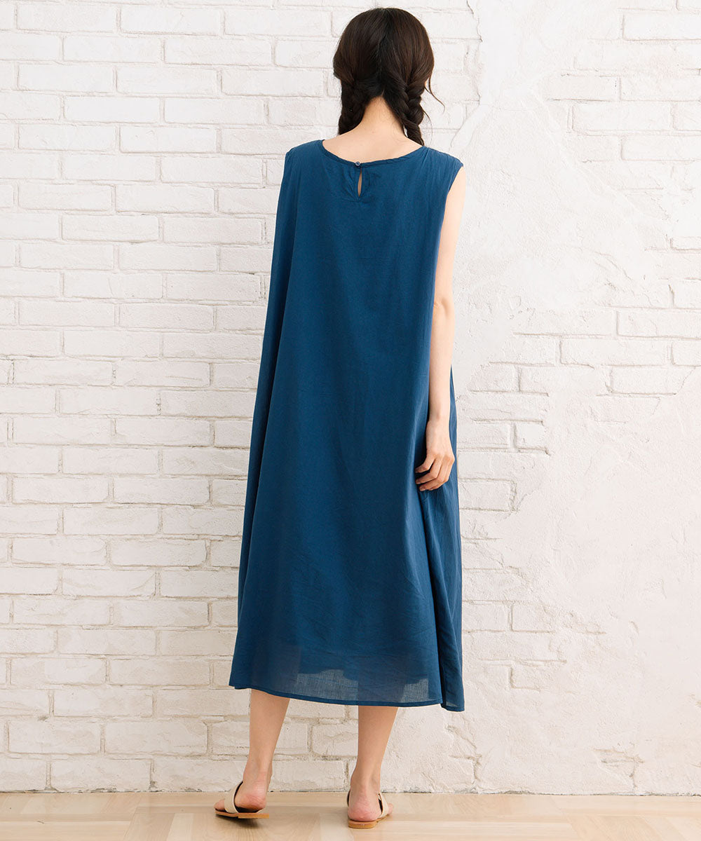 ふわりと優しい肌触りのオーガニックコットン100%仕立てのノースリーブワンピース。