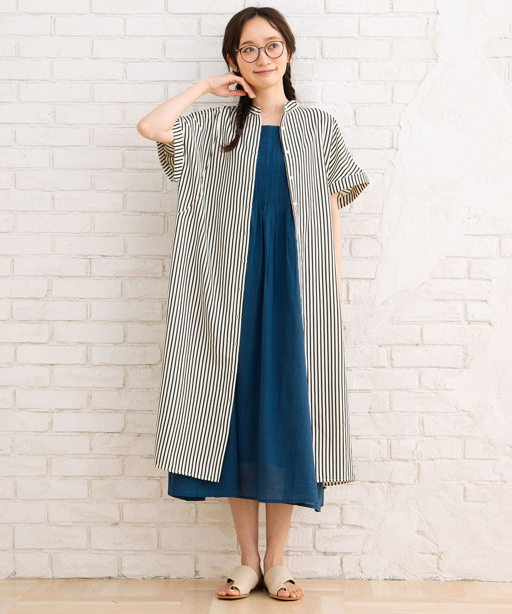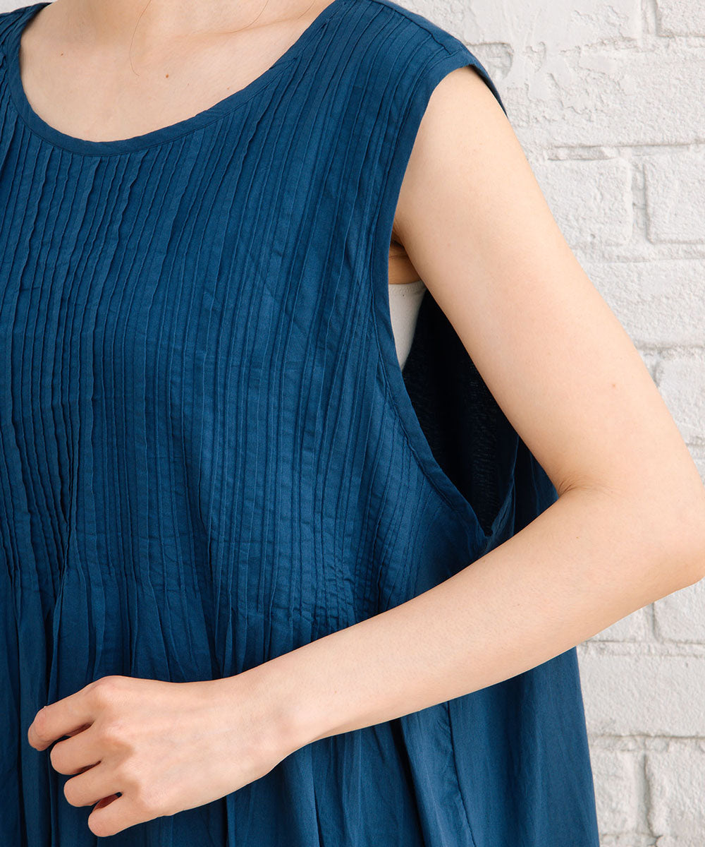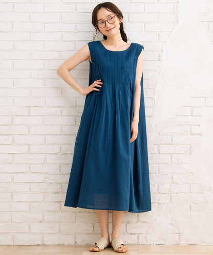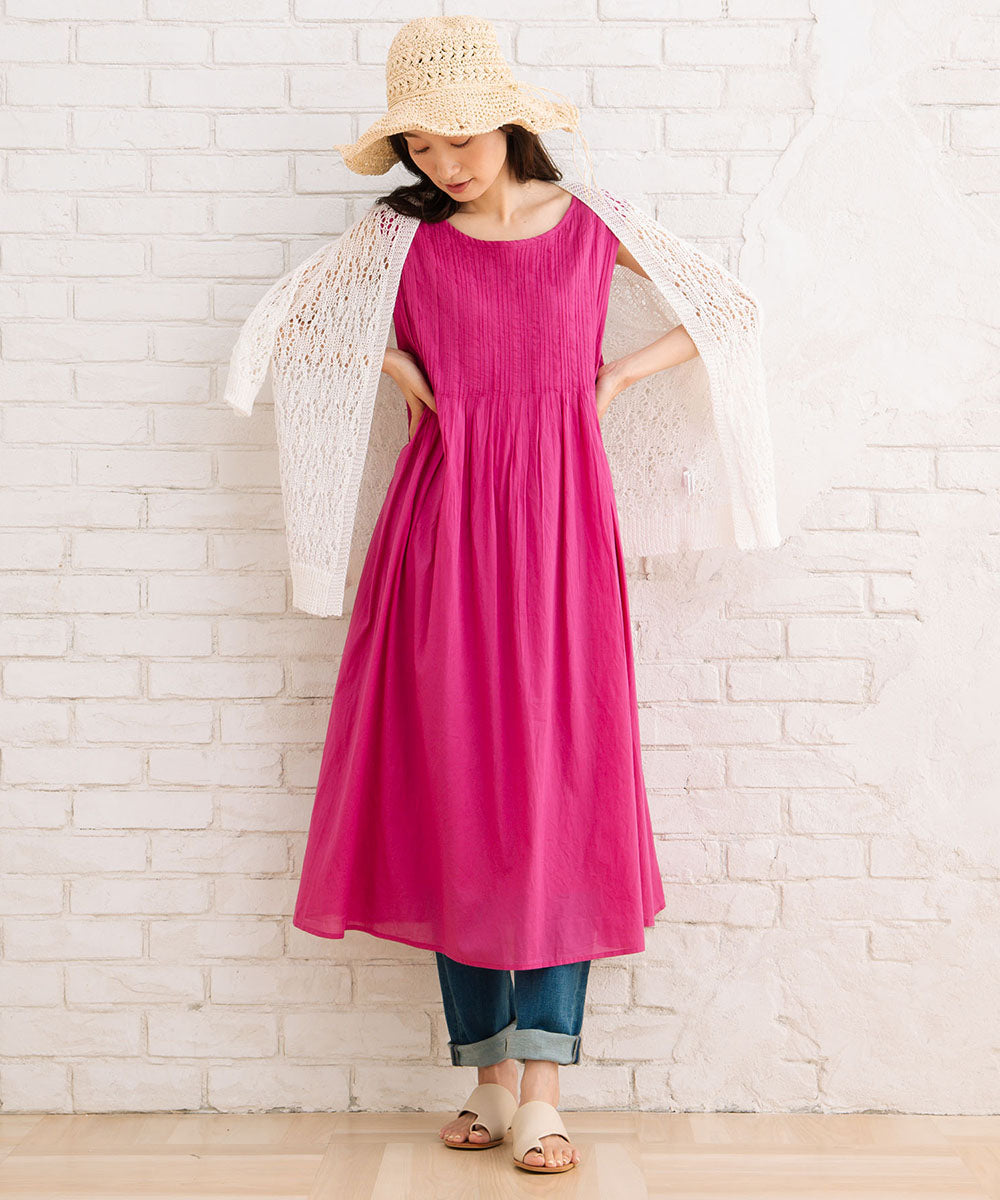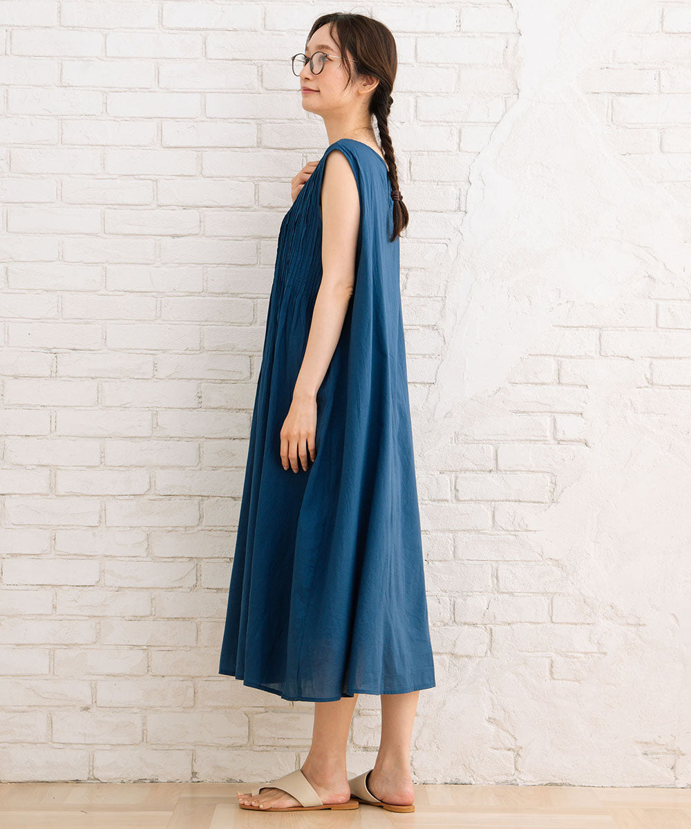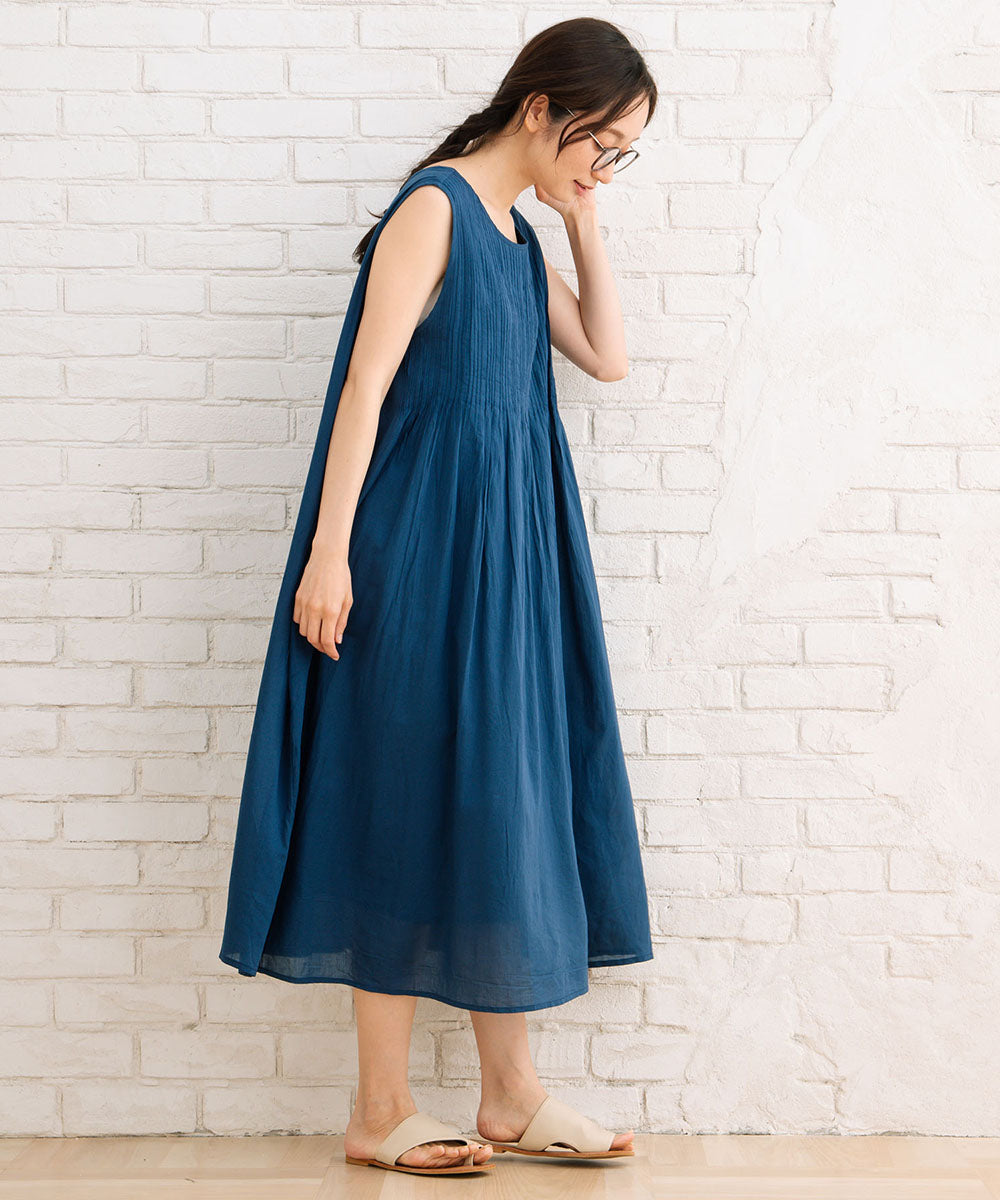 ふわりと優しい肌触りのオーガニックコットン100%仕立てのノースリーブワンピース。