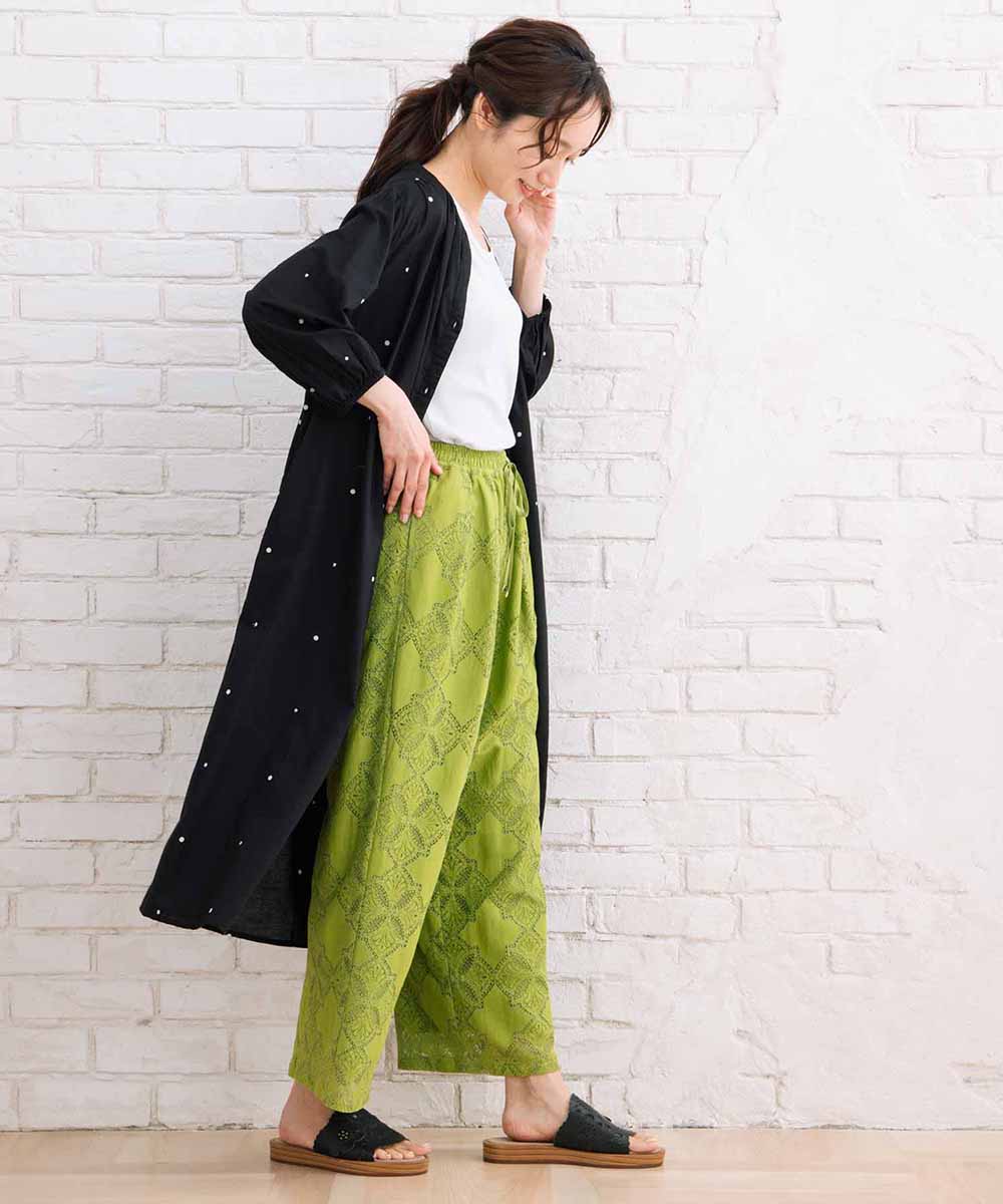 インド綿の風合いと、表情豊かなドット柄が魅力のワンピース。