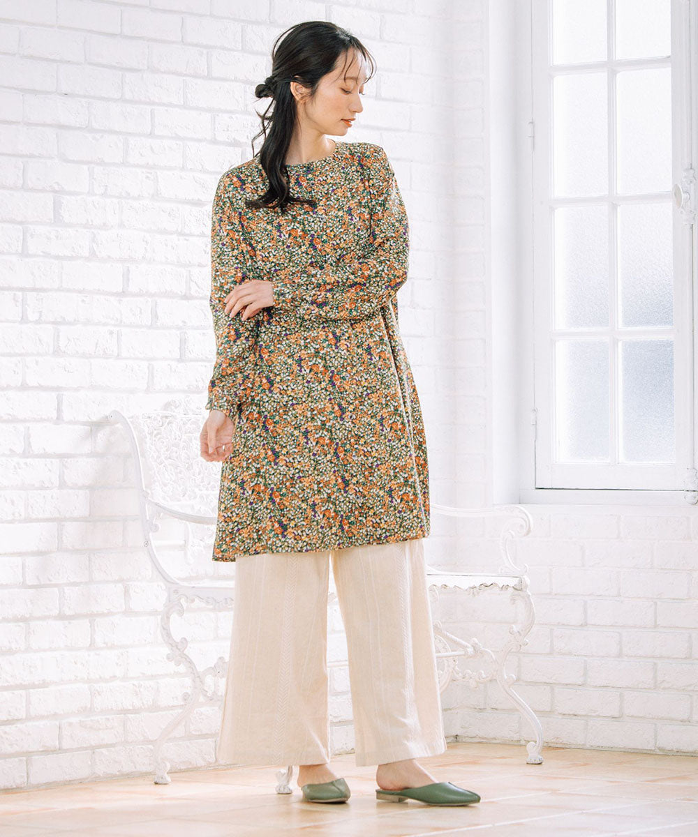 デニムを合わせて定番のカジュアルスタイルに、キレイめなワイドパンツを合わせて、小花柄の可愛らしさときちんと感が絶妙にマッチしたオンスタイルに。