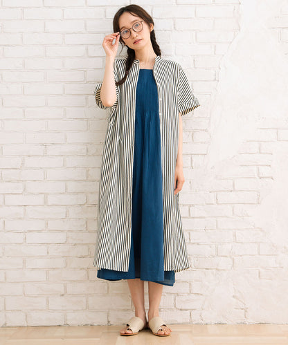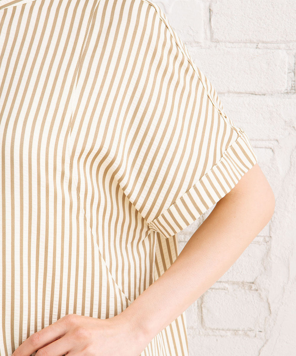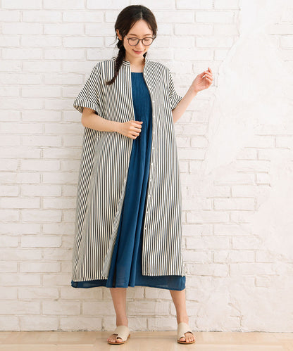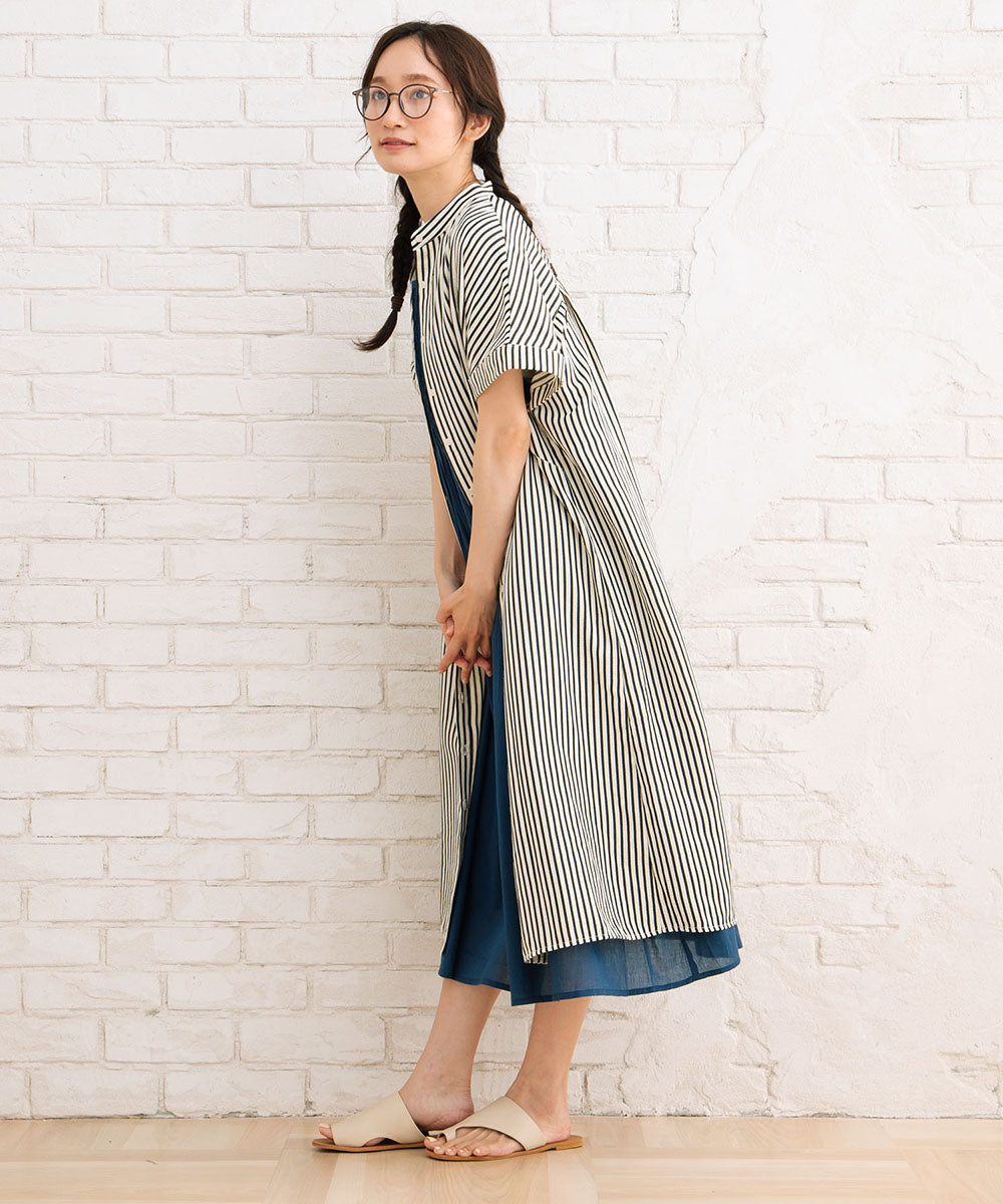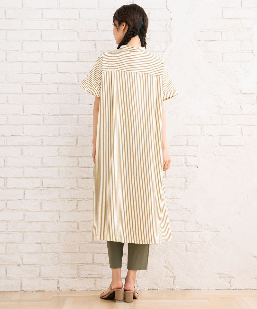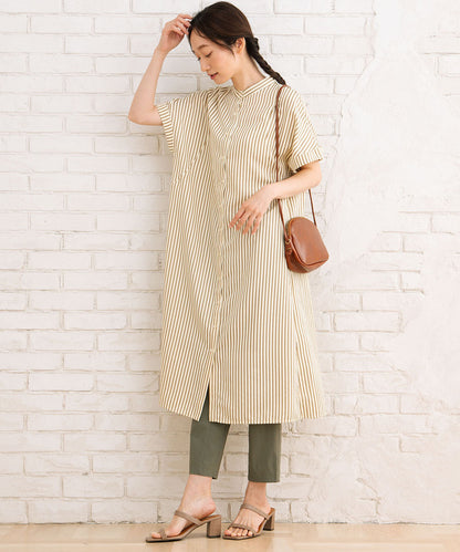 さらっと快適なドビー織りのストライプサッカーワンピース。