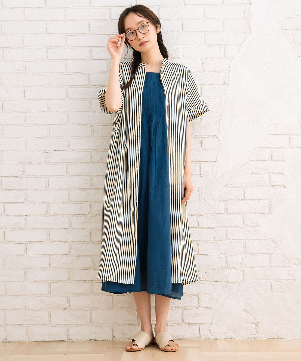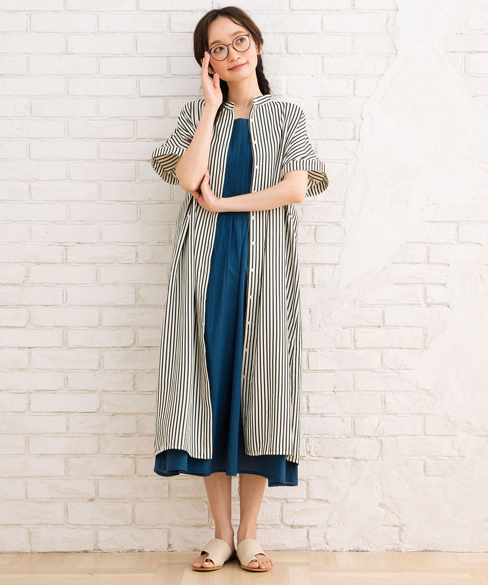一枚でワンピースとして着るのはもちろん、ボタンを開けて羽織ればカーディガン感覚でも活躍。