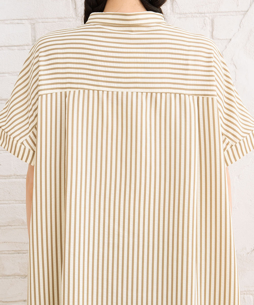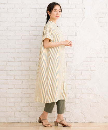 さらっと快適なドビー織りのストライプサッカーワンピース。
