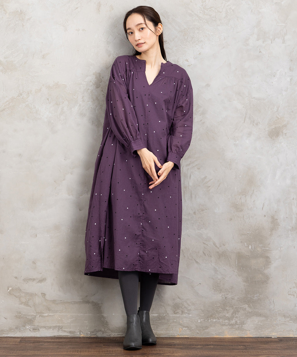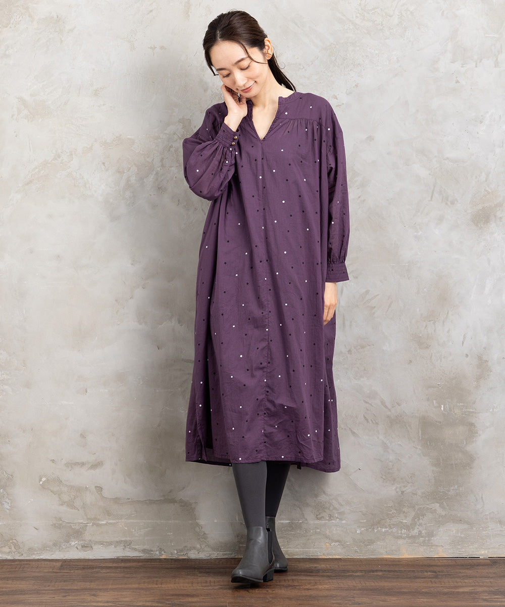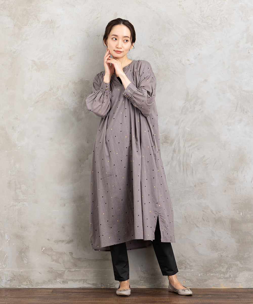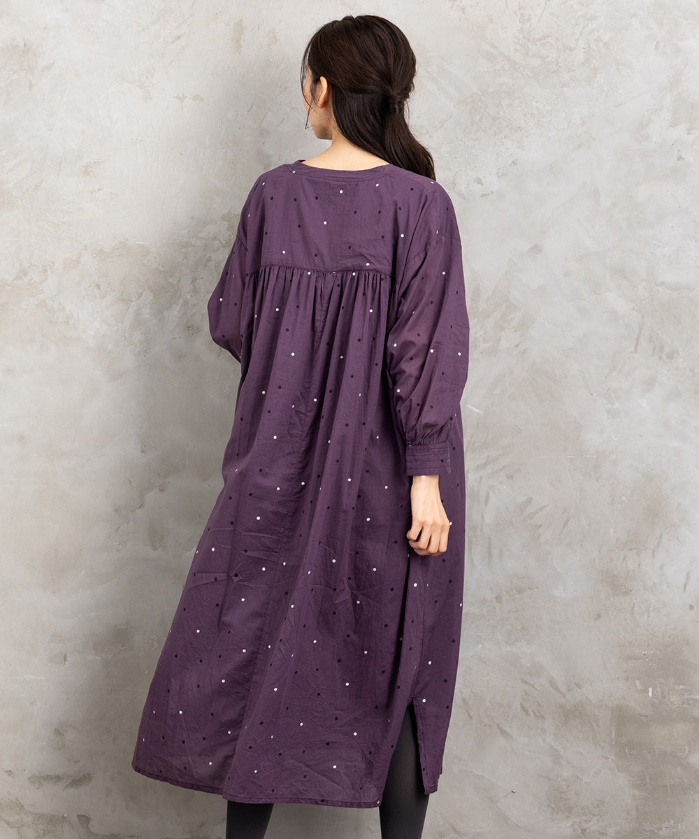 ドット柄を散りばめた優しい印象のコットンワンピース。