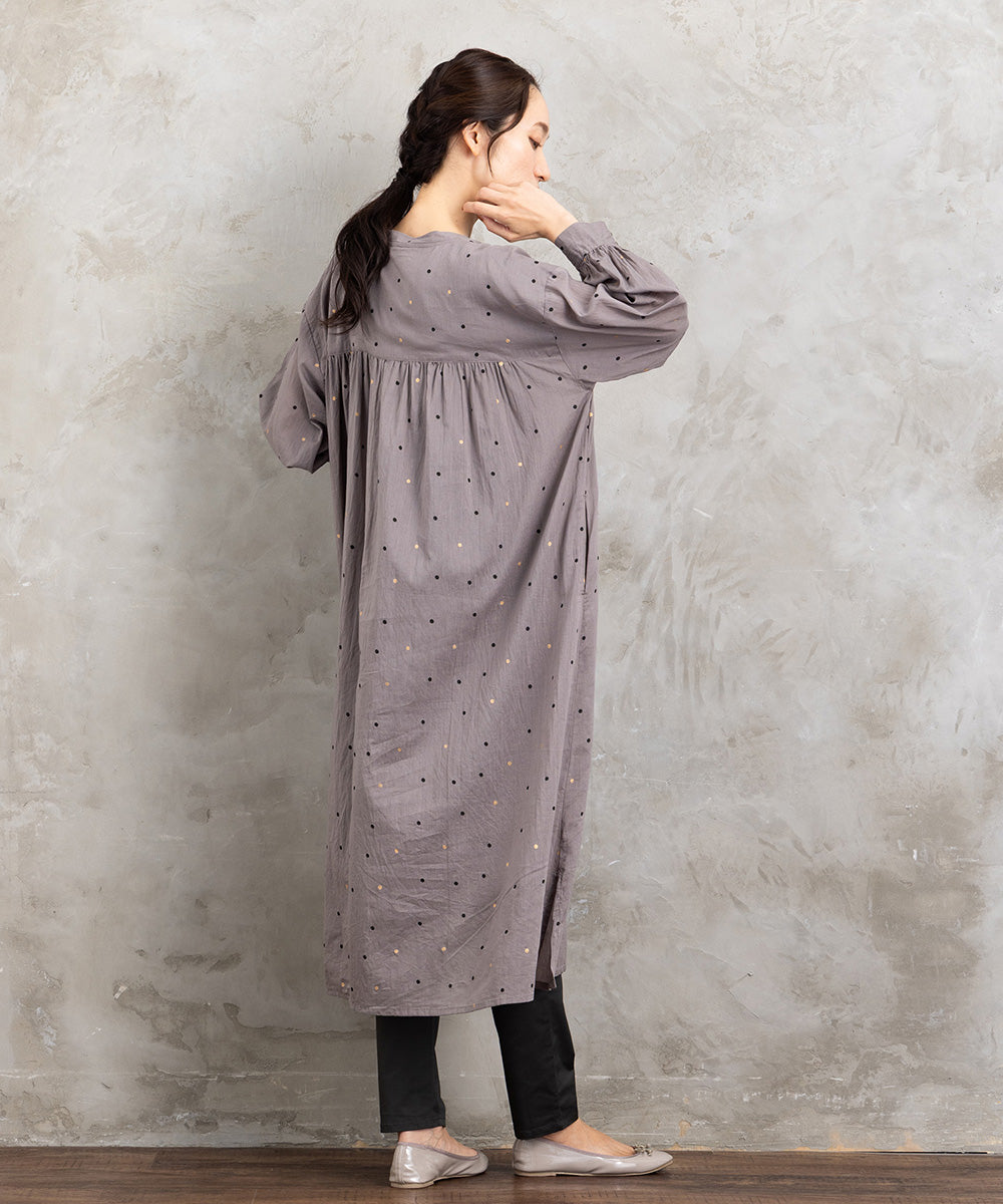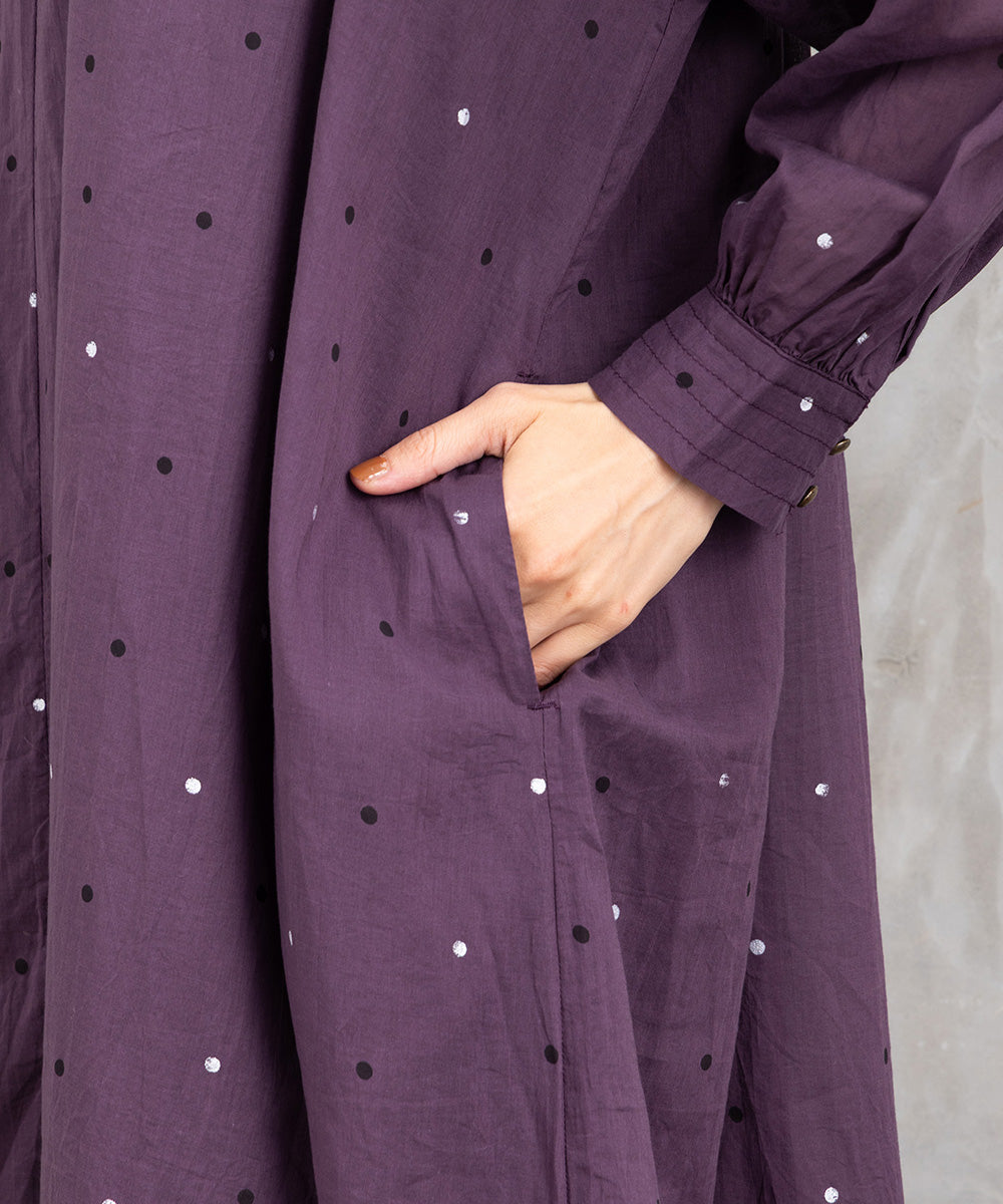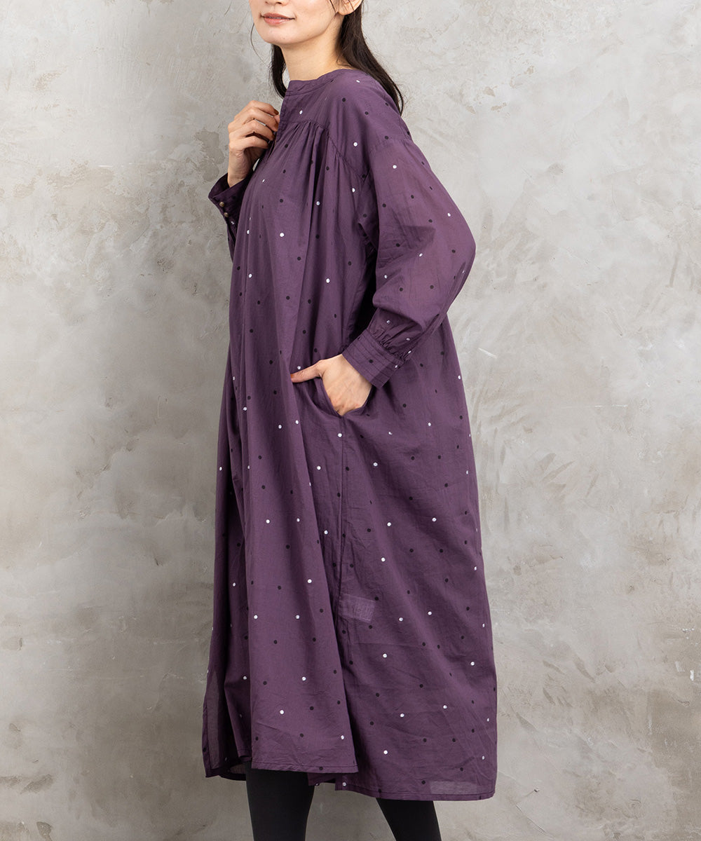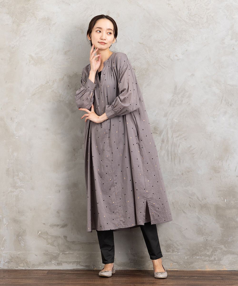 ドット柄を散りばめた優しい印象のコットンワンピース。