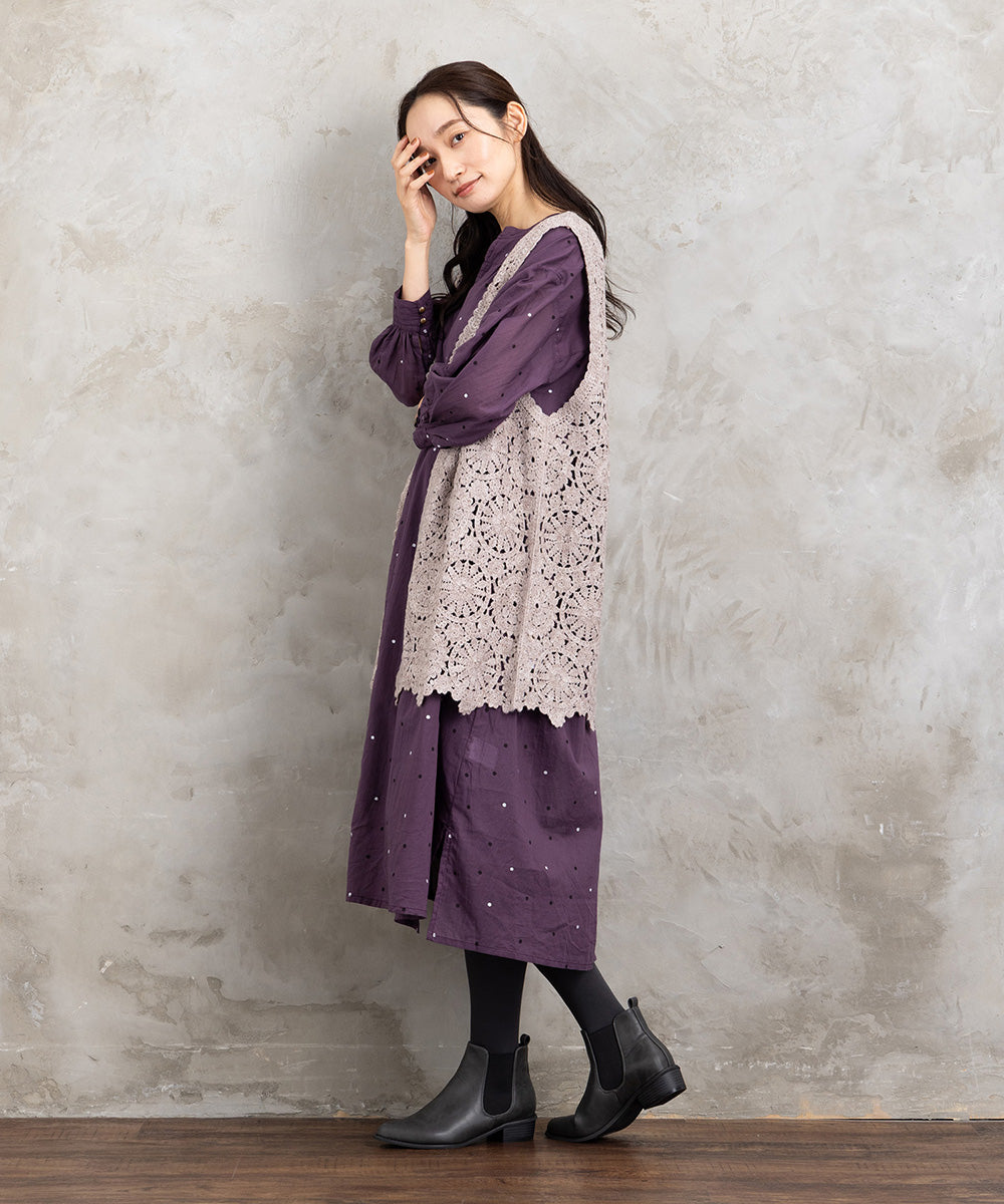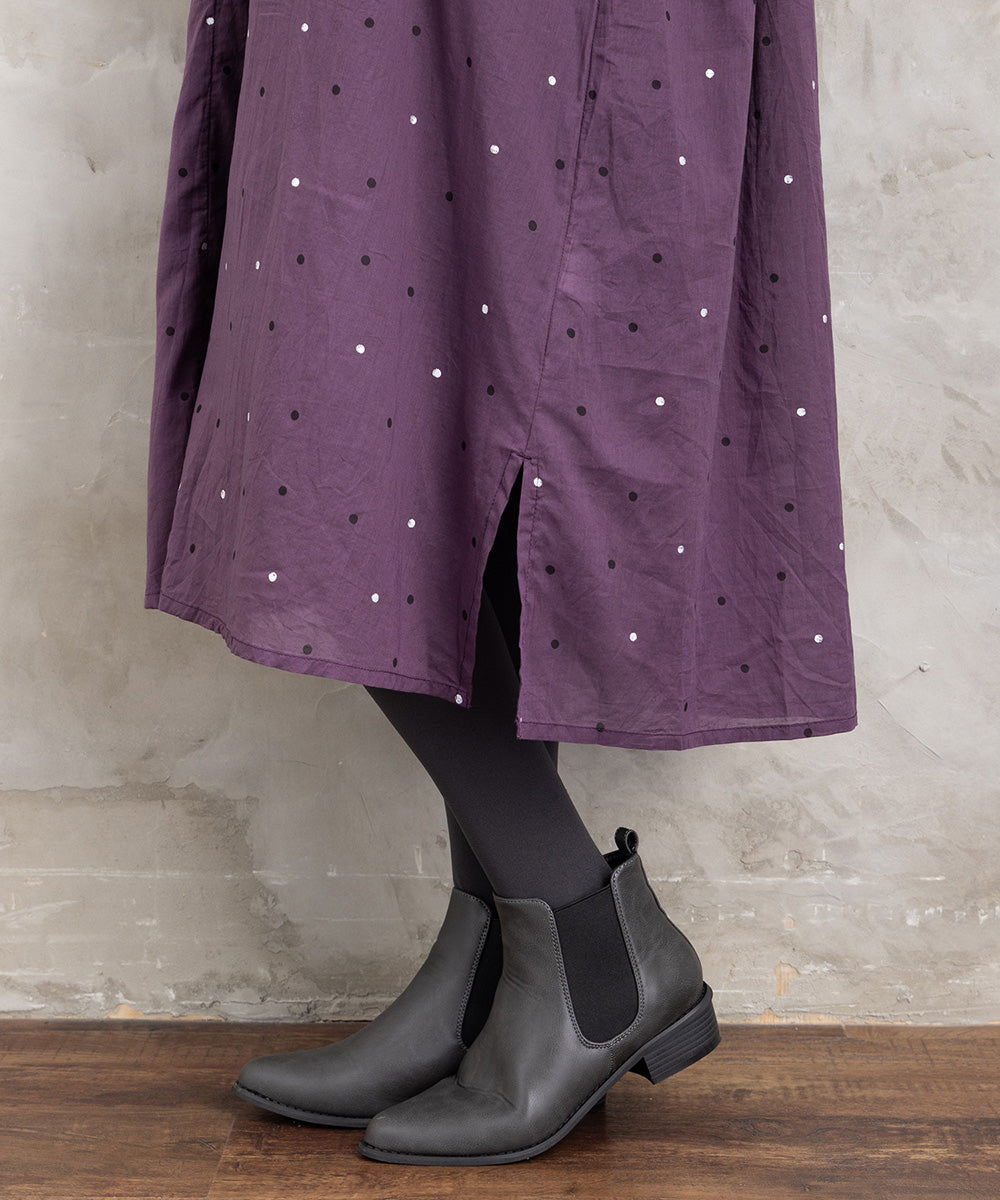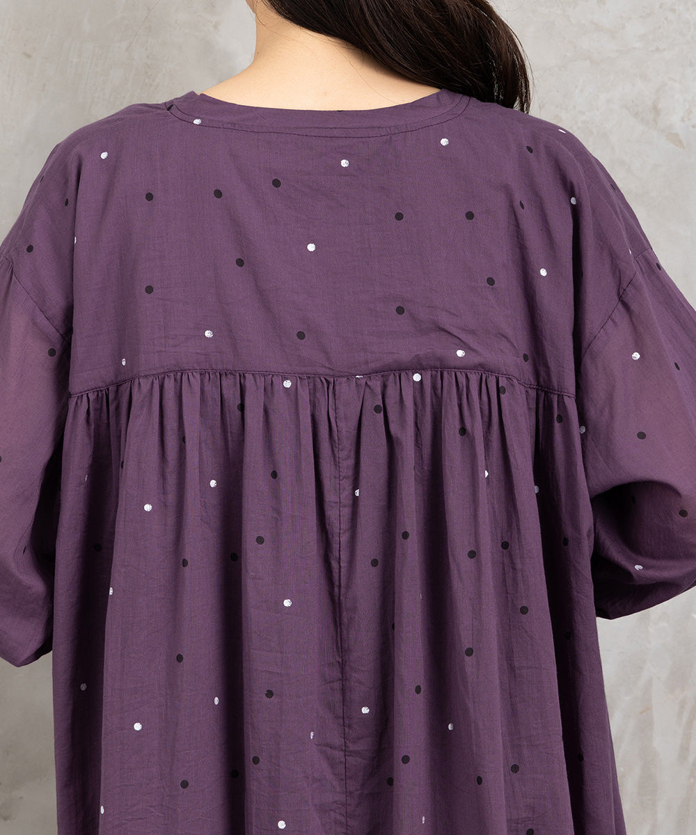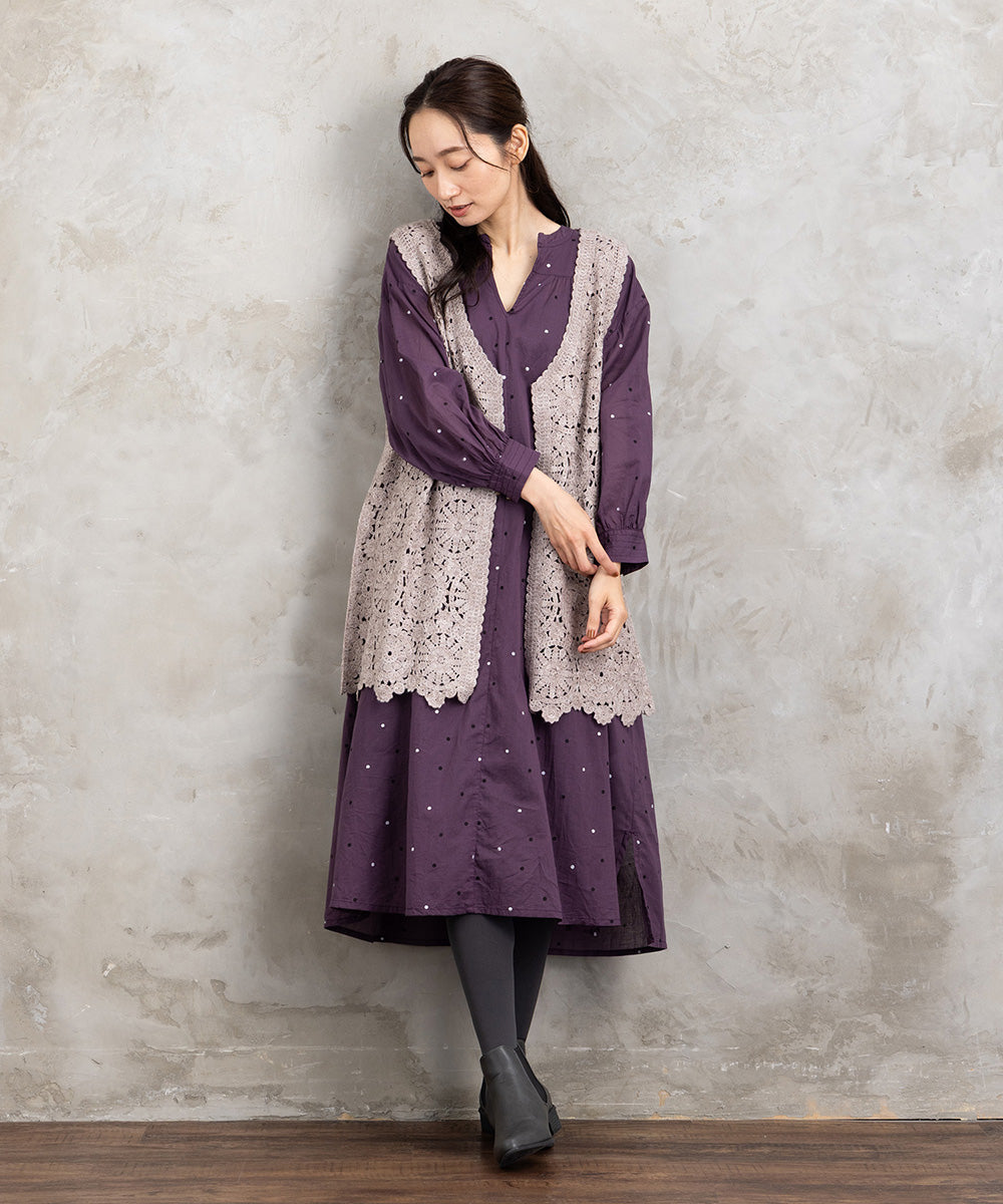 ドット柄を散りばめた優しい印象のコットンワンピース。