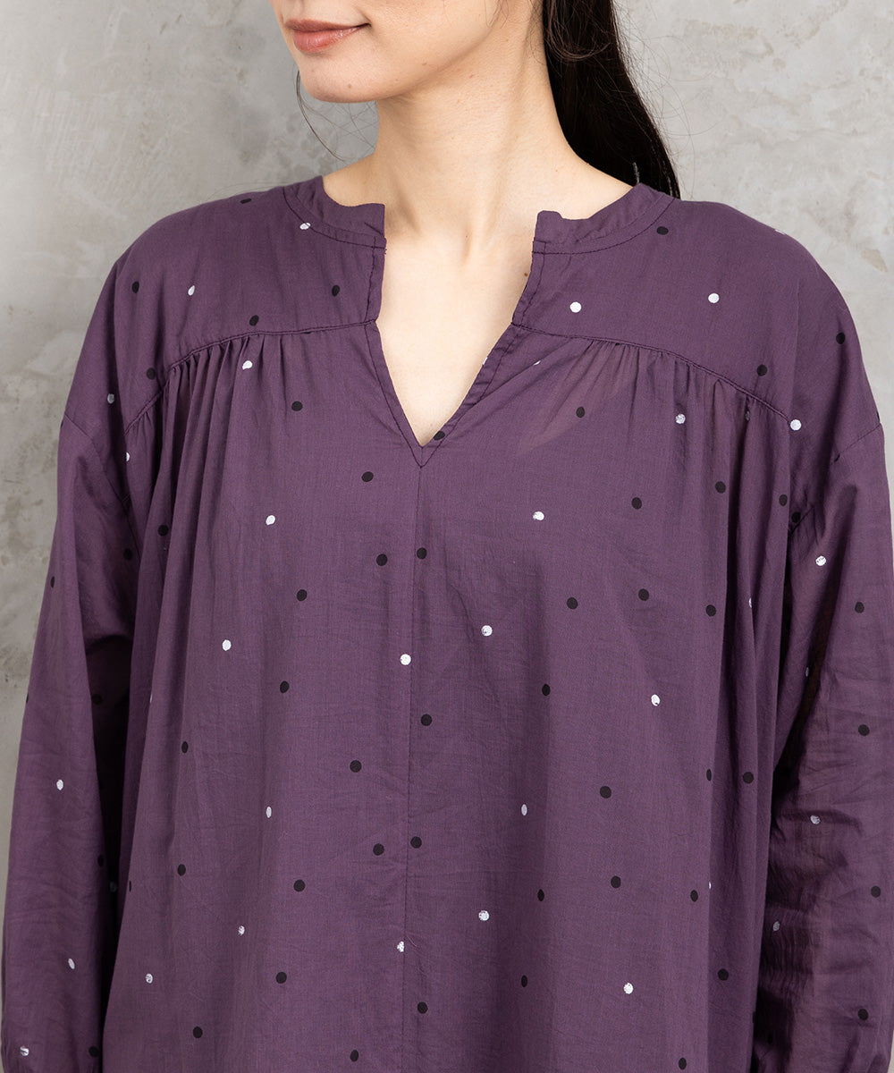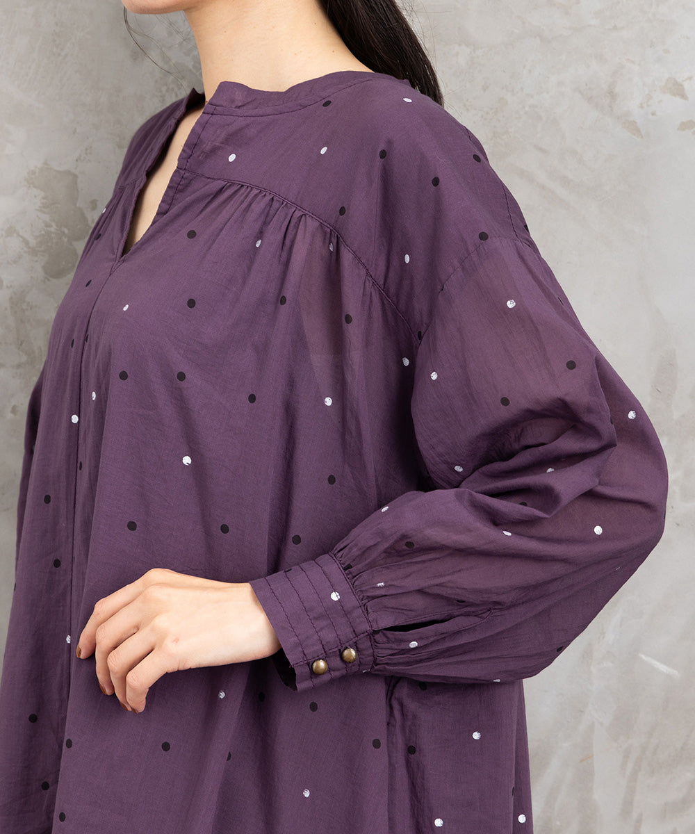 ・デザインポイント:さりげないドット柄、キーネックデザイン
