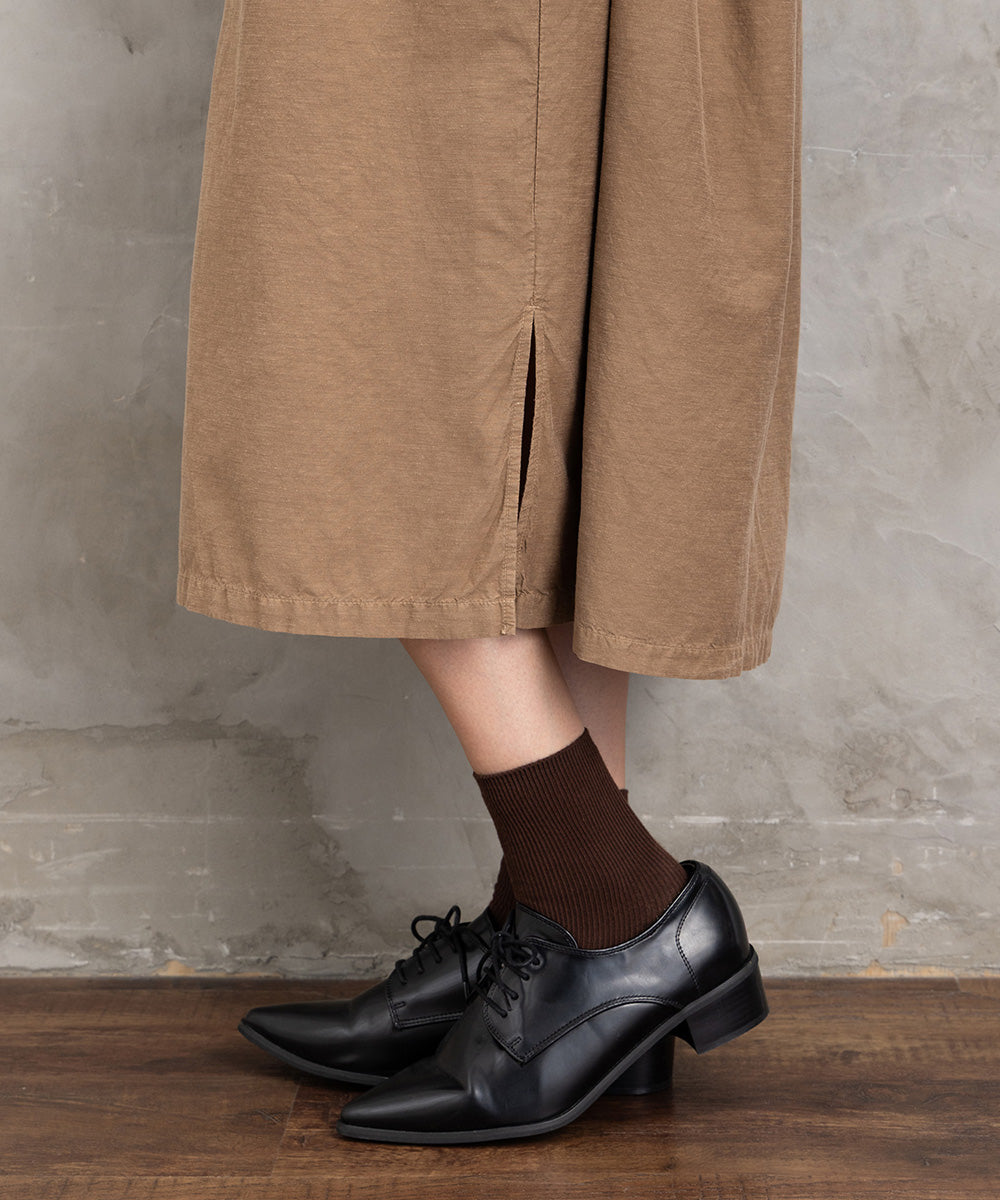 上品な光沢と落ち感のある生地が、歩くたびに揺れ感を生み、ナチュラルな女性らしさを演出。