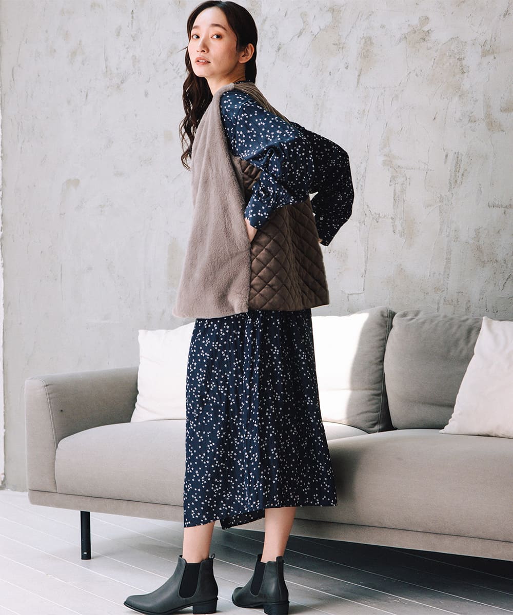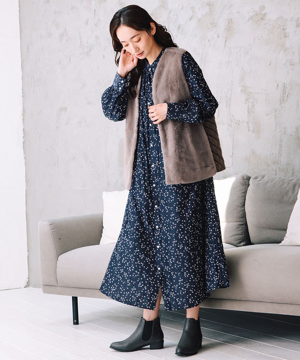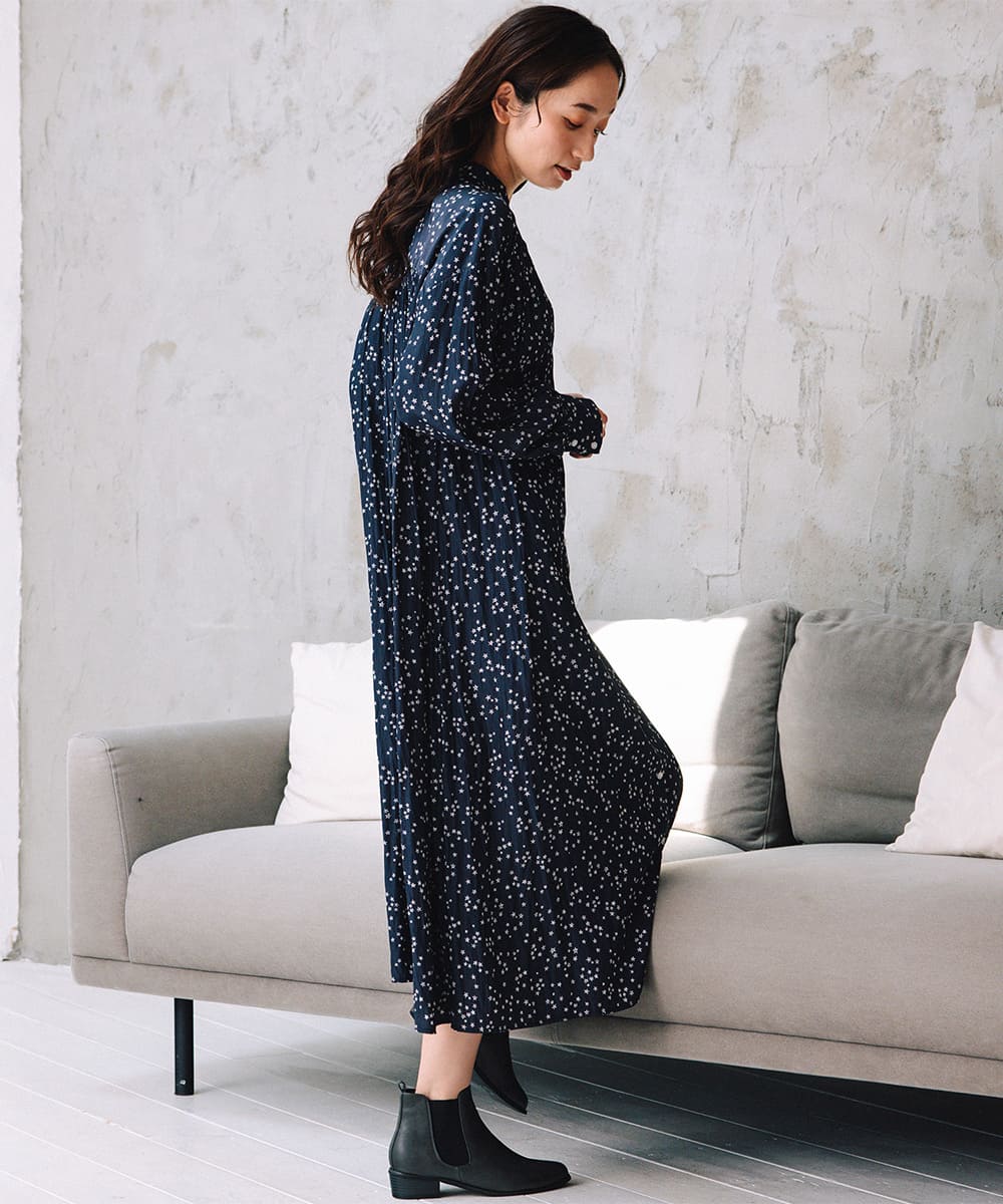 【細やかなスター柄が大人の可愛さを引き立てるプリントワンピース】