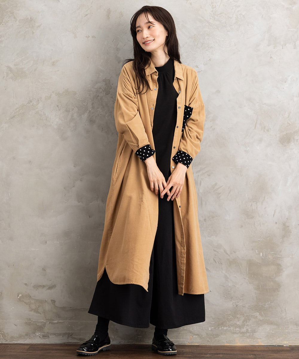 あたたかみのあるコーデュロイ素材に、ドット柄ポケットと袖裏がアクセント。