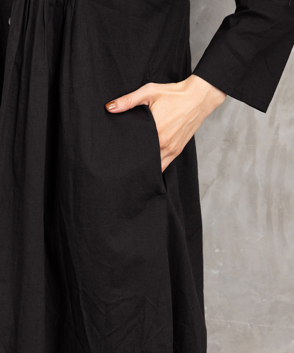 #ブラックワンピース #前開きワンピース #ピンタックデザイン #大人の華やぎスタイル #体型カバー #sabstreetコーデ #30代ファッション #秋の装い