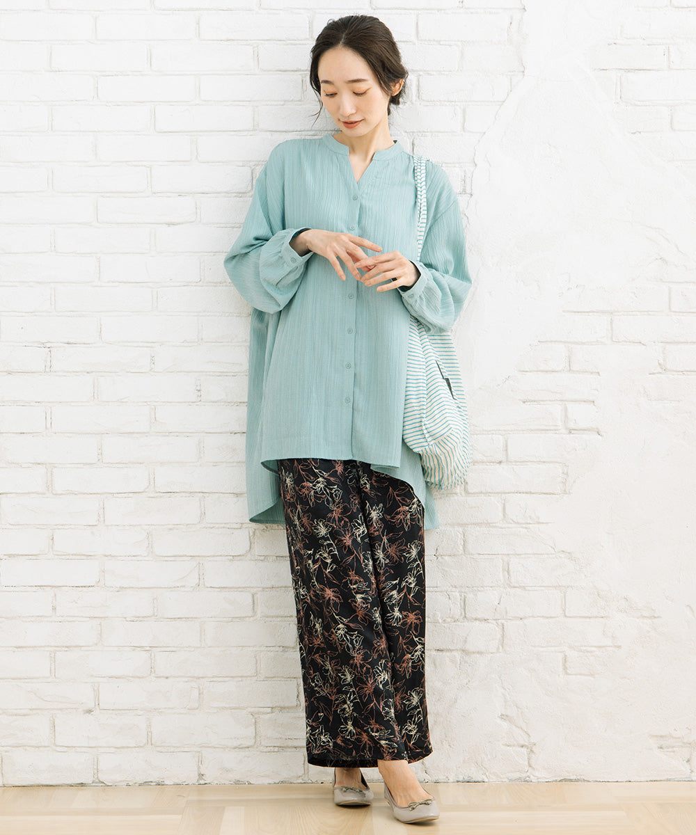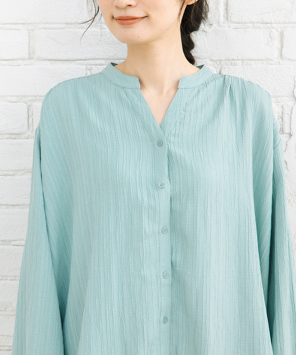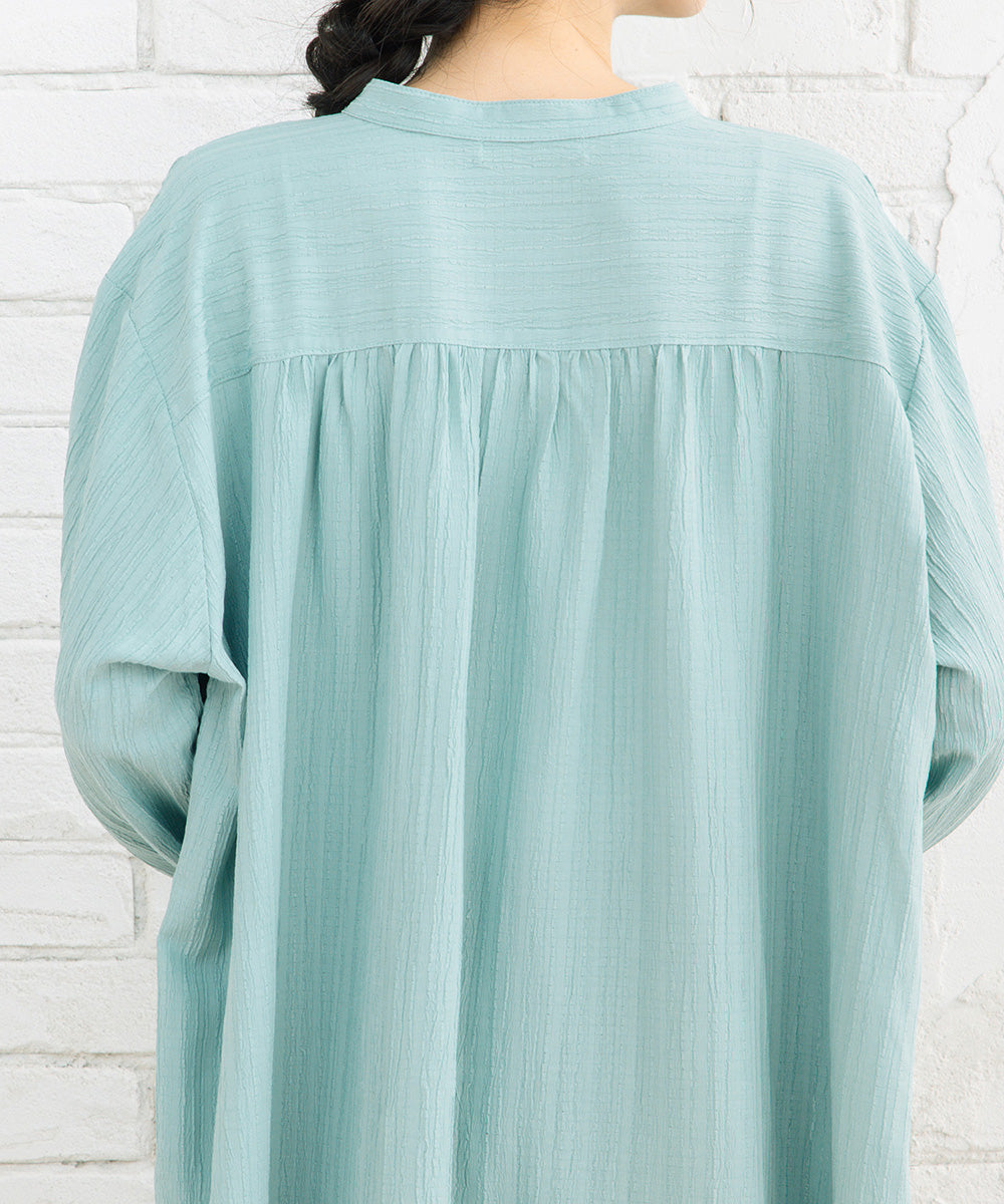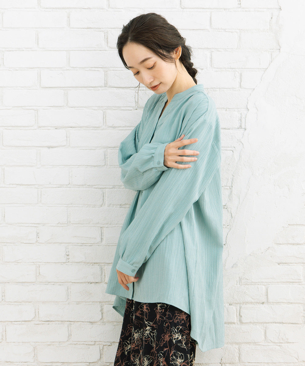 【風をまとう、涼やかな楊柳ジャカードシャツチュニック】