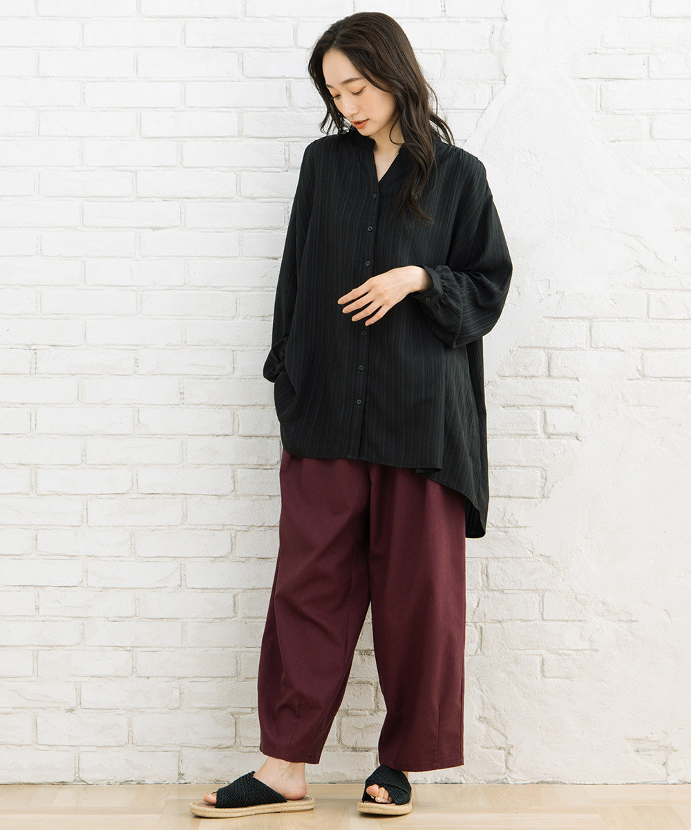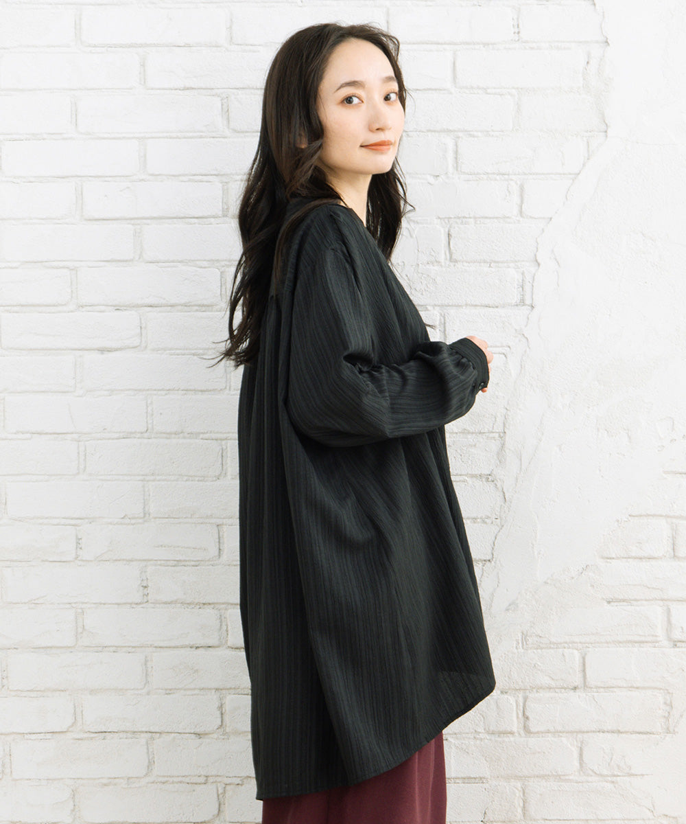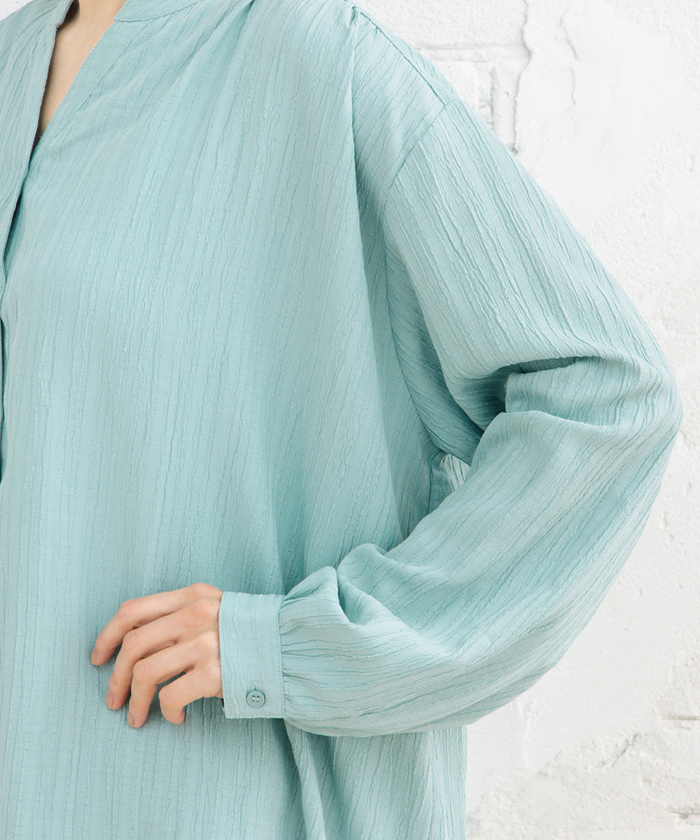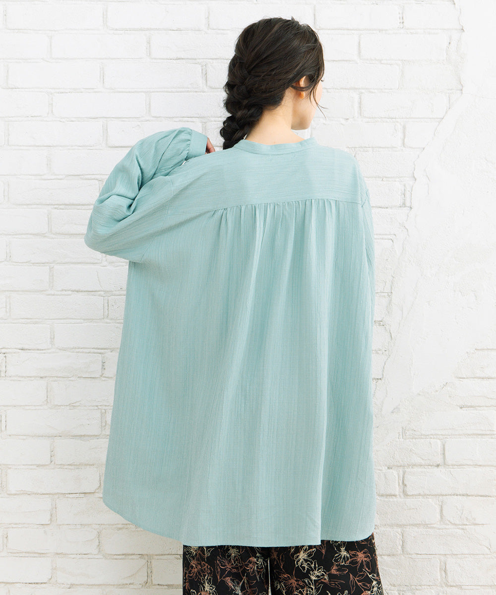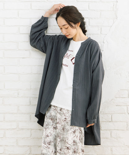 【風をまとう、涼やかな楊柳ジャカードシャツチュニック】