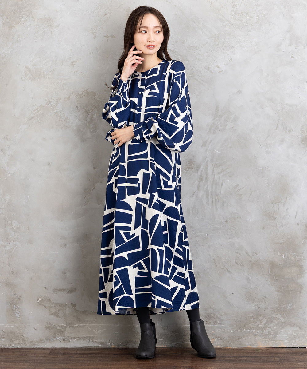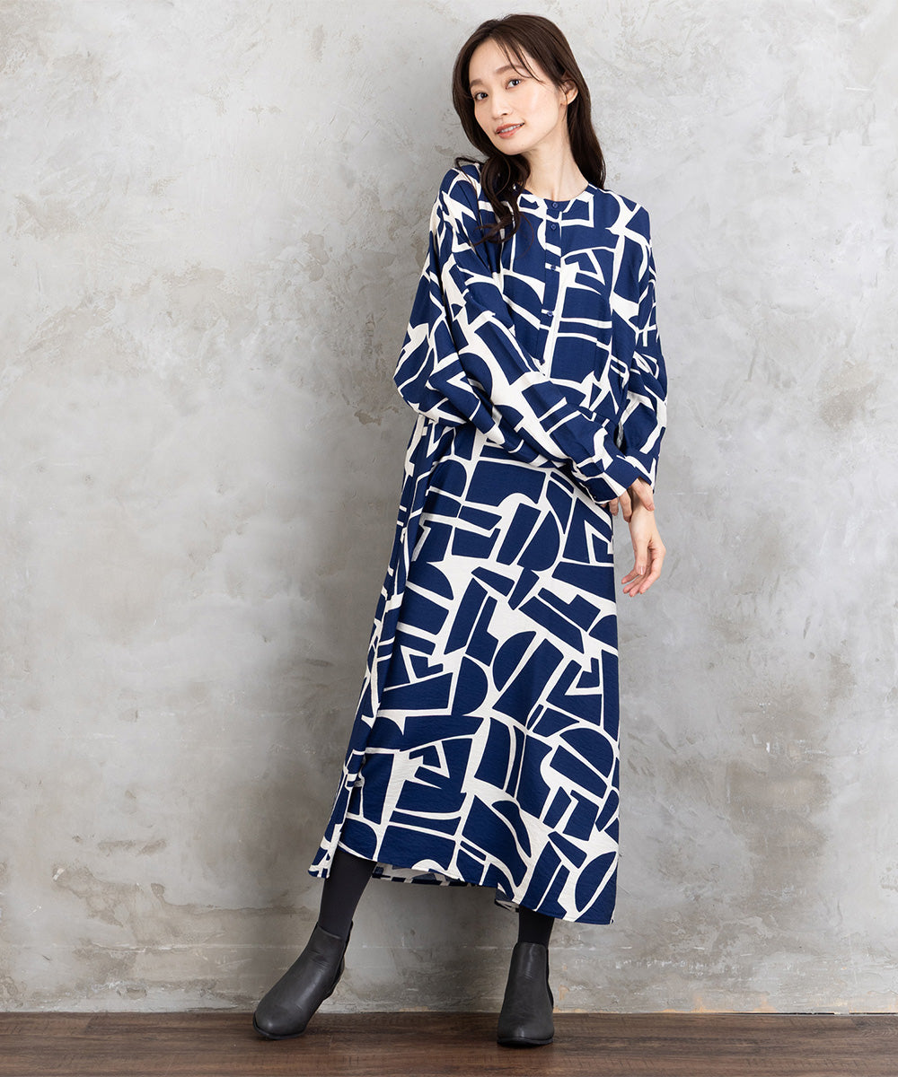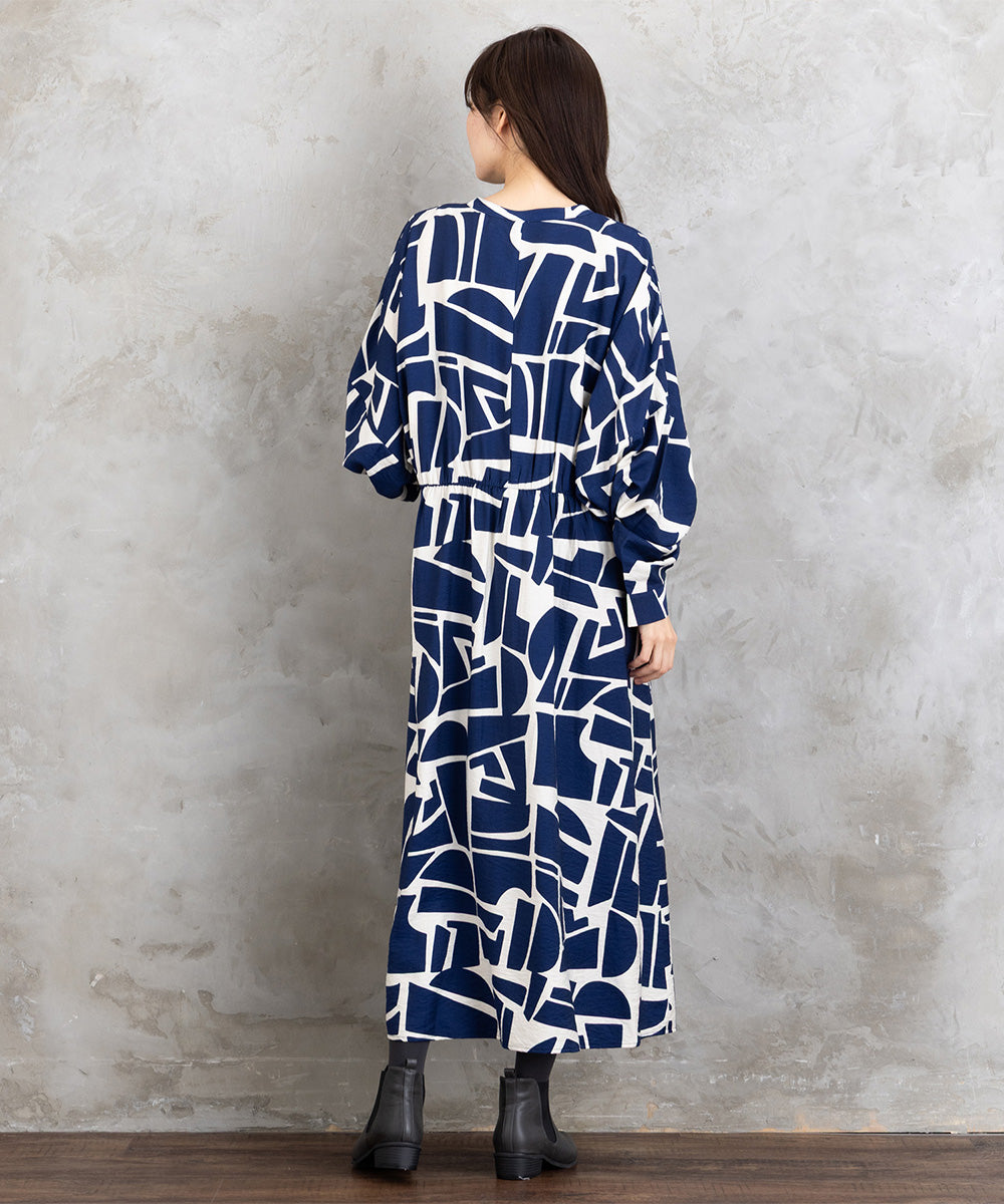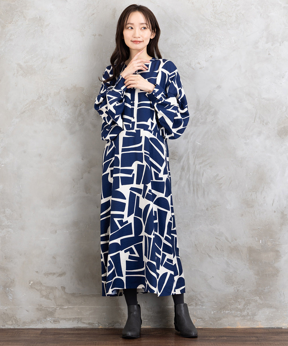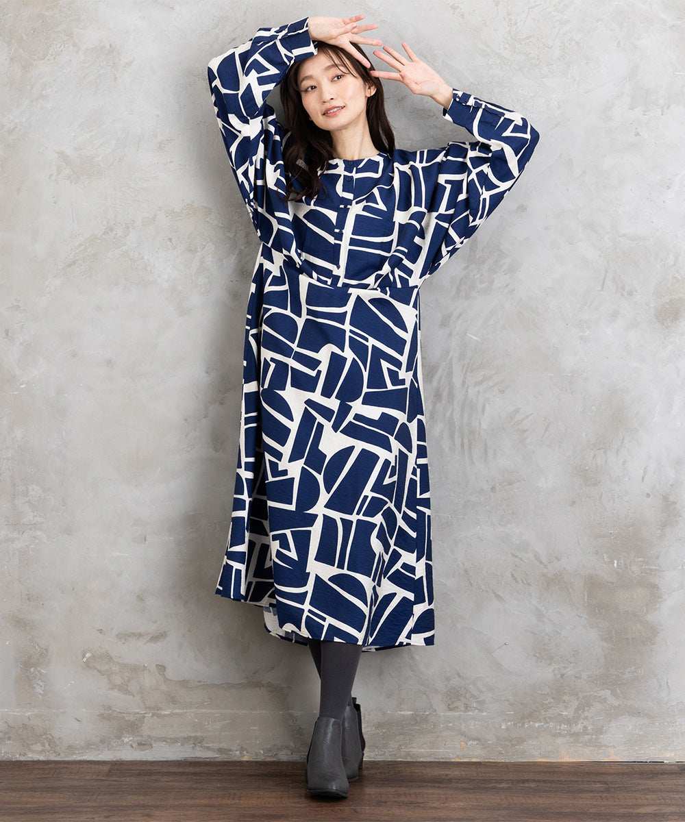 【印象的な柄で魅せる、ジオメトリックプリントワンピース】
