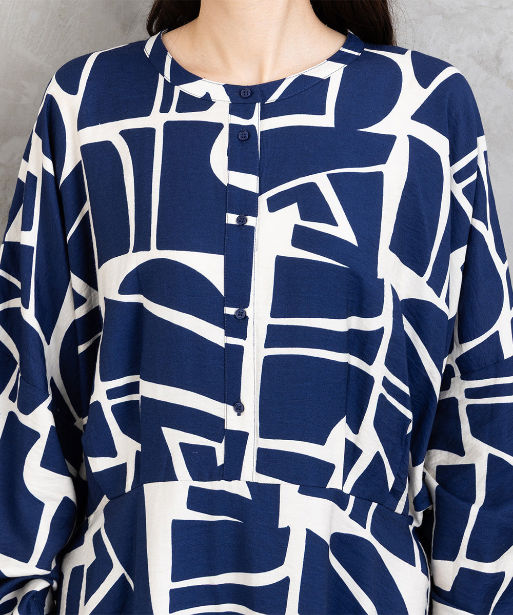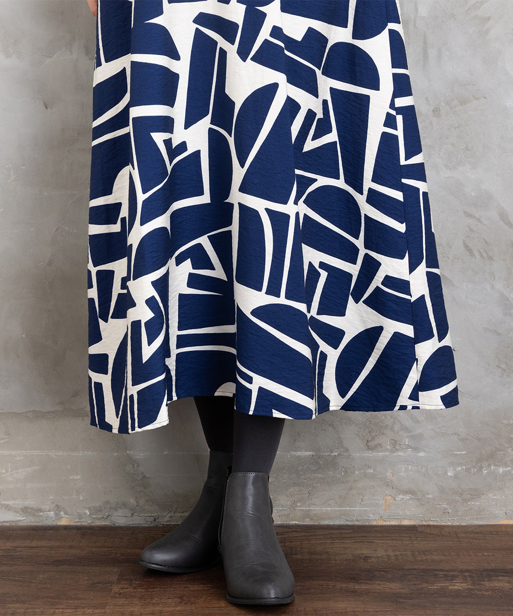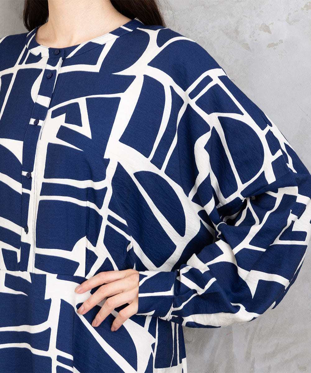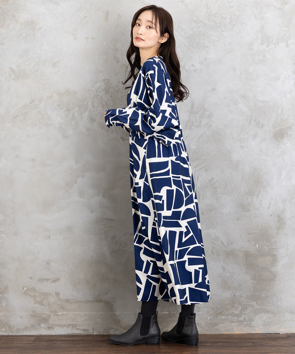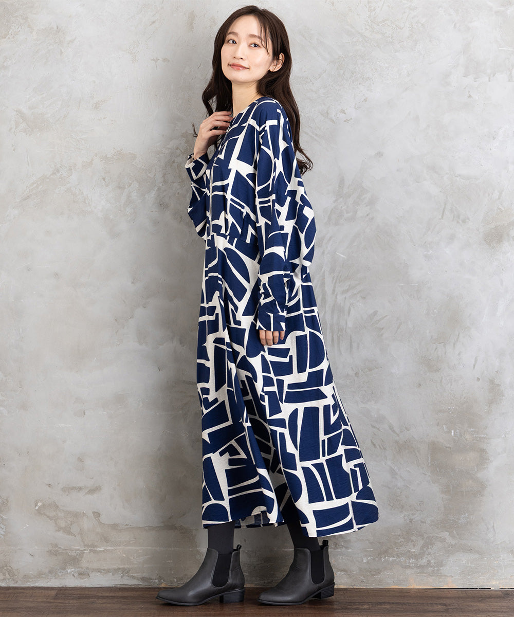 【印象的な柄で魅せる、ジオメトリックプリントワンピース】