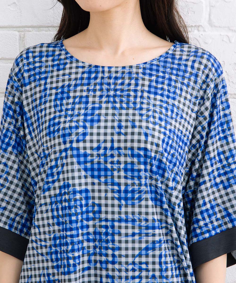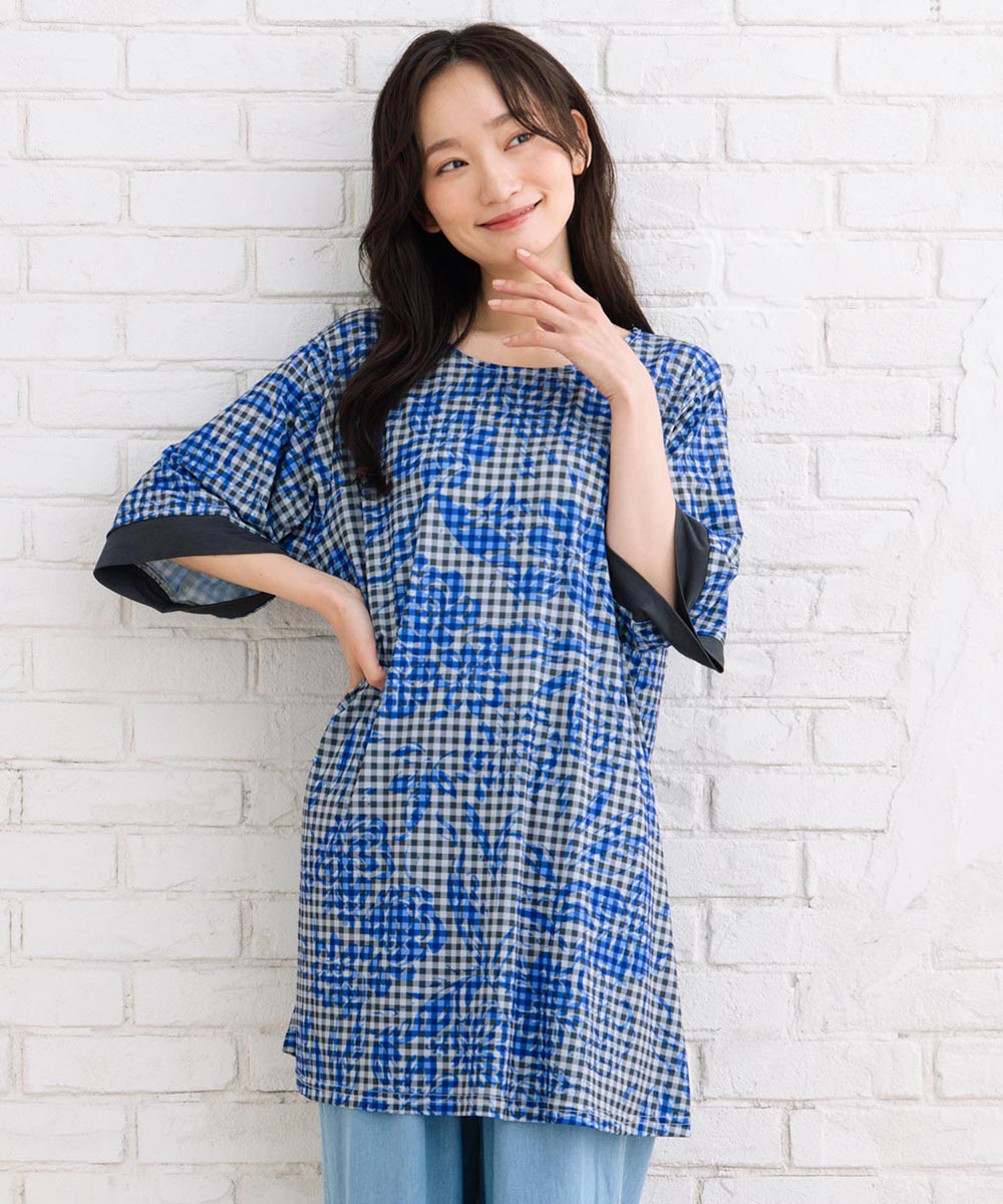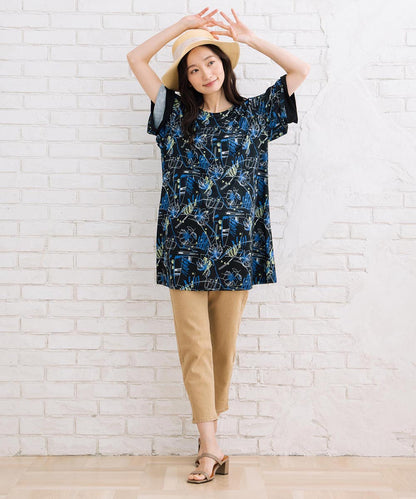 エスパンディ素材ならではの、とろみ感と着心地の良さが魅力のフラワープリントチュニック。