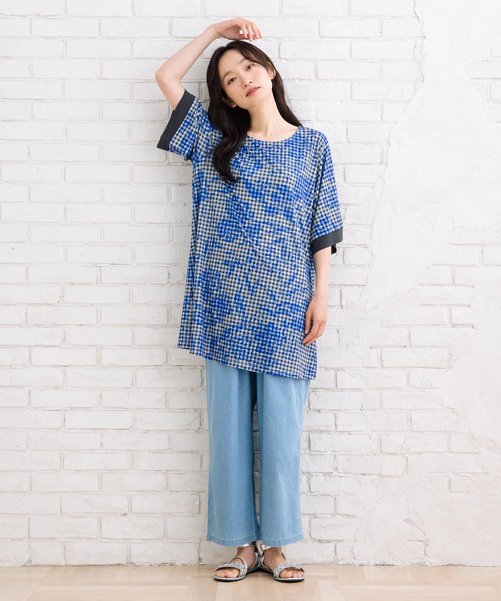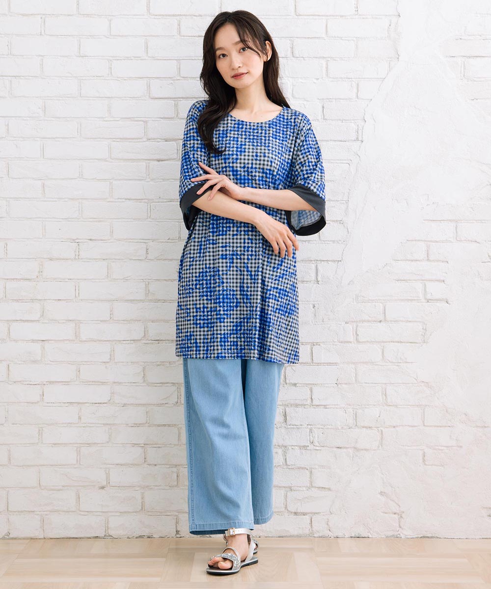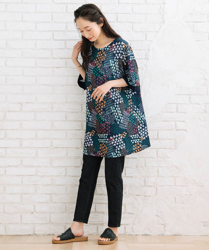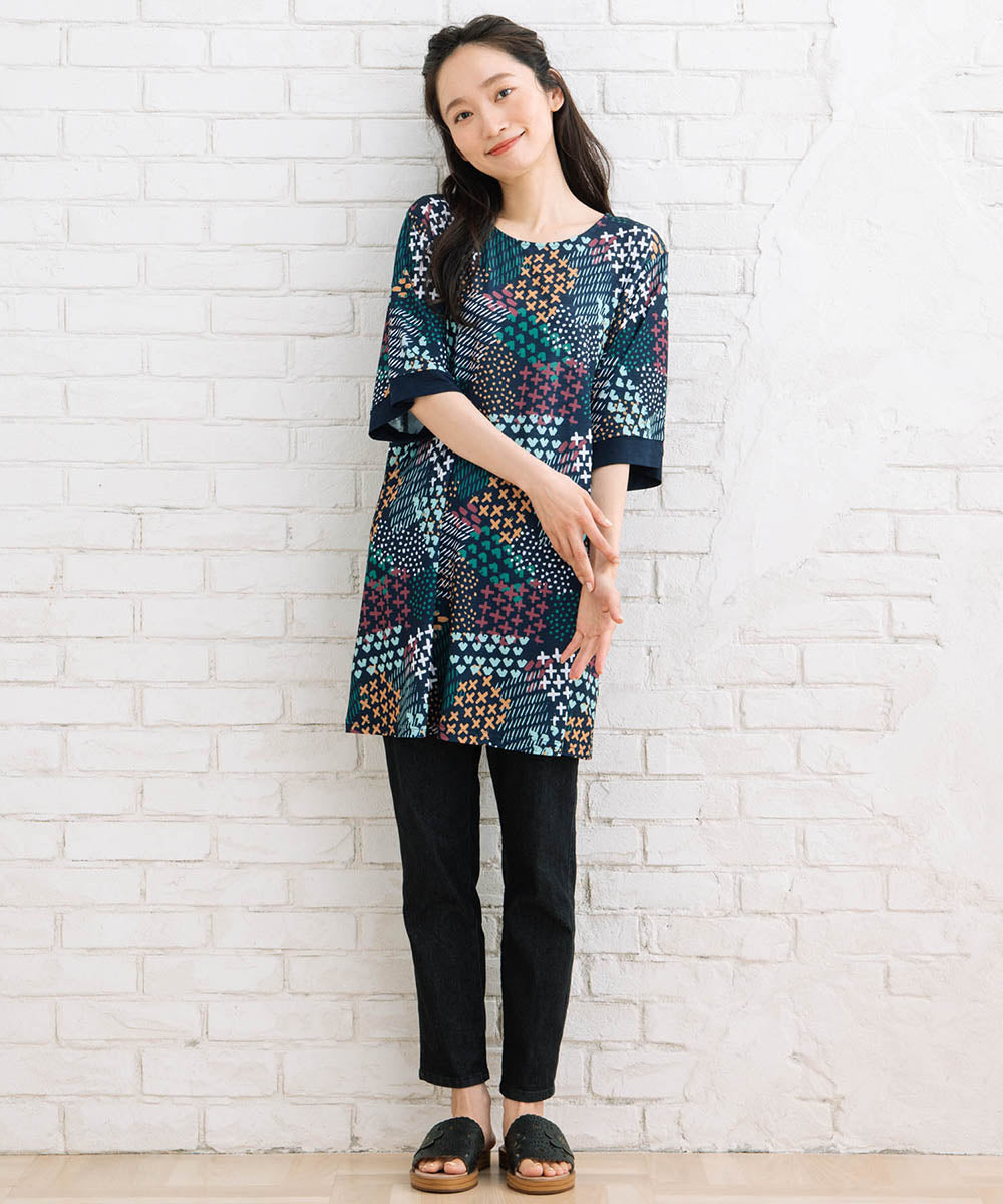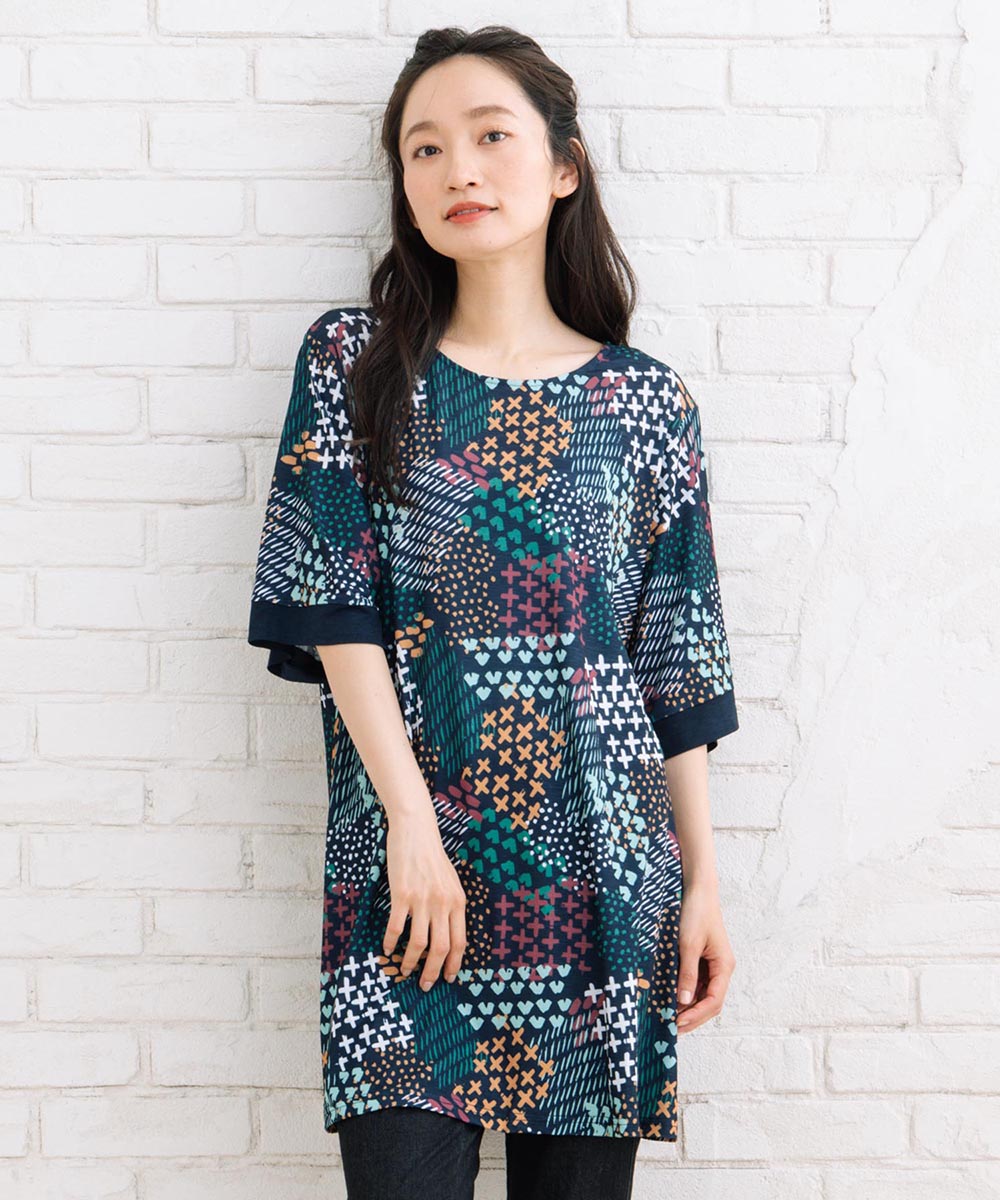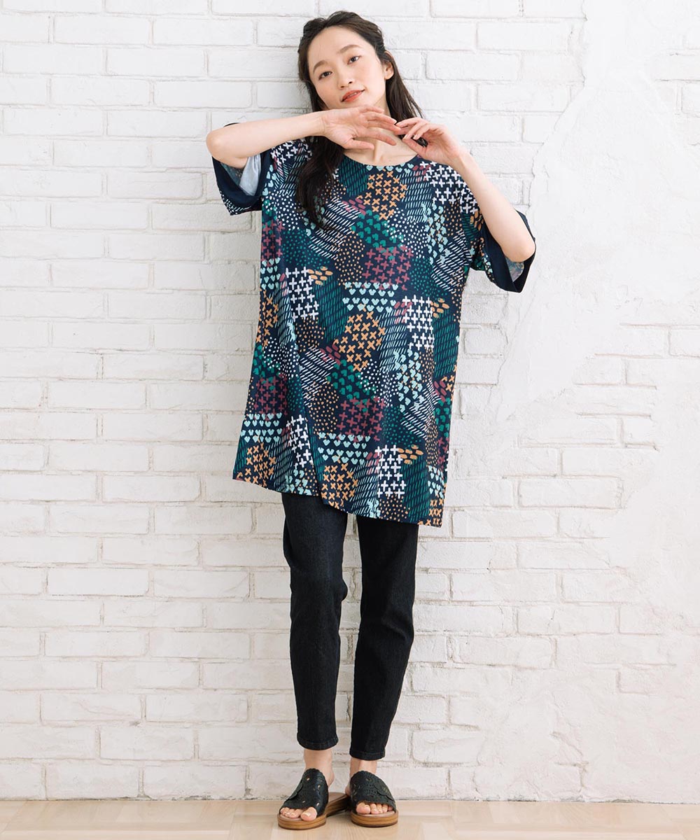 | 寸法 | 9号(M)/着丈:84,バスト:112,肩幅:42,裾幅:66,袖丈:30cm 15号(3L)/着丈:87,バスト:128,肩幅:46,裾幅:74,袖丈:30cm |