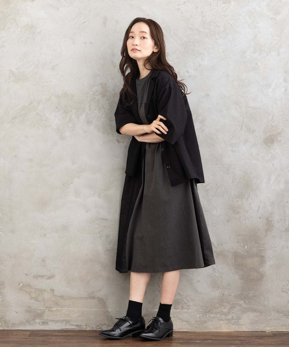 #異素材ワンピース #バイカラーワンピース #大人カジュアル #ゆったりコーデ #ワンマイルウェア #sabstreet