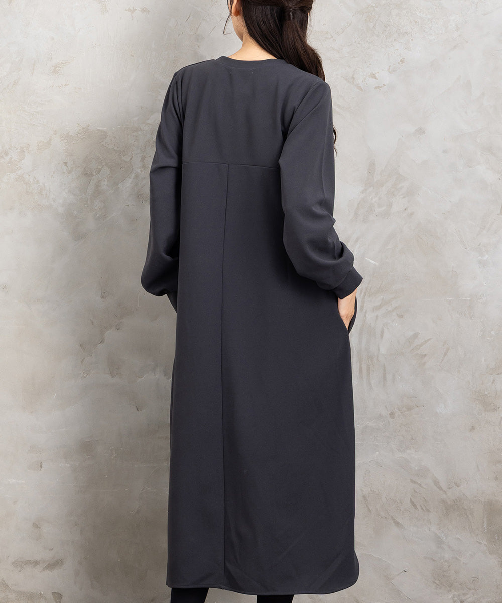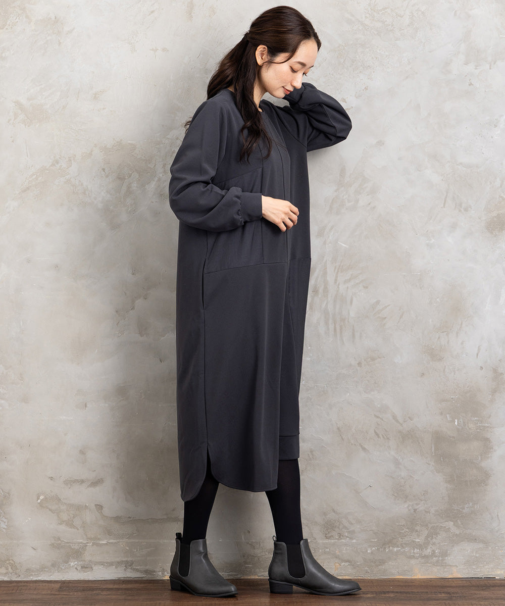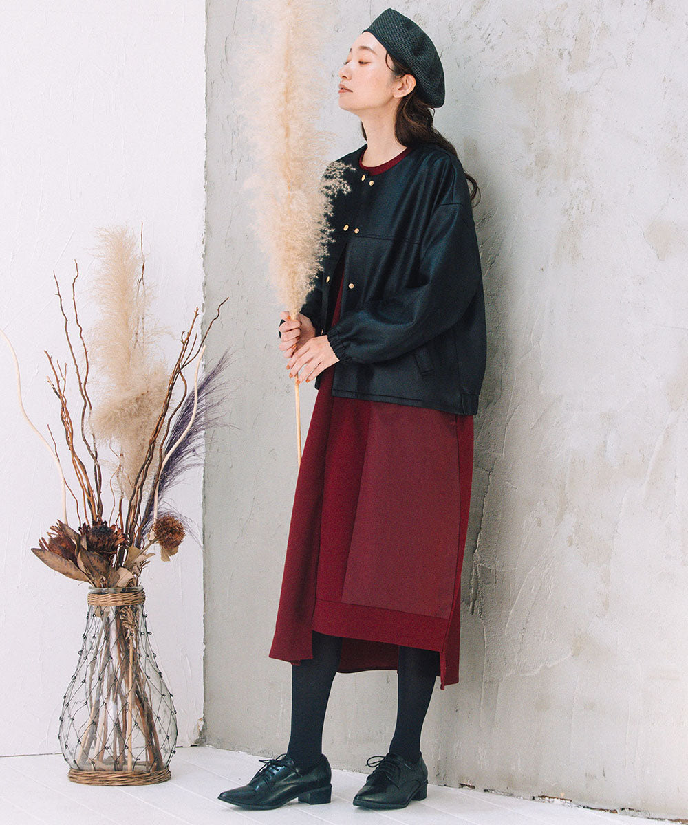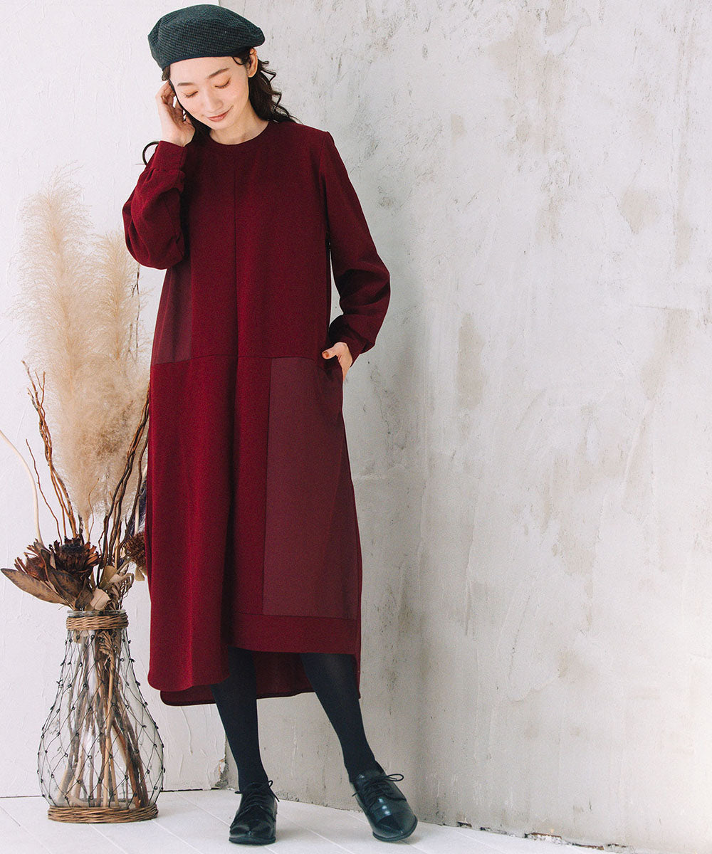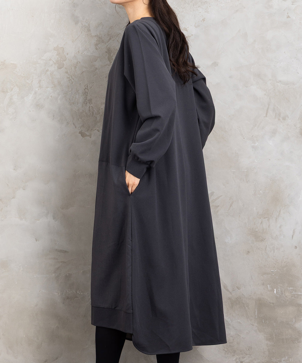 【動きのあるシルエット、異素材コンビアシメワンピース】