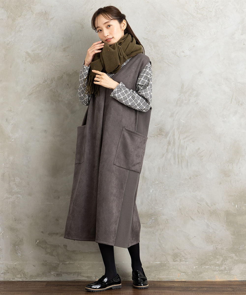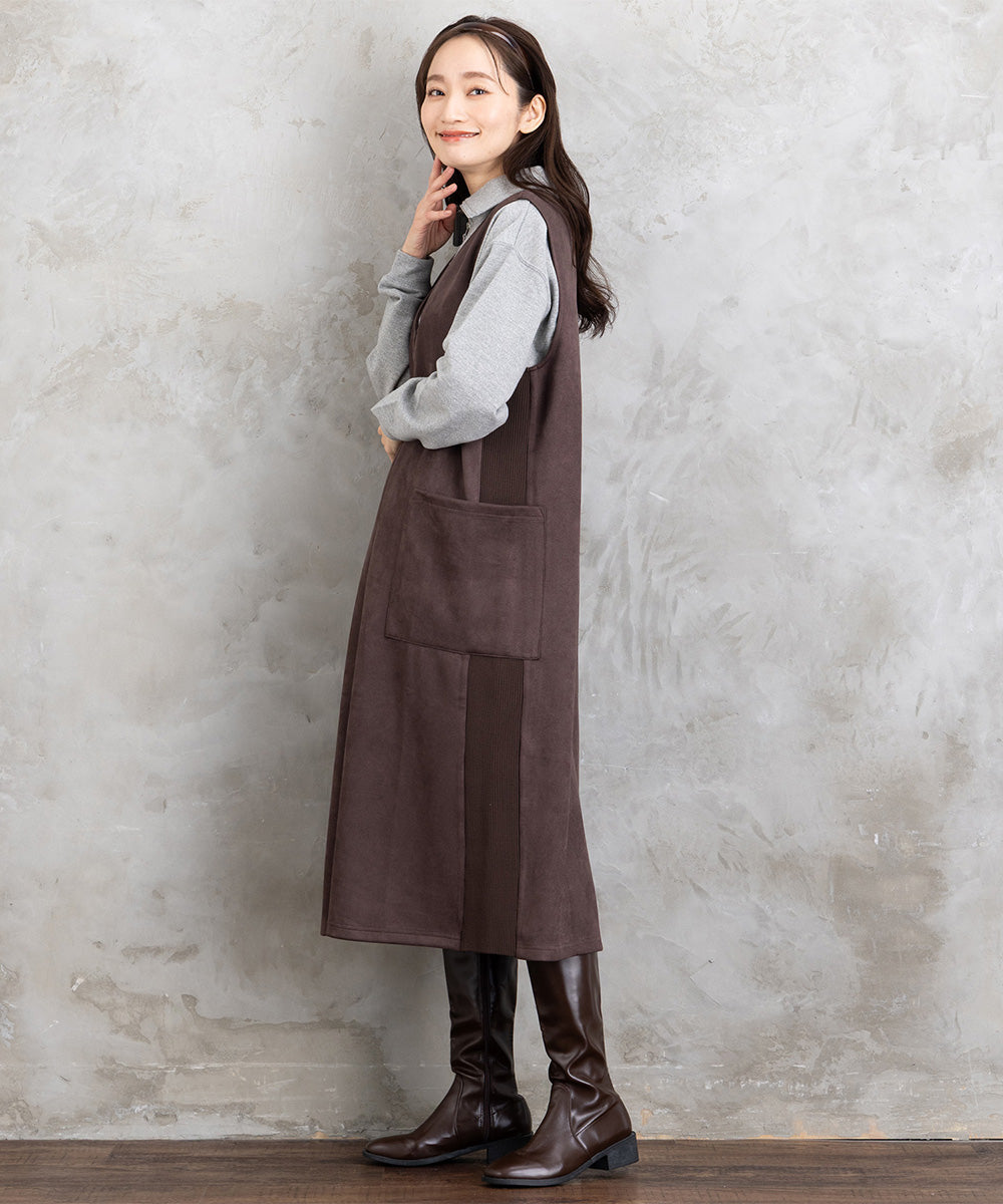 マシュマロのように滑らかなスウェードタッチ素材が魅力のジャンパースカート。