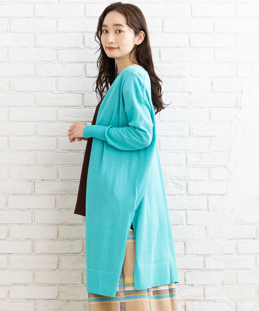 さらりとした肌触りのサイドスリットカーディガン。