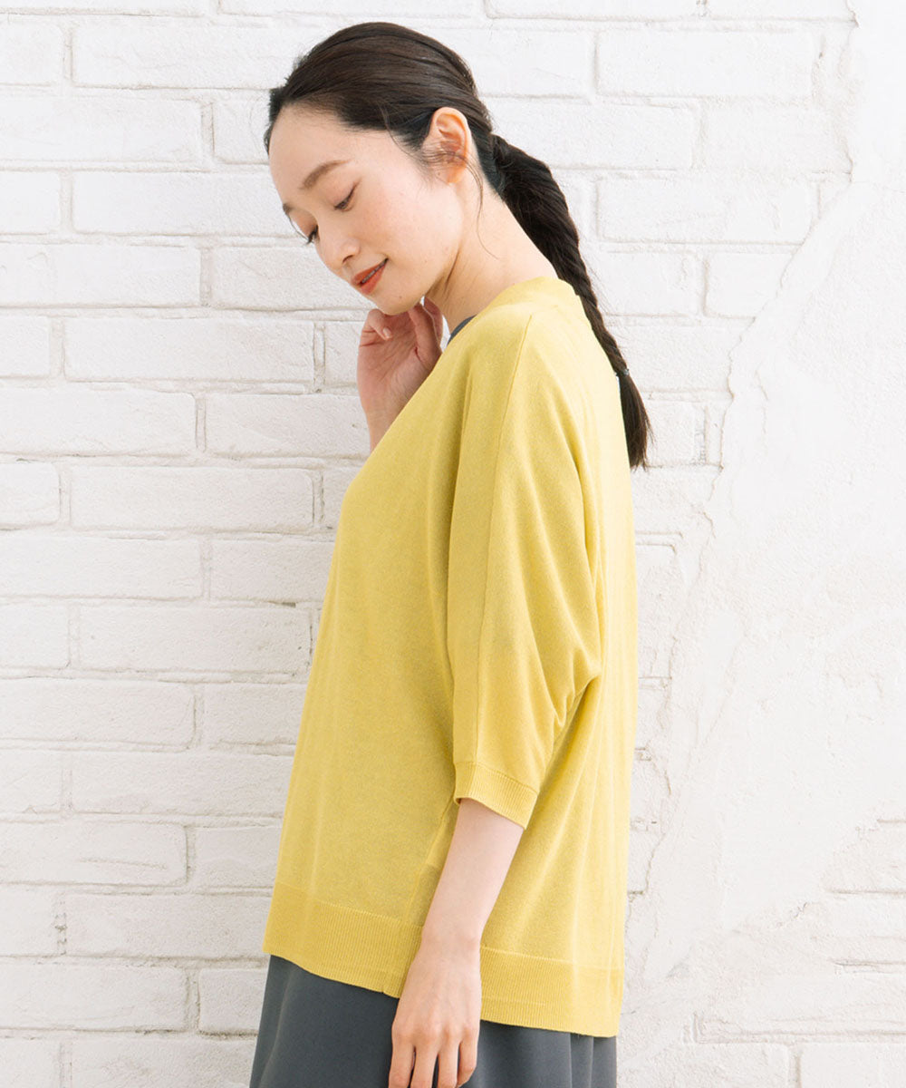 ラメ糸を使用していますがチクチクせず、柔らかい肌当たりで着心地良く着て頂けます。