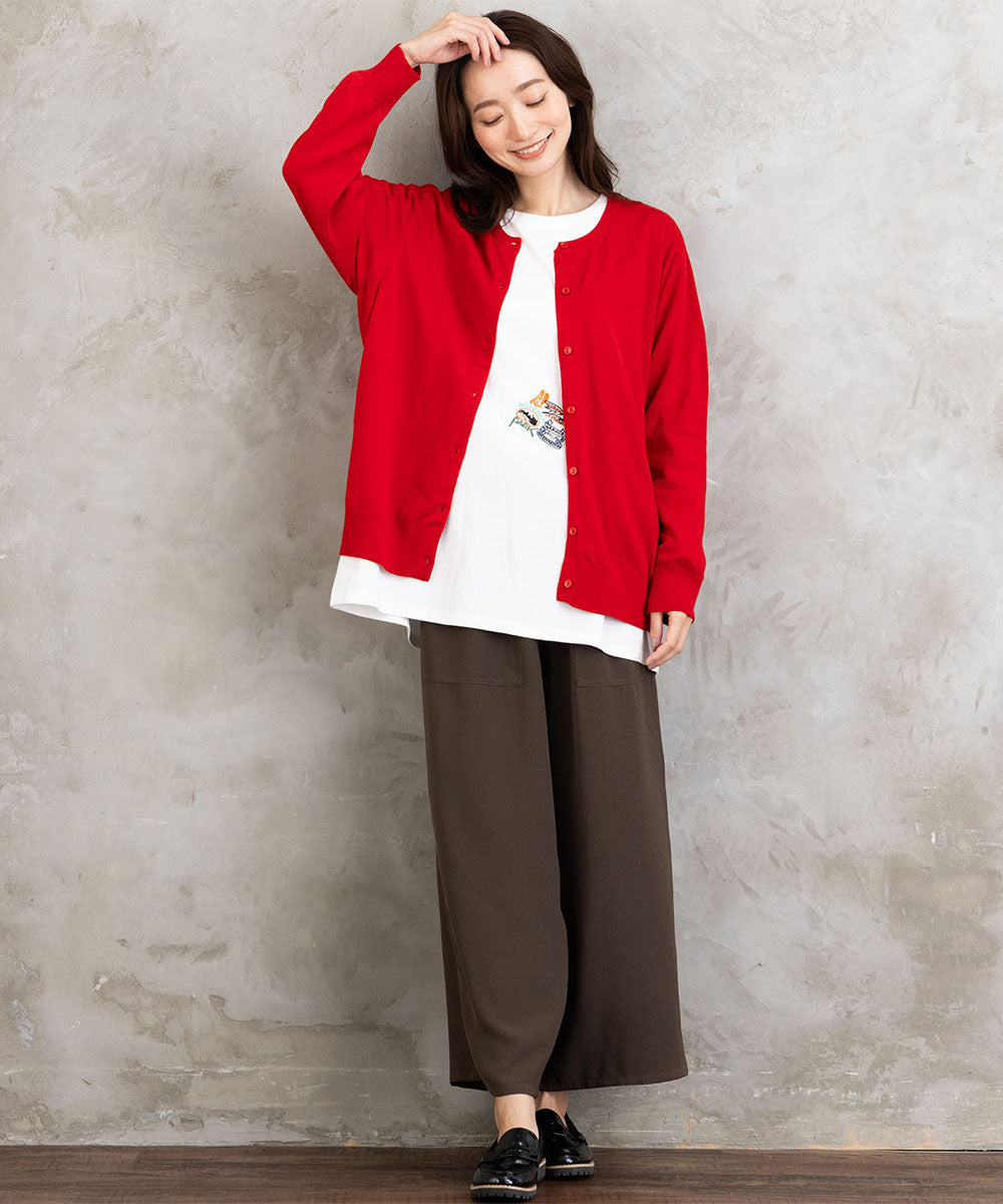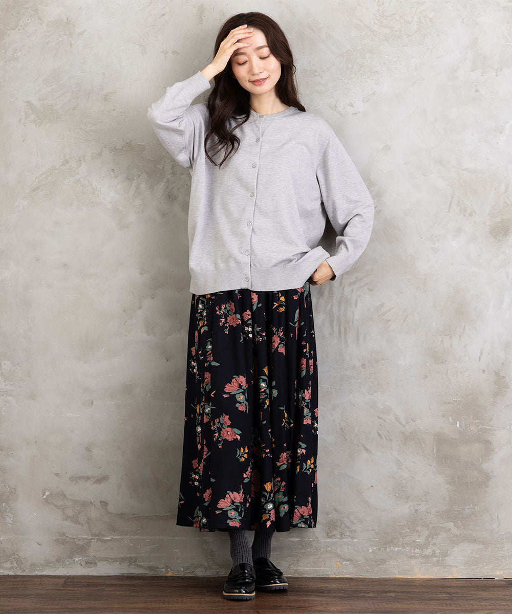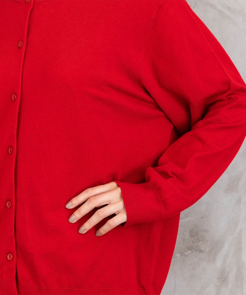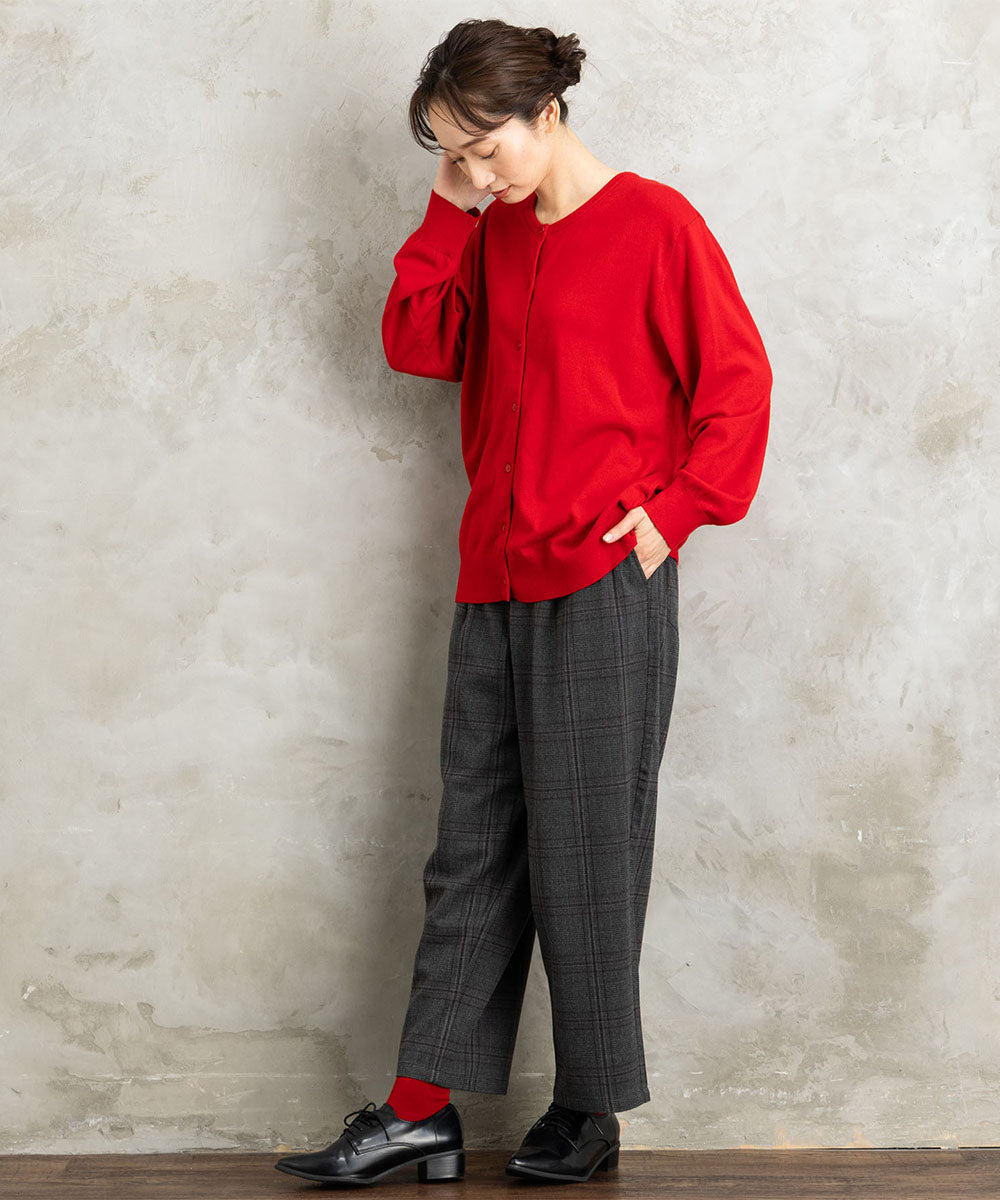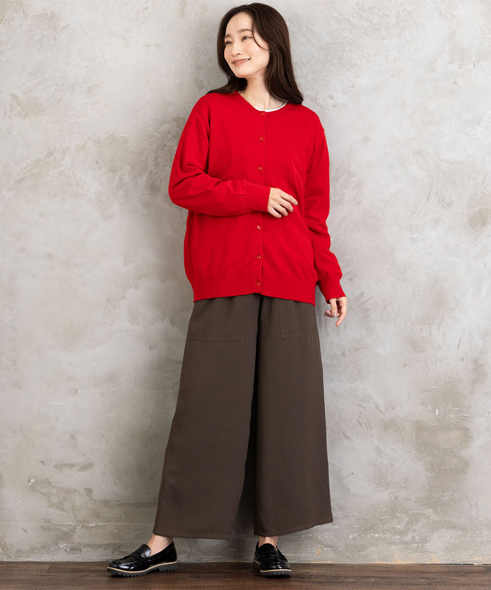 ベーシックなデザインで着回しやすいクルーネックカーディガン。