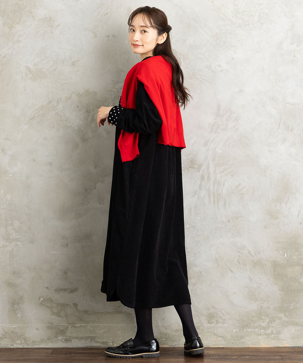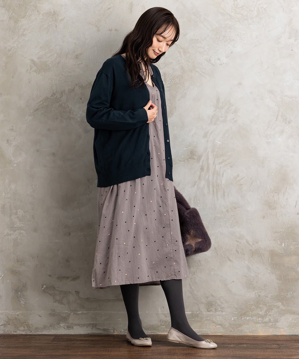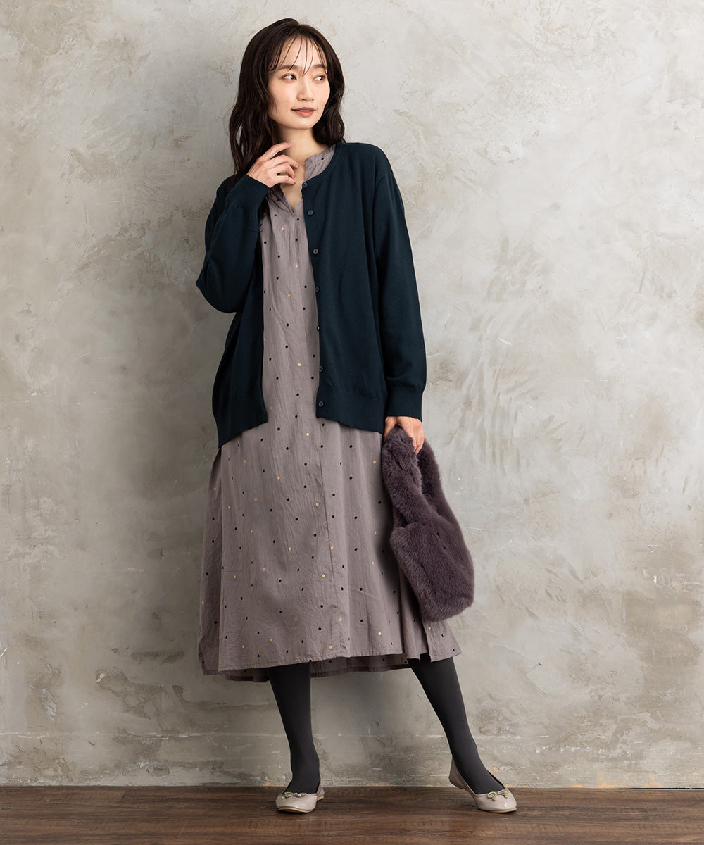 ワンピースに合わせれば、女性らしいスタイルにまとまります。